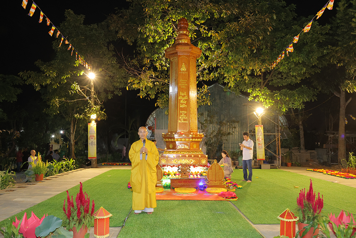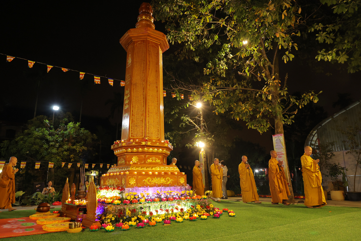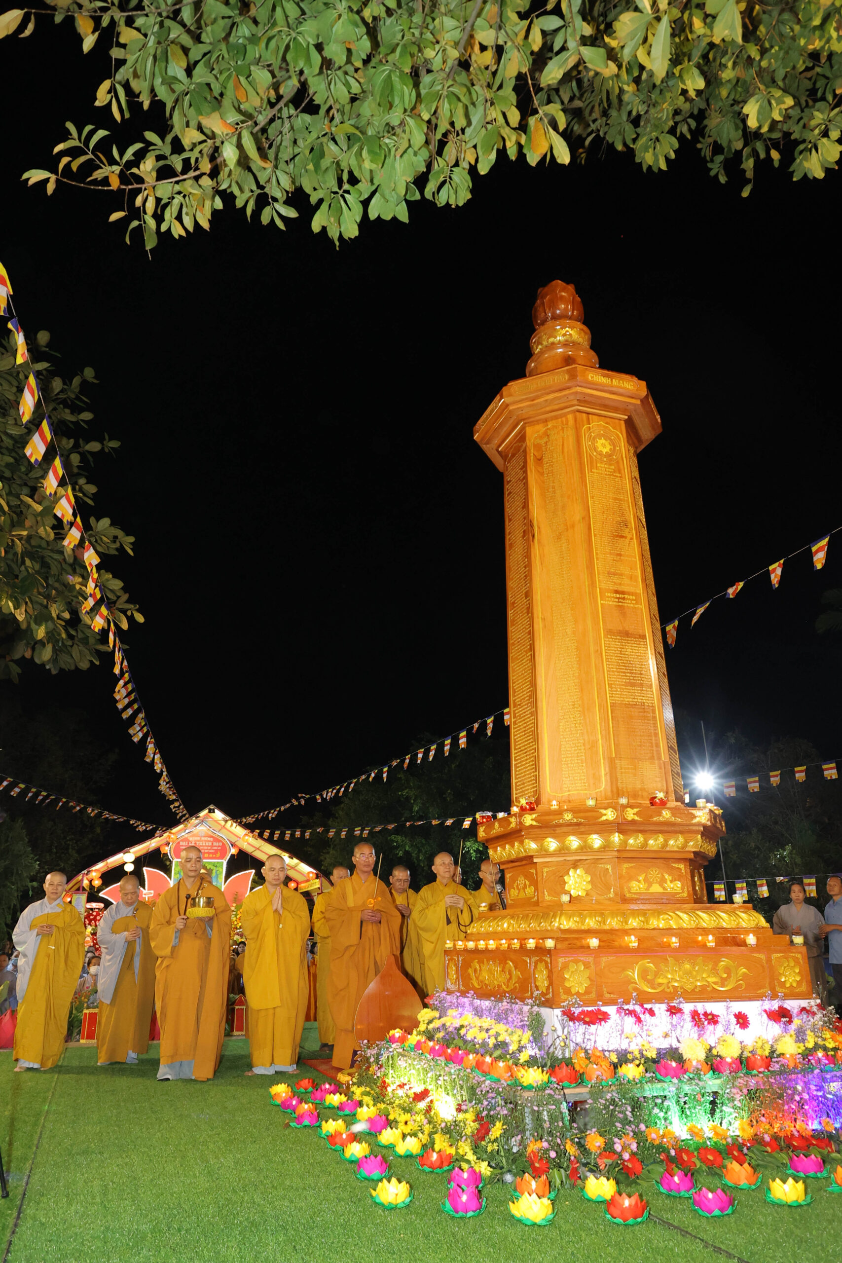 Tại buổi lễ, chư Tôn đức đã cắt băng khánh thành trụ kinh Chuyển Pháp Luân điêu khắc bằng gỗ đầu tiên sau khi được Giáo hội Phật giáo Việt Nam chuẩn y.