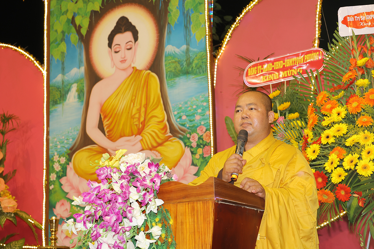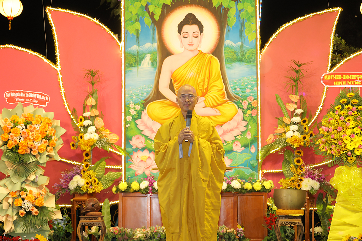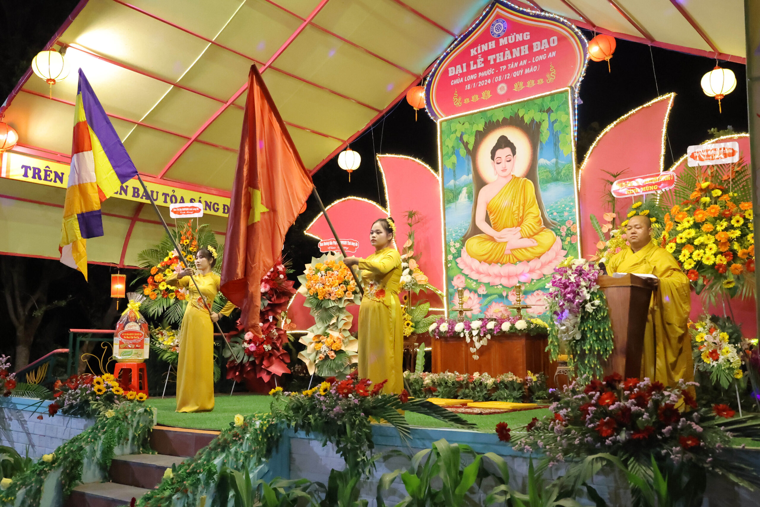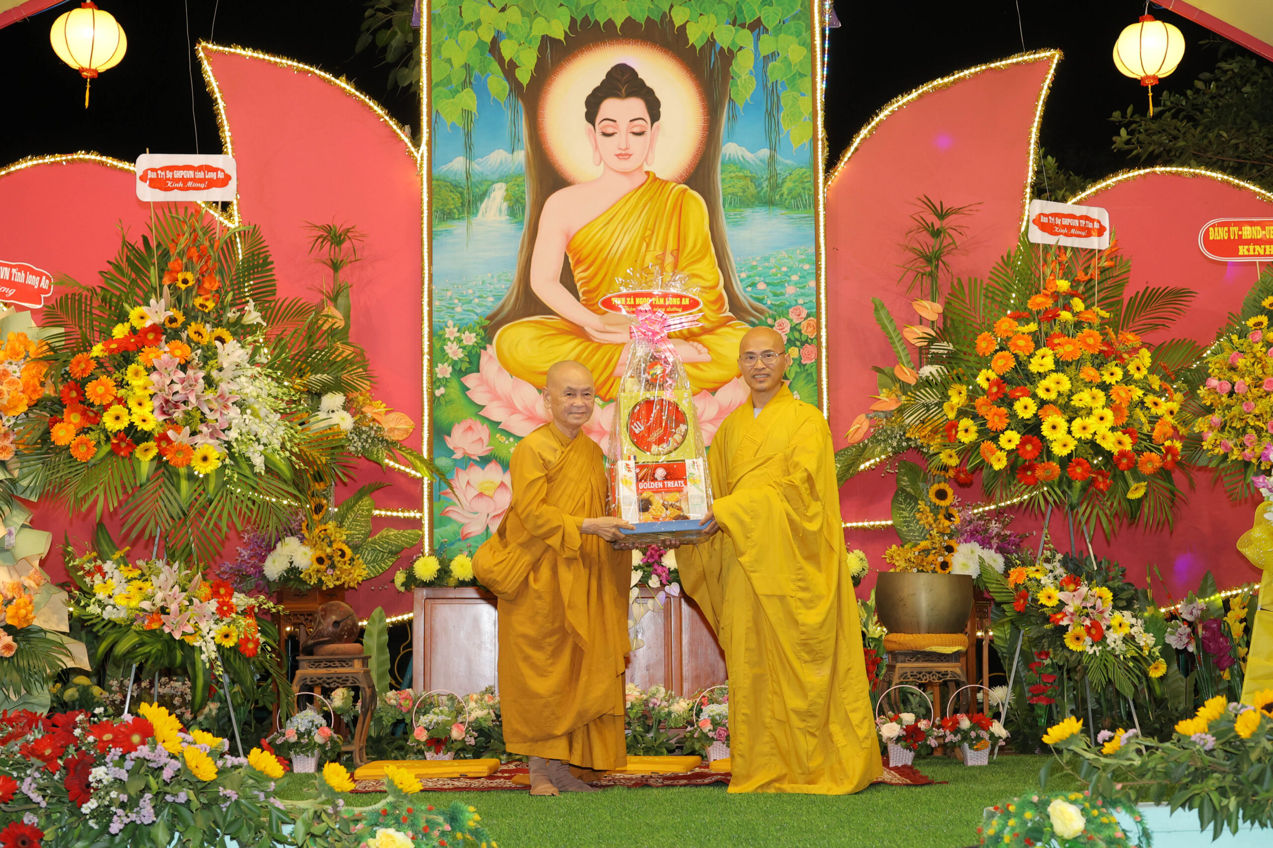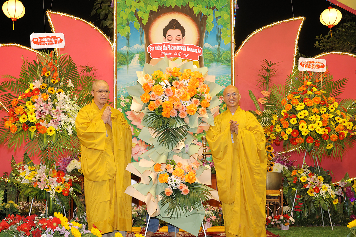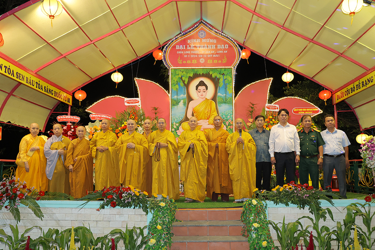 Ban đạo từ tại buổi lễ Hoà thượng Thích Minh Thiện – Trưởng BTS Phật giáo tỉnh tán dương tinh thần của Thượng toạ trụ trì chùa Long Phước đã thể hiện lòng tôn kính đến đấng Thế Tôn, tổ chức buổi lễ để lan toả thông điệp của từ bi và trí tuệ đến với mọi người. Hoà thượng cũng nhắc lại con đường hành đạo của đức Phật và bài kinh đầu tiên Ngài thuyết pháp “Tứ Diệu Đế”, chân lý giác ngộ tối thượng thoát khổ đau. Hòa thượng đã thông tin đến hội chúng về những nội dung Phật sự trọng tâm của Hội nghị Thường niên HĐTS GHPGVN kỳ 3 khoá IX nổi bật là công tác an sinh xã hội. Theo đó, công tác an sinh xã hội Phật giáo tỉnh Long An đạt 107 tỷ đồng, đứng thứ 3 của cả nước.