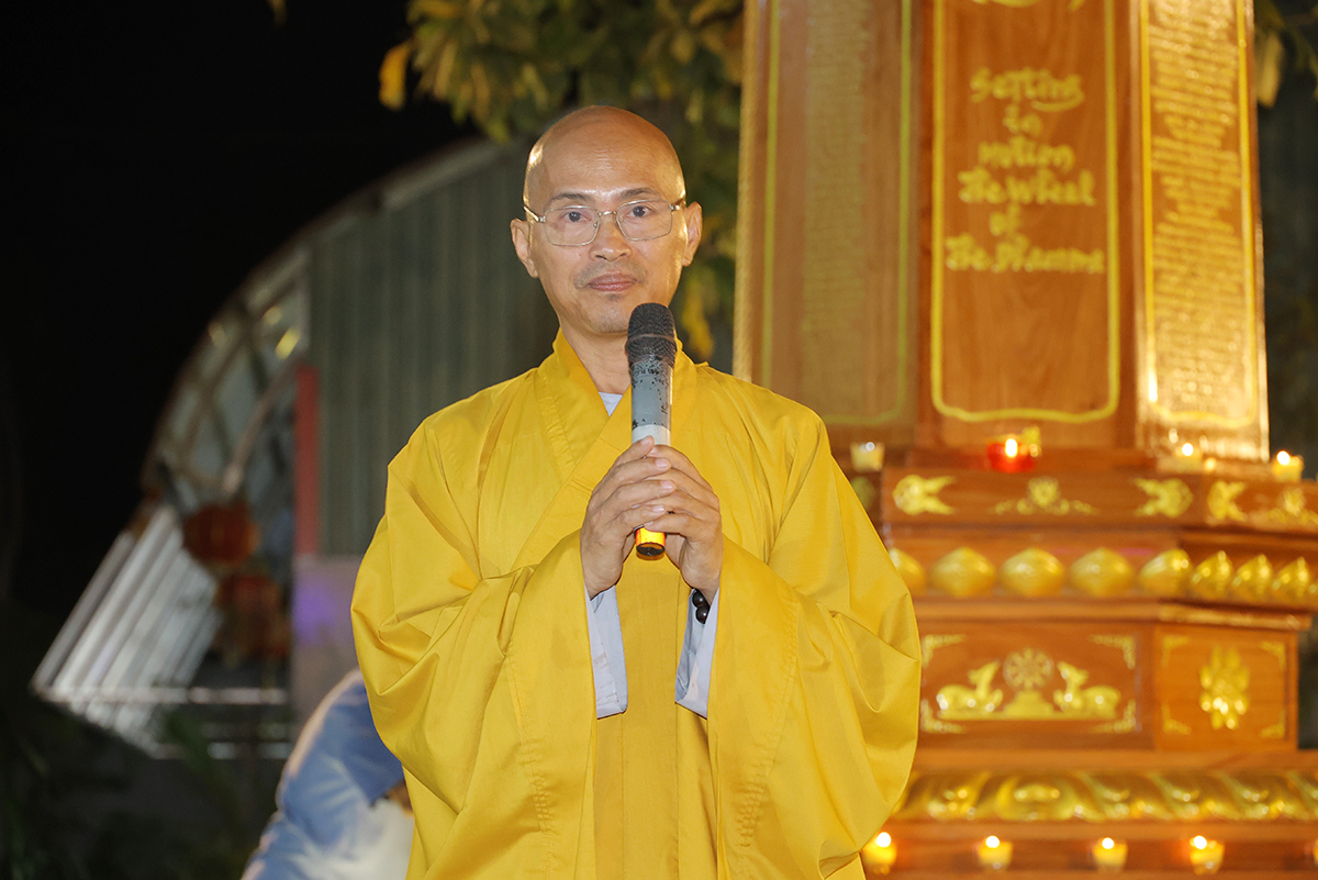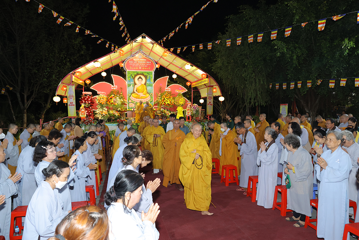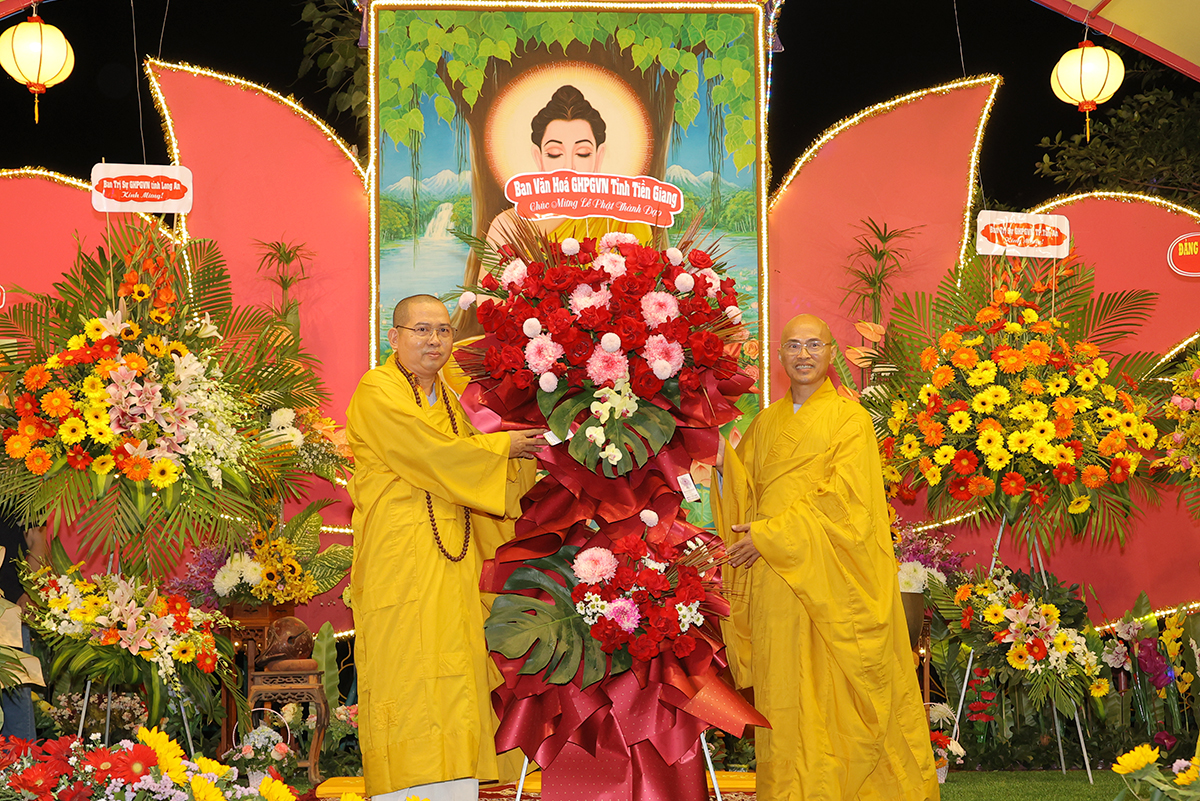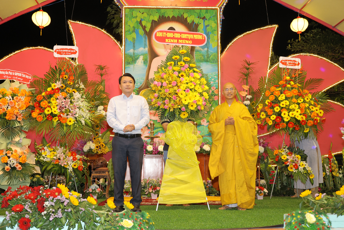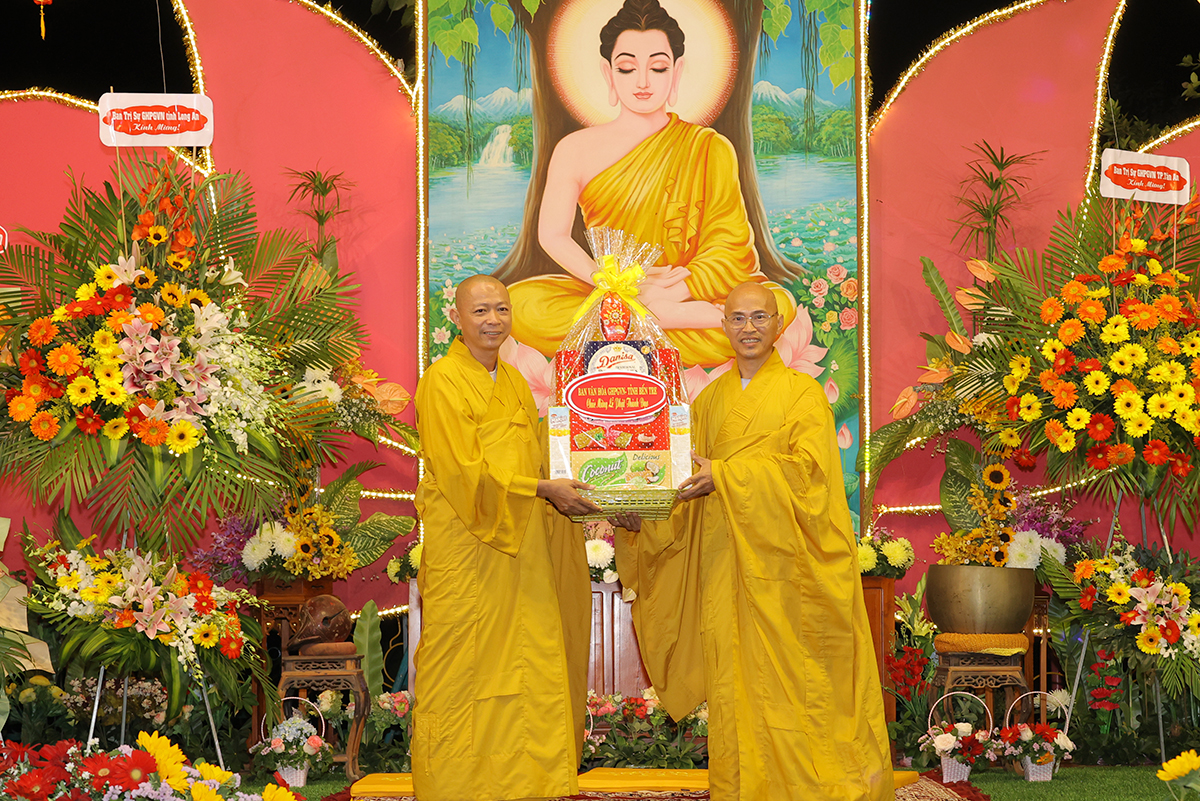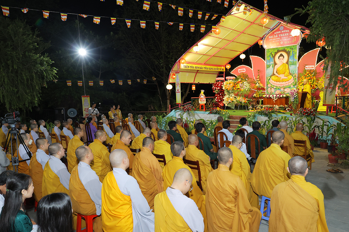 Ban đạo từ tại buổi lễ Hoà thượng Thích Minh Thiện – Trưởng BTS Phật giáo tỉnh tán dương tinh thần của Thượng toạ trụ trì chùa Long Phước đã thể hiện lòng tôn kính đến đấng Thế Tôn, tổ chức buổi lễ để lan toả thông điệp của từ bi và trí tuệ đến với mọi người. Hoà thượng cũng nhắc lại con đường hành đạo của đức Phật và bài kinh đầu tiên Ngài thuyết pháp “Tứ Diệu Đế”, chân lý giác ngộ tối thượng thoát khổ đau. Hòa thượng đã thông tin đến hội chúng về những nội dung Phật sự trọng tâm của Hội nghị Thường niên HĐTS GHPGVN kỳ 3 khoá IX nổi bật là công tác an sinh xã hội. Theo đó, công tác an sinh xã hội Phật giáo tỉnh Long An đạt 107 tỷ đồng, đứng thứ 3 của cả nước.