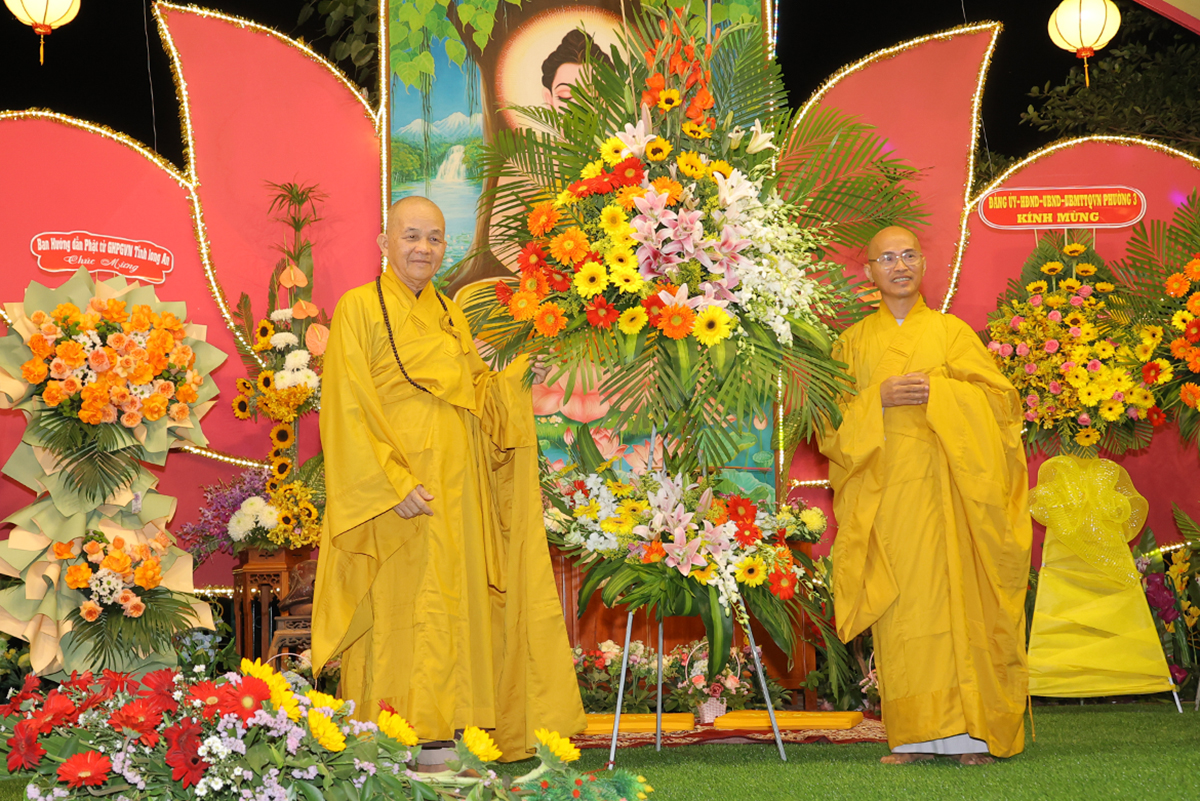 Quang lâm chứng minh tham dự có Hoà thượng Thích Minh Thiện – Uỷ viên HĐTS, Phó Ban Hoằng pháp Trung Ương, Trưởng BTS GHPGVN tỉnh Long An; Thượng toạ Thích Minh Thọ – Uỷ viên HĐTS, Phó Ban Trị sự, Trưởng Ban Pháp chế, Trưởng BTS GHPGVN thành phố Tân An; Thượng toạ Thích Lệ Trí – Uỷ viên HĐTS, Phó Ban Văn hoá Trung Ương; Phó BTS GHPGVN tỉnh Long An, trụ trì chùa Long Phước cùng chư Tôn đức Tăng, Ni và đông đảo Phật tử tham dự.