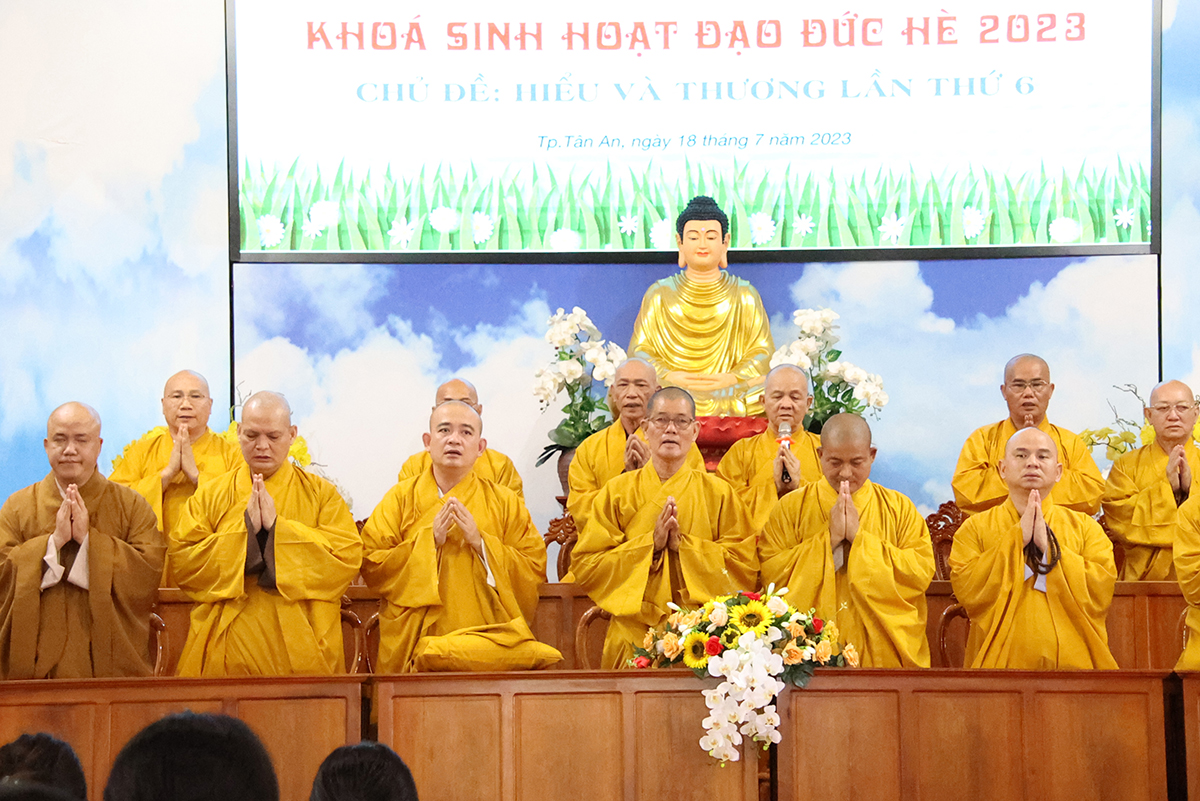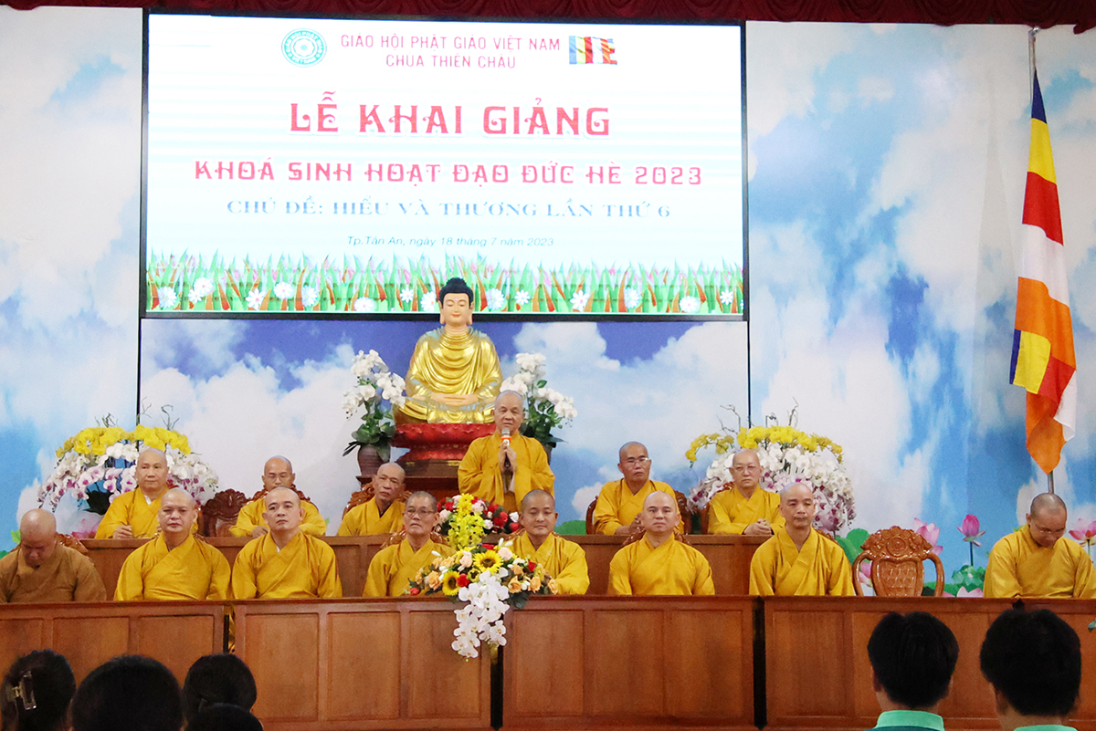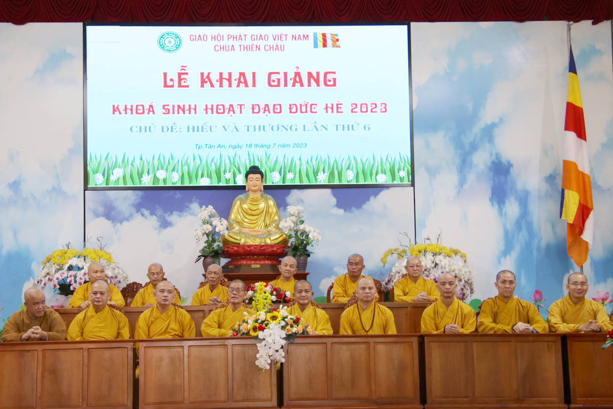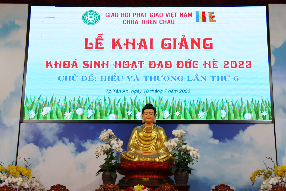 Sáng ngày 18 tháng 7 năm 2023 (nhằm ngày 01/6/Quý Mão), tại Hội trường Văn phòng BTS GHPGVN tỉnh Long An, Chùa Thiên Châu, số 101, đường Huỳnh Văn Nhứt, phường 3, thành phố Tân An, tỉnh Long An diễn ra Lễ Khai Giảng Khóa Đạo Đức Hè Năm 2023 chủ đề Hiểu và thương lần thứ 6.