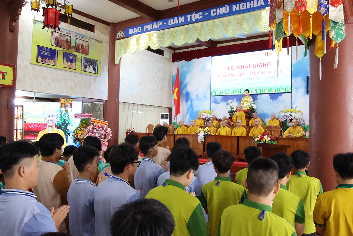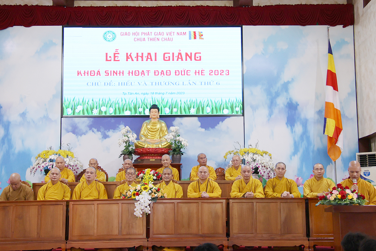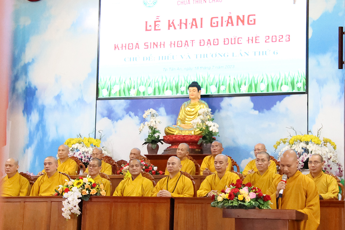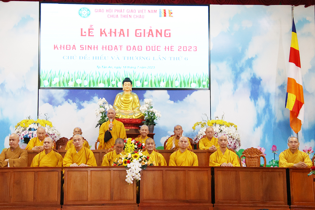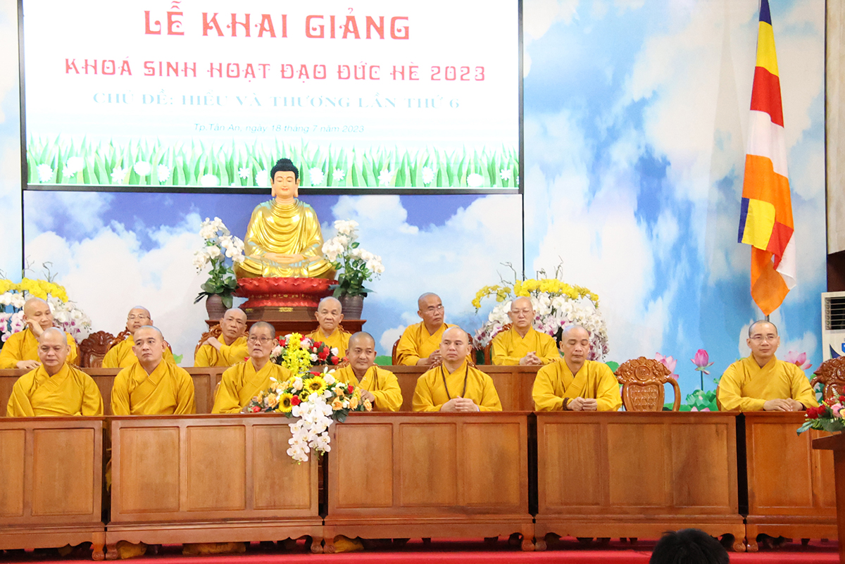 Sáng ngày 18 tháng 7 năm 2023 (nhằm ngày 01/6/Quý Mão), tại Hội trường Văn phòng BTS GHPGVN tỉnh Long An, Chùa Thiên Châu, số 101, đường Huỳnh Văn Nhứt, phường 3, thành phố Tân An, tỉnh Long An diễn ra Lễ Khai Giảng Khóa Đạo Đức Hè Năm 2023 chủ đề Hiểu và thương lần thứ 6.