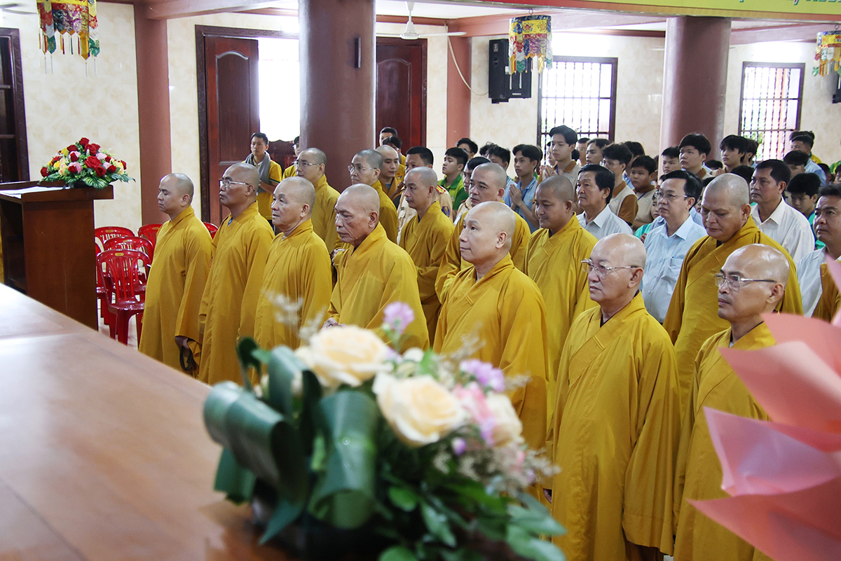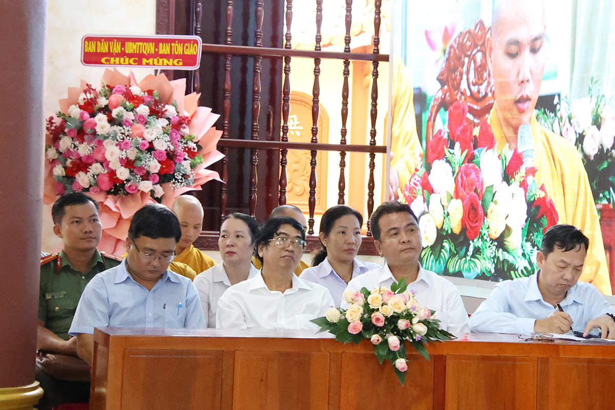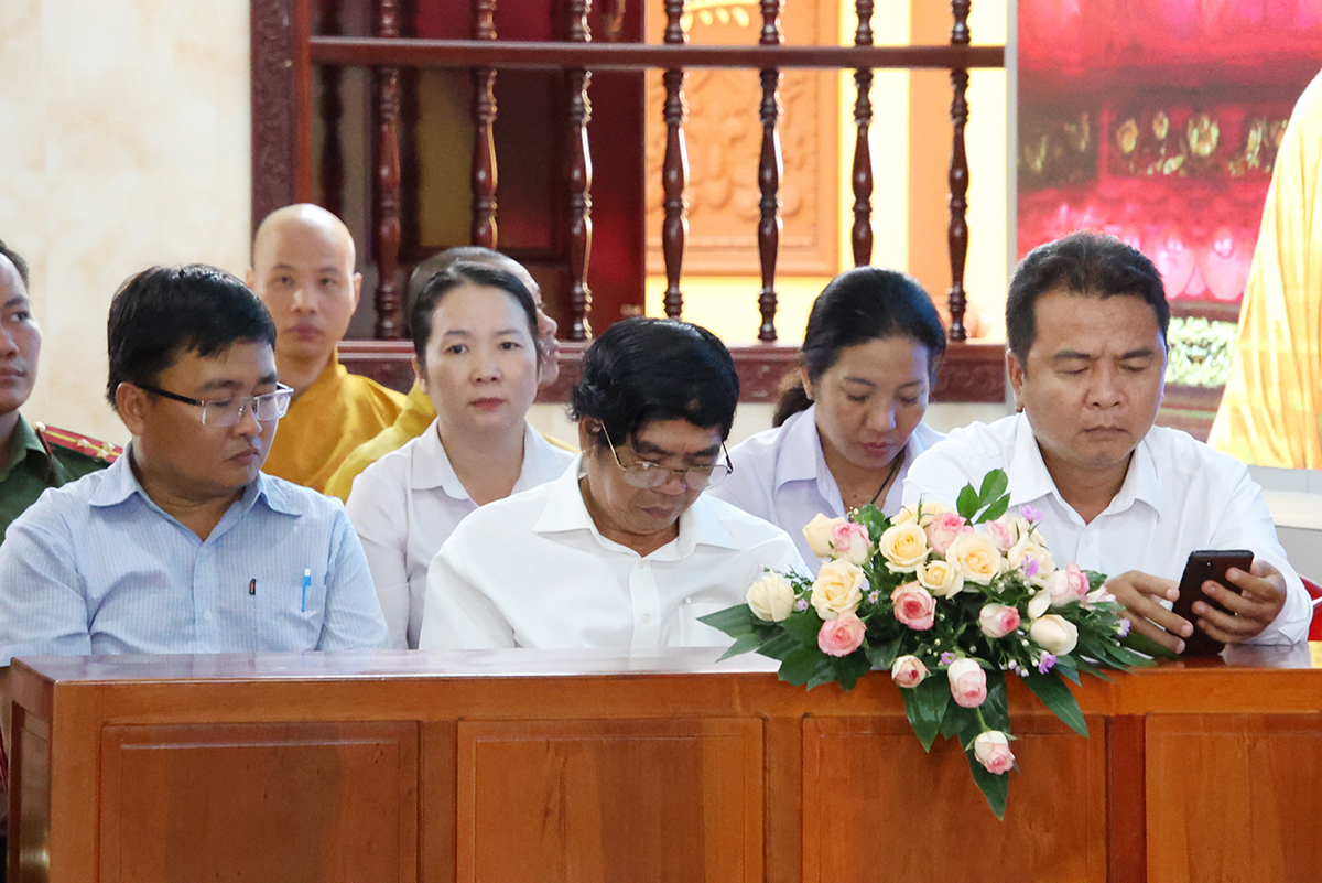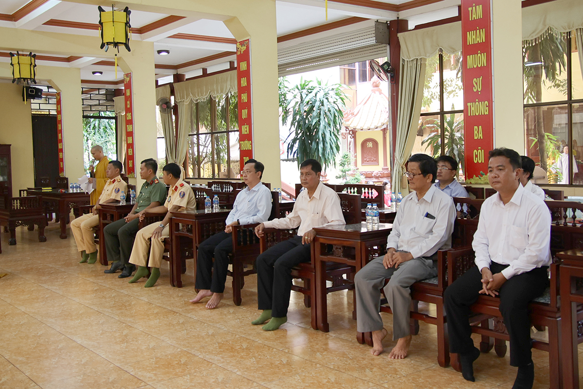 Quang lâm chứng minh và tham dự buổi lễ có: HT. Thích Thiện Huệ – Thành viên HĐCM TW, Chứng minh BTS GHPGVN tỉnh Long An; HT. Thích Minh Thiện – UV HĐTS, Phó ban Hoằng pháp TW, Trưởng BTS GHPGVN tỉnh Long An; TT. Thích Quảng Tâm – UV HĐTS, Phó ban Từ thiện Xã hội TW, Phó Trưởng ban Thường trực BTS GHPGVN tỉnh Long An; TT. Thích Minh Thọ – UV HĐTS, Phó Trưởng BTS GHPGVN tỉnh Long An; TT. Thích Lệ Trí – UV HĐTS, Phó ban Văn hóa TW, Phó Trưởng BTS GHPGVN tỉnh Long An; Chư tôn đức Phó Trưởng BTS GHPGVN tỉnh Long An: TT. Thích Đức Hoàng, ĐĐ. Thích Lệ Duyên, ĐĐ. Thích Lệ Ngôn; Chư tôn đức Ban Thường trực BTS GHPGVN tỉnh Long An, các ban chuyên ngành trực thuộc Phật giáo tỉnh.