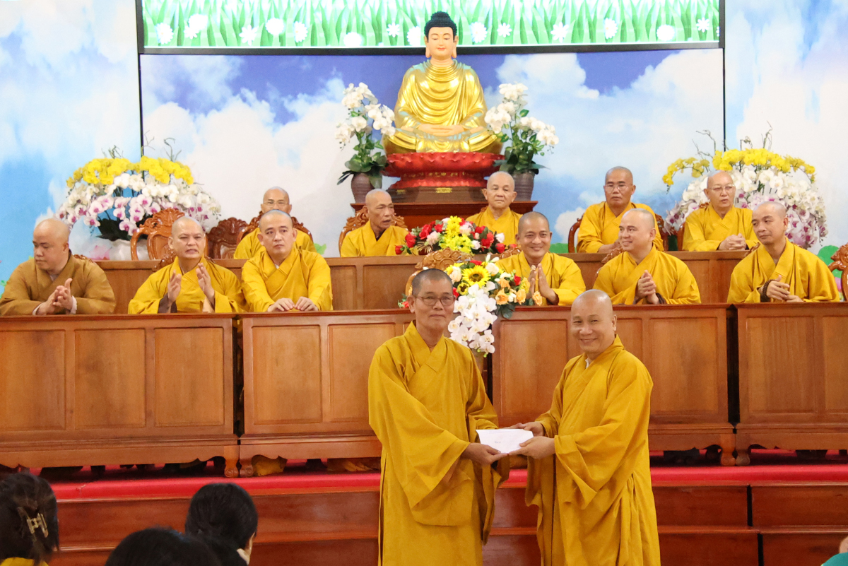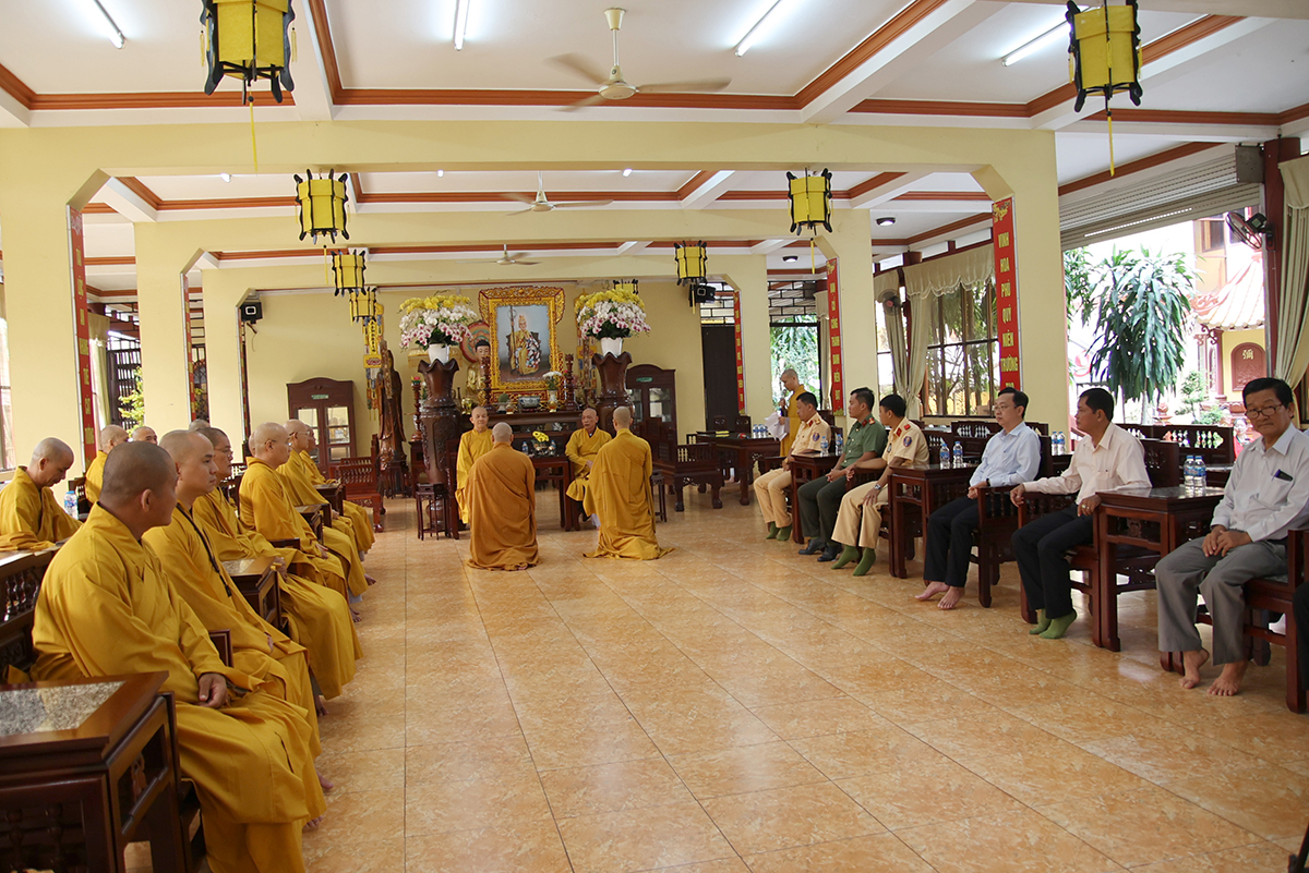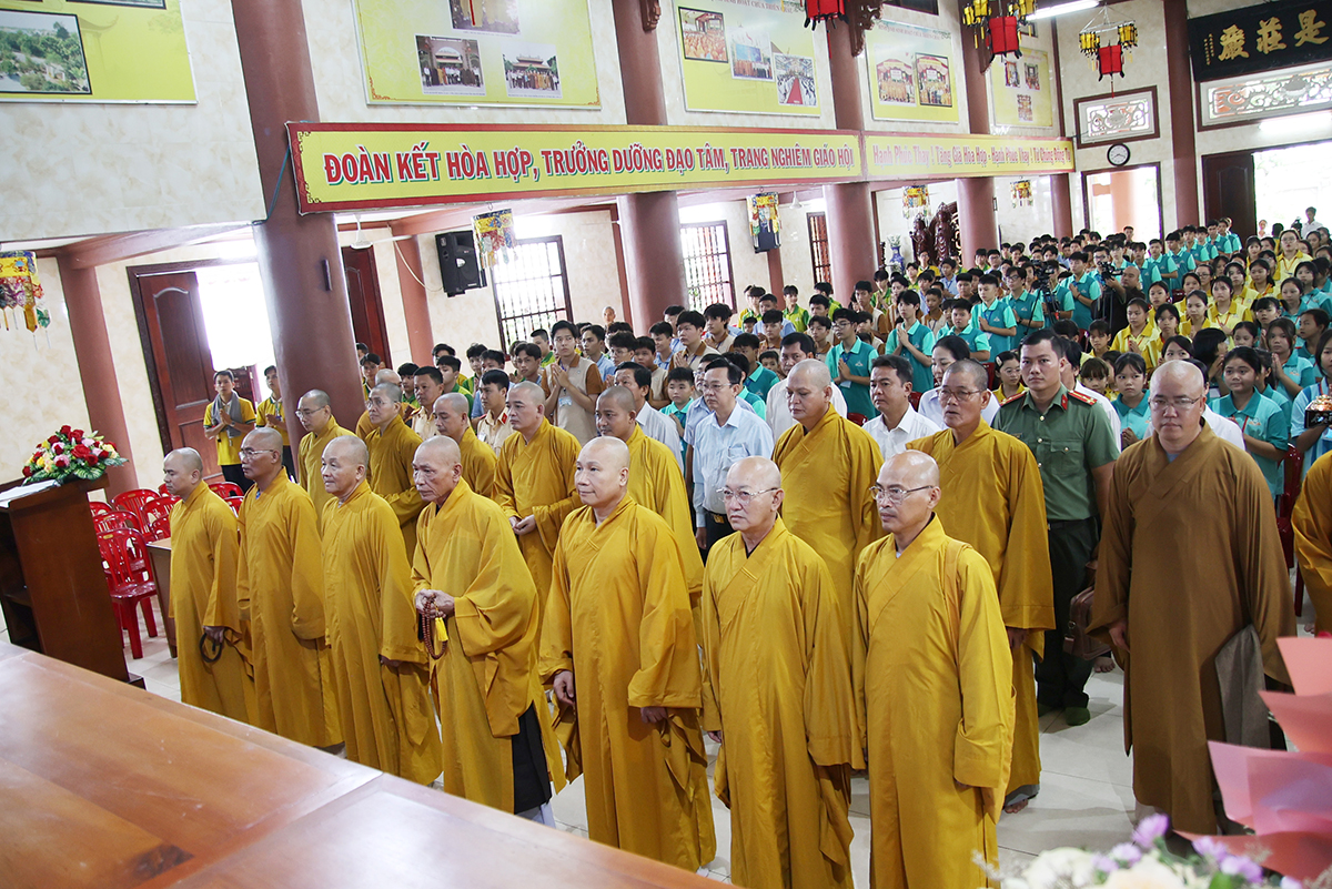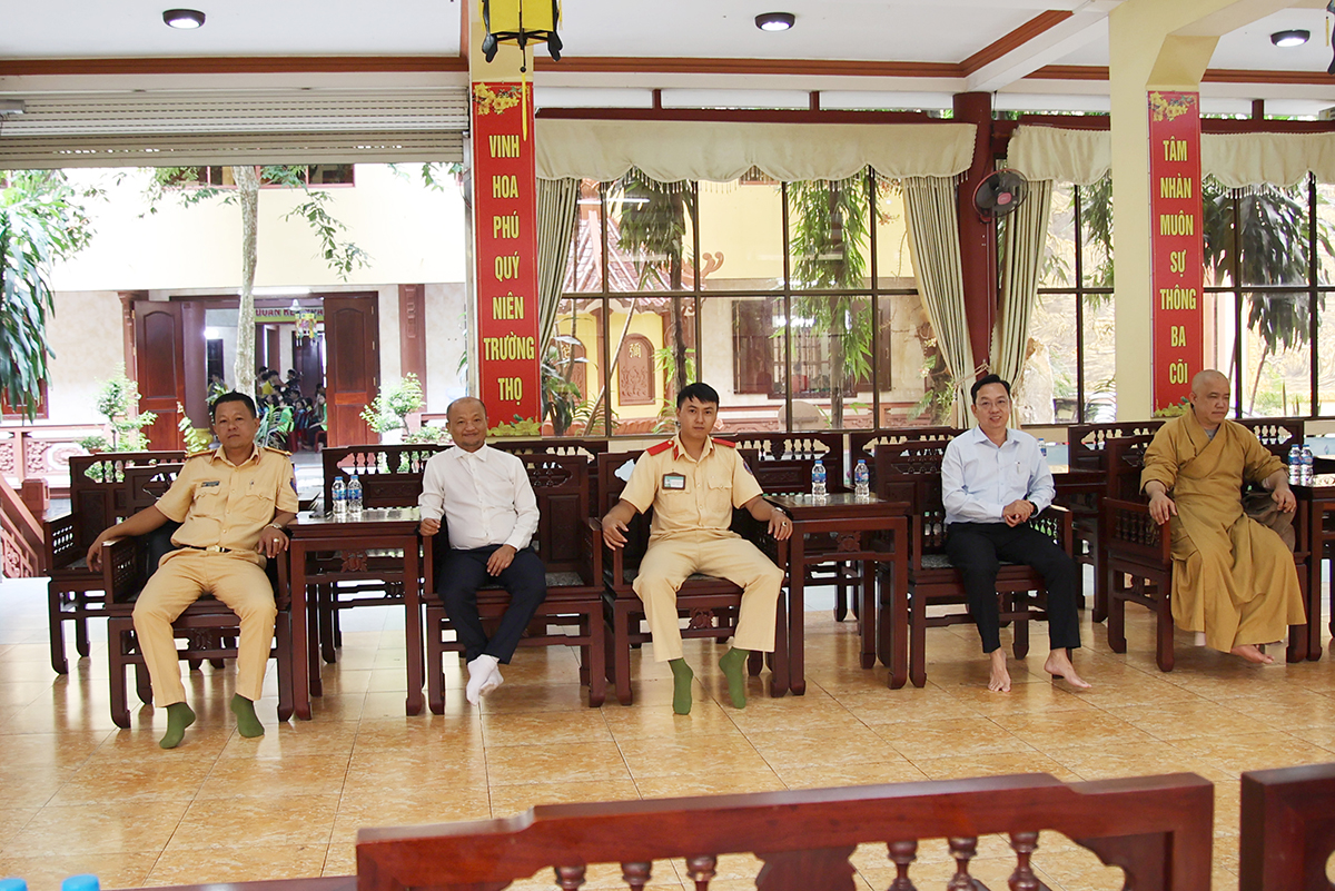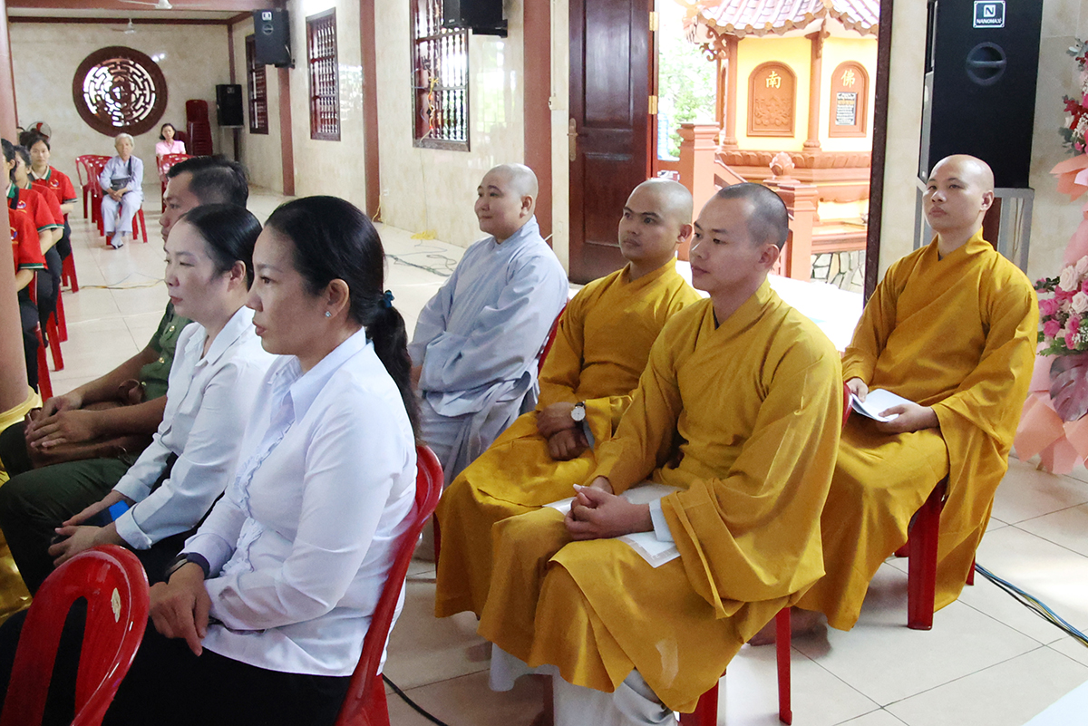 Quang lâm chứng minh và tham dự buổi lễ có: HT. Thích Thiện Huệ – Thành viên HĐCM TW, Chứng minh BTS GHPGVN tỉnh Long An; HT. Thích Minh Thiện – UV HĐTS, Phó ban Hoằng pháp TW, Trưởng BTS GHPGVN tỉnh Long An; TT. Thích Quảng Tâm – UV HĐTS, Phó ban Từ thiện Xã hội TW, Phó Trưởng ban Thường trực BTS GHPGVN tỉnh Long An; TT. Thích Minh Thọ – UV HĐTS, Phó Trưởng BTS GHPGVN tỉnh Long An; TT. Thích Lệ Trí – UV HĐTS, Phó ban Văn hóa TW, Phó Trưởng BTS GHPGVN tỉnh Long An; Chư tôn đức Phó Trưởng BTS GHPGVN tỉnh Long An: TT. Thích Đức Hoàng, ĐĐ. Thích Lệ Duyên, ĐĐ. Thích Lệ Ngôn; Chư tôn đức Ban Thường trực BTS GHPGVN tỉnh Long An, các ban chuyên ngành trực thuộc Phật giáo tỉnh.