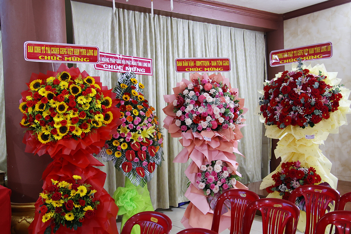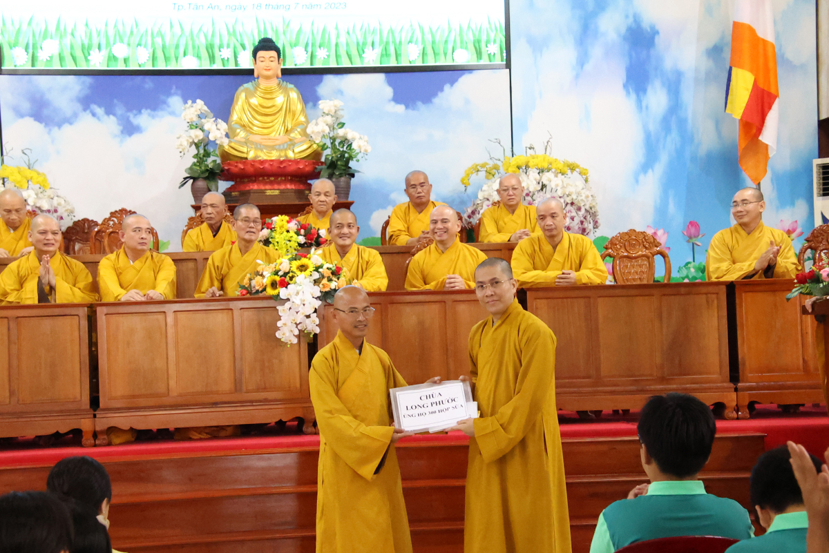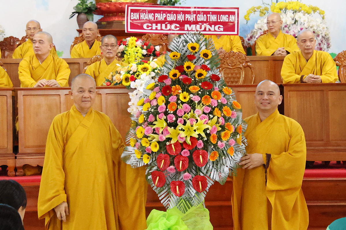 Buổi lễ được đón nhận nhiều lẵng hoa, tịnh tài hỗ trợ từ: Ban Hoằng pháp GHPGVN tỉnh Long An; Ban Hướng dẫn Phật tử tỉnh, Ban Kinh tế Tài chính tỉnh; Ban Dân vận – UBMTTQVN – Ban Tôn giáo tỉnh Long An; Thành ủy – HĐND – UBND – UBMTTQVN TP. Tân An; Ban Trị sự GHPGVN huyện Tân Thạnh, huyện Đức Hòa; Tổ đình Long Phước.