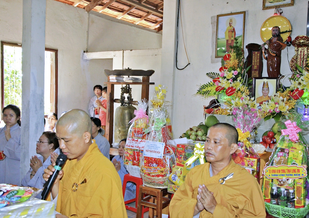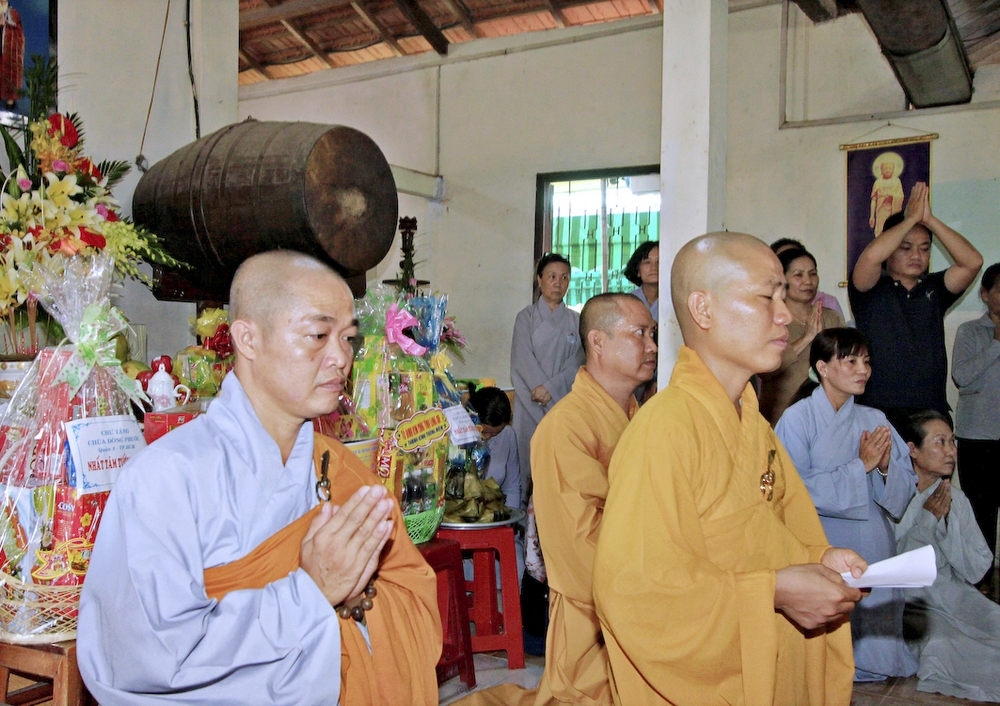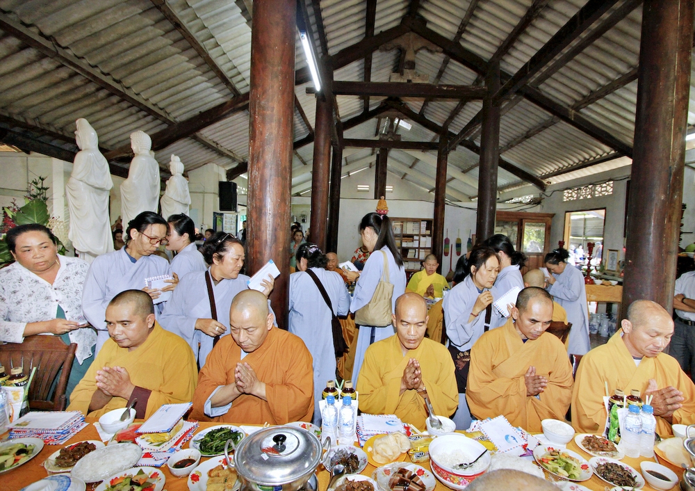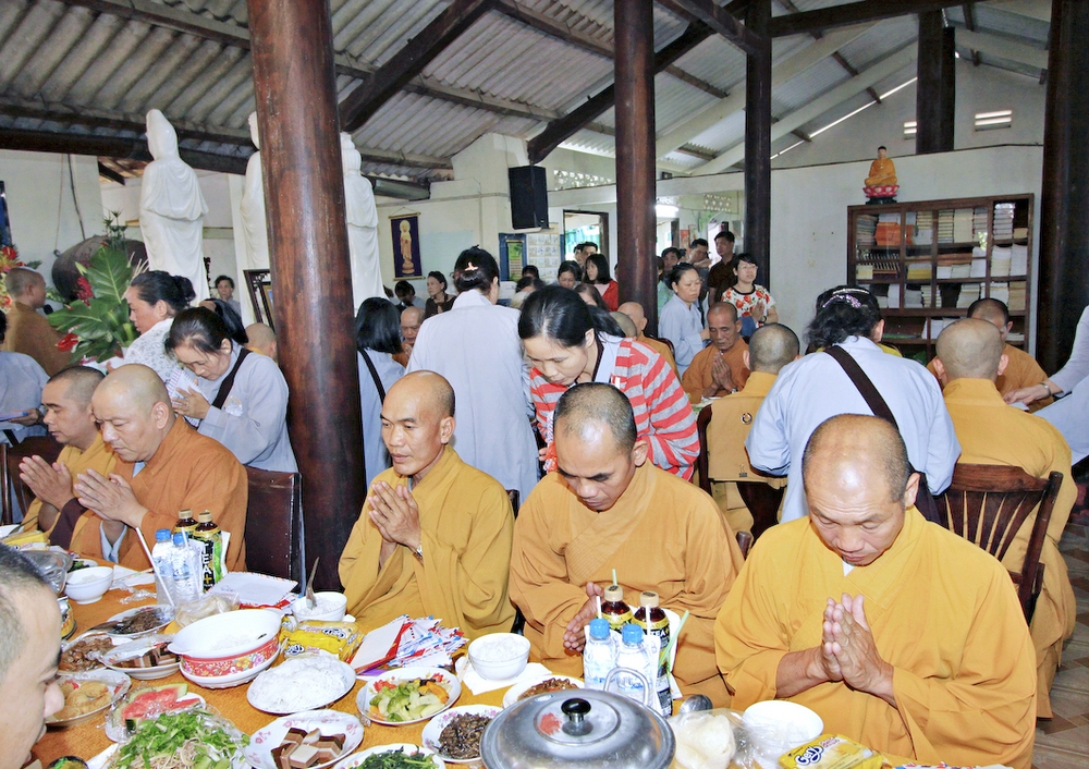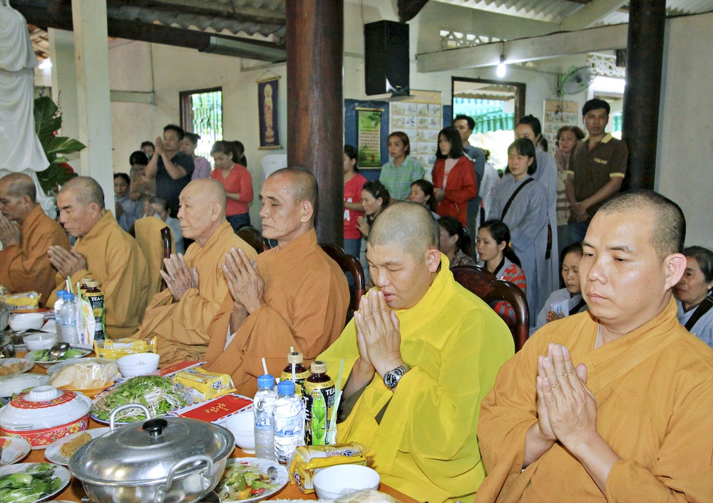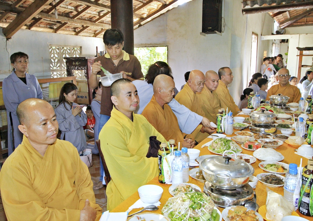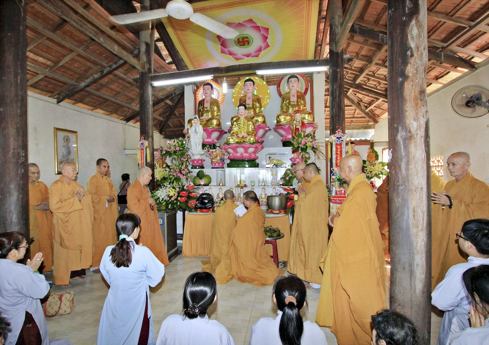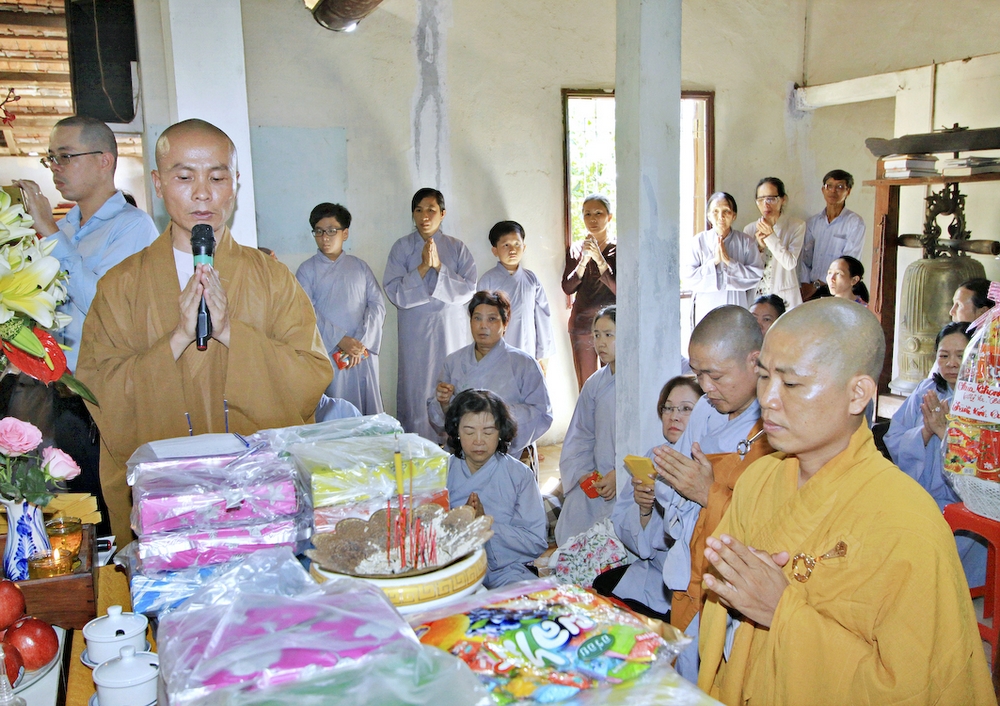 Đúng 8h30, Đại Đức Thích An Tịch – Giám Thị trường Sơ Cấp Phật học tỉnh Long An đã thay mặt Đại Đức Thích An Lợi – Quản sự Chùa Tịnh Độ cung thỉnh chư tôn đức Tăng quang lâm về trước Đài Quan Âm thiết lễ Phóng Sanh. Sau khóa lễ Phóng sanh là thời khóa Cúng ngọ, và cung thỉnh TT. Thích Tắc Viên – Trụ trì chùa Liên Hoa đương vi sám chủ. Sau thời khóa cúng ngọ, ĐĐ. Thích An Lợi đã đối trước chư tôn Hòa Thượng, Thượng Tọa, Đại Đức tăng cung thỉnh quý Ngài quang lâm tổ đường thắp hương tưởng niệm, Hòa Thượng Thích Minh Thiện cùng chư tôn đức tăng thắp hương tưởng niệm trước Tổ Đường, sau đó cung thỉnh quý Ngài quang lâm trai đường thọ trai và cúng dường. ĐĐ. Thích An Lợi dâng lên lời tác bạch trong buổi lễ Húy Kỵ. Sau lời tác pháp cúng dường, Hòa Thượng Thích Minh Thiện ban lời đạo từ, đã tán thán công đức cúng dường trai tăng của Đại Đức quản sự cũng như chư vị thiện nam tín nữ đã nhịn ăn bớt mặc để đóng góp và dâng lễ phẩm cúng dường cho chư tôn Đức. Bên cạnh đó Ngài cũng đã nêu rõ về công đức của sự cúng dường và đồng thời chúc cho chư tôn đức bổn tự cũng như chư thiện nam tín nữ những lời chúc tốt đẹp nhất.