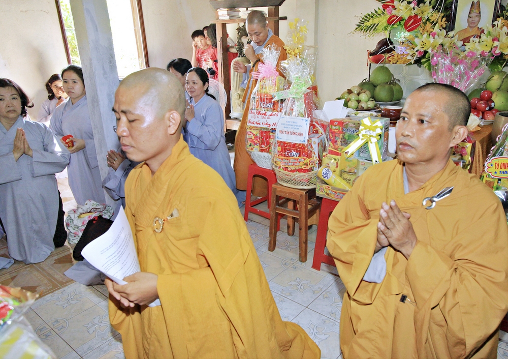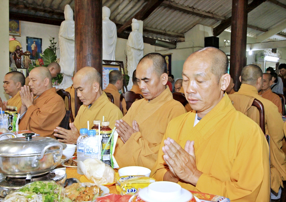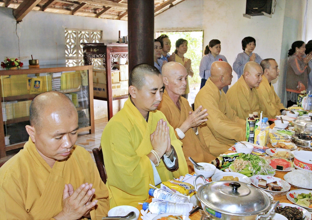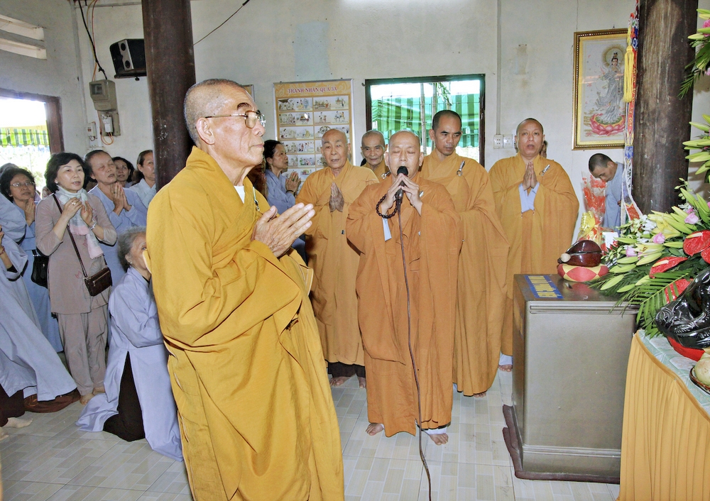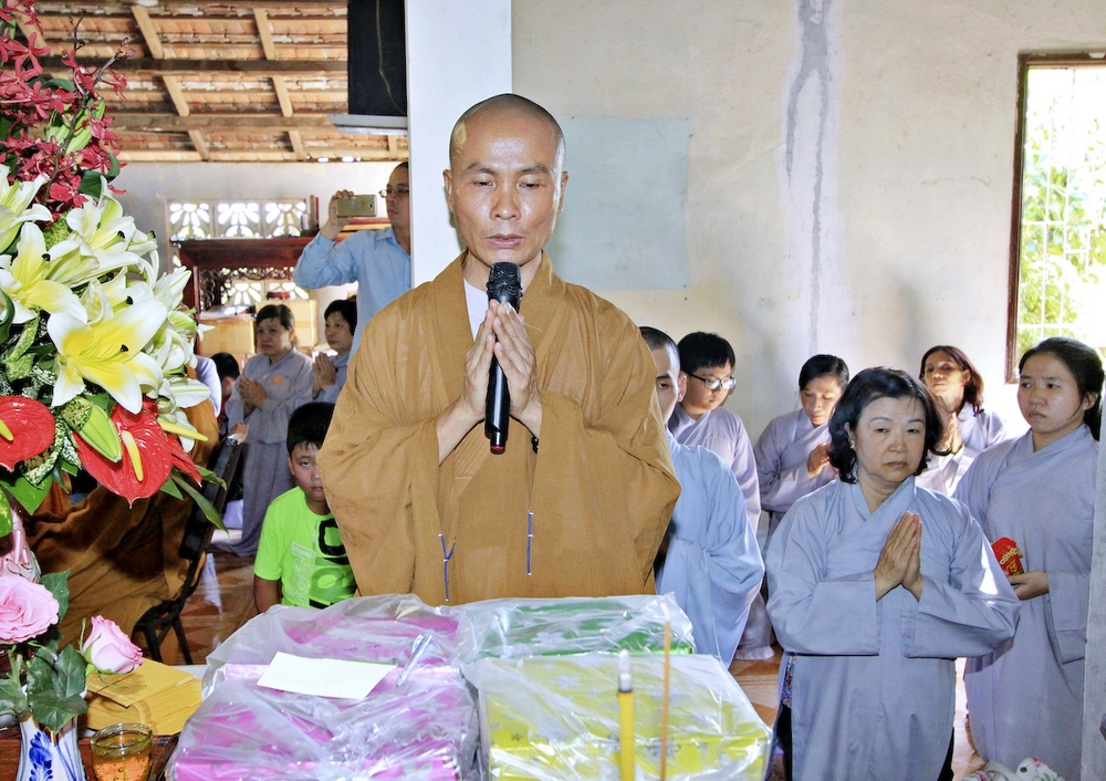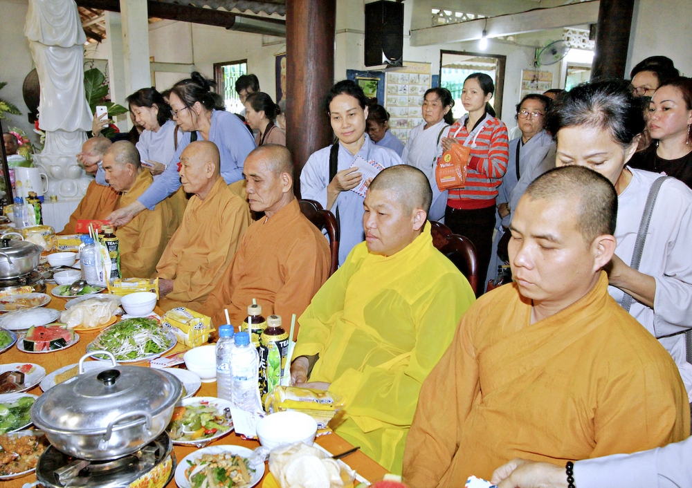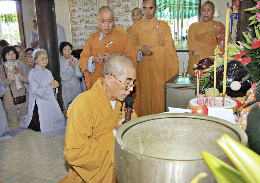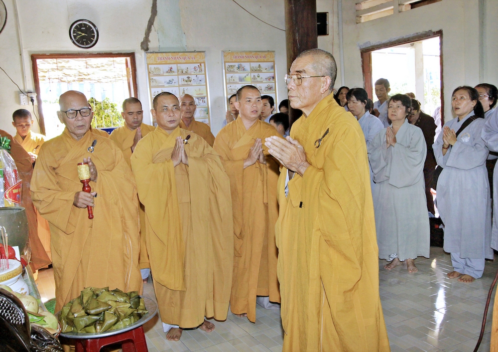 Đúng 8h30, Đại Đức Thích An Tịch – Giám Thị trường Sơ Cấp Phật học tỉnh Long An đã thay mặt Đại Đức Thích An Lợi – Quản sự Chùa Tịnh Độ cung thỉnh chư tôn đức Tăng quang lâm về trước Đài Quan Âm thiết lễ Phóng Sanh. Sau khóa lễ Phóng sanh là thời khóa Cúng ngọ, và cung thỉnh TT. Thích Tắc Viên – Trụ trì chùa Liên Hoa đương vi sám chủ. Sau thời khóa cúng ngọ, ĐĐ. Thích An Lợi đã đối trước chư tôn Hòa Thượng, Thượng Tọa, Đại Đức tăng cung thỉnh quý Ngài quang lâm tổ đường thắp hương tưởng niệm, Hòa Thượng Thích Minh Thiện cùng chư tôn đức tăng thắp hương tưởng niệm trước Tổ Đường, sau đó cung thỉnh quý Ngài quang lâm trai đường thọ trai và cúng dường. ĐĐ. Thích An Lợi dâng lên lời tác bạch trong buổi lễ Húy Kỵ. Sau lời tác pháp cúng dường, Hòa Thượng Thích Minh Thiện ban lời đạo từ, đã tán thán công đức cúng dường trai tăng của Đại Đức quản sự cũng như chư vị thiện nam tín nữ đã nhịn ăn bớt mặc để đóng góp và dâng lễ phẩm cúng dường cho chư tôn Đức. Bên cạnh đó Ngài cũng đã nêu rõ về công đức của sự cúng dường và đồng thời chúc cho chư tôn đức bổn tự cũng như chư thiện nam tín nữ những lời chúc tốt đẹp nhất.