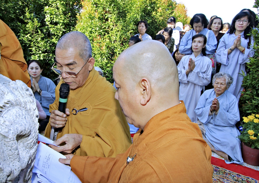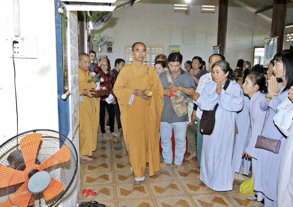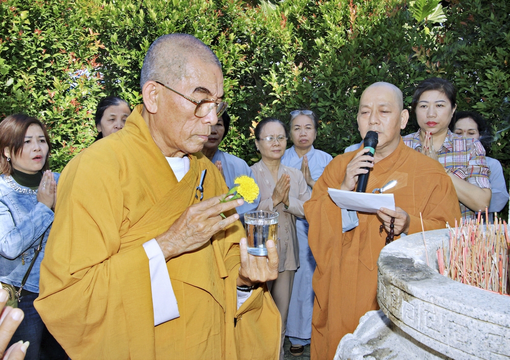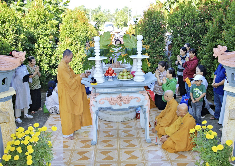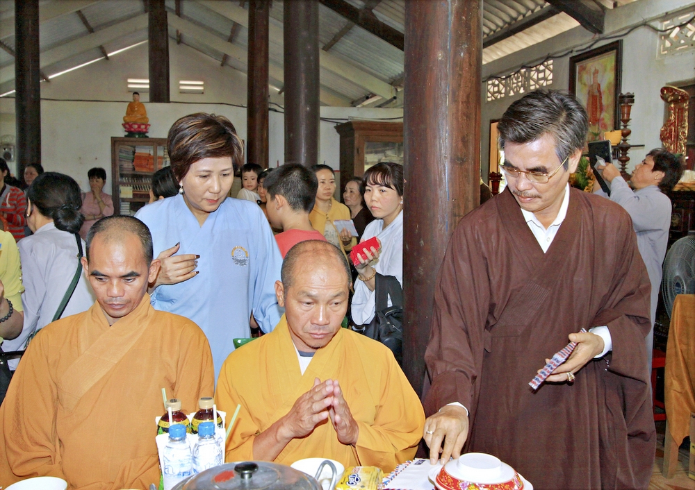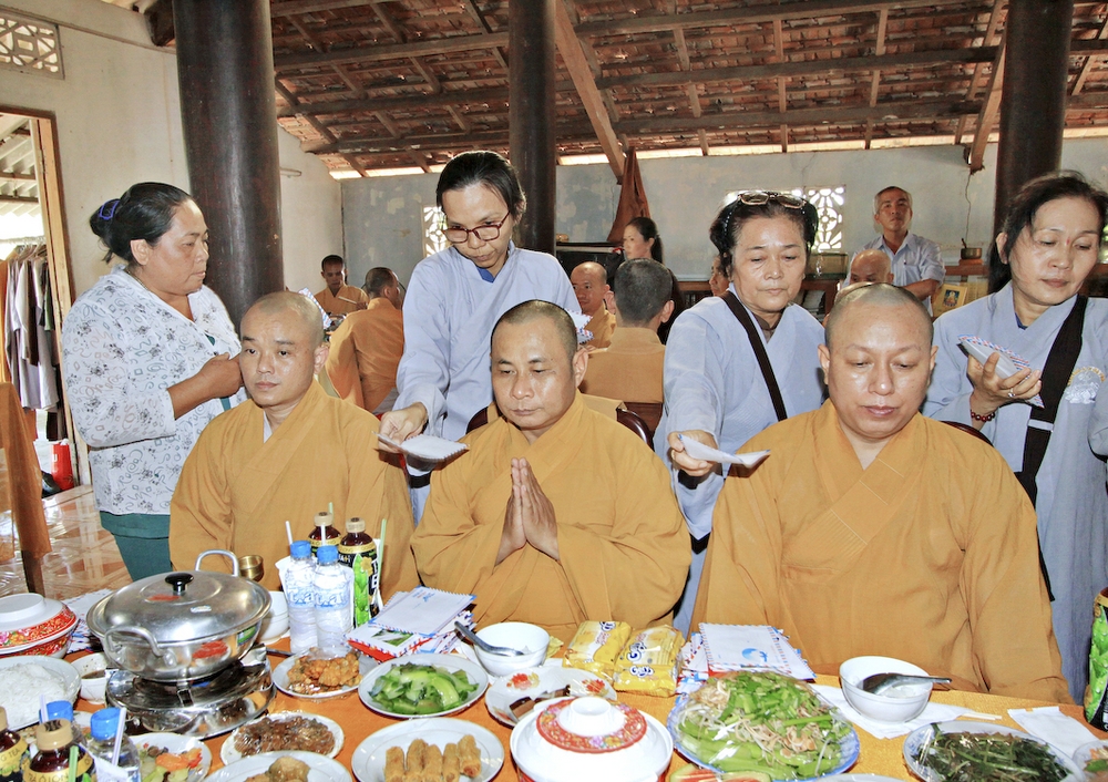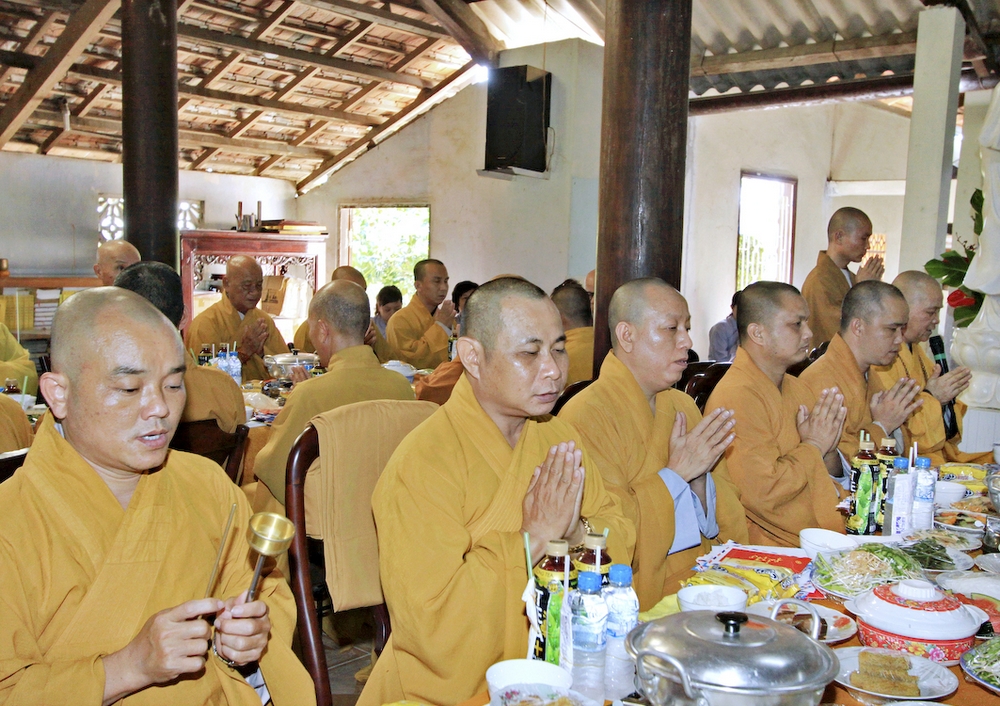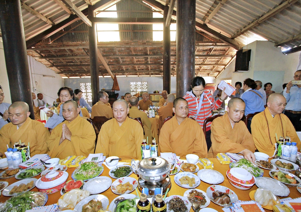 Đúng 8h30, Đại Đức Thích An Tịch – Giám Thị trường Sơ Cấp Phật học tỉnh Long An đã thay mặt Đại Đức Thích An Lợi – Quản sự Chùa Tịnh Độ cung thỉnh chư tôn đức Tăng quang lâm về trước Đài Quan Âm thiết lễ Phóng Sanh. Sau khóa lễ Phóng sanh là thời khóa Cúng ngọ, và cung thỉnh TT. Thích Tắc Viên – Trụ trì chùa Liên Hoa đương vi sám chủ. Sau thời khóa cúng ngọ, ĐĐ. Thích An Lợi đã đối trước chư tôn Hòa Thượng, Thượng Tọa, Đại Đức tăng cung thỉnh quý Ngài quang lâm tổ đường thắp hương tưởng niệm, Hòa Thượng Thích Minh Thiện cùng chư tôn đức tăng thắp hương tưởng niệm trước Tổ Đường, sau đó cung thỉnh quý Ngài quang lâm trai đường thọ trai và cúng dường. ĐĐ. Thích An Lợi dâng lên lời tác bạch trong buổi lễ Húy Kỵ. Sau lời tác pháp cúng dường, Hòa Thượng Thích Minh Thiện ban lời đạo từ, đã tán thán công đức cúng dường trai tăng của Đại Đức quản sự cũng như chư vị thiện nam tín nữ đã nhịn ăn bớt mặc để đóng góp và dâng lễ phẩm cúng dường cho chư tôn Đức. Bên cạnh đó Ngài cũng đã nêu rõ về công đức của sự cúng dường và đồng thời chúc cho chư tôn đức bổn tự cũng như chư thiện nam tín nữ những lời chúc tốt đẹp nhất.