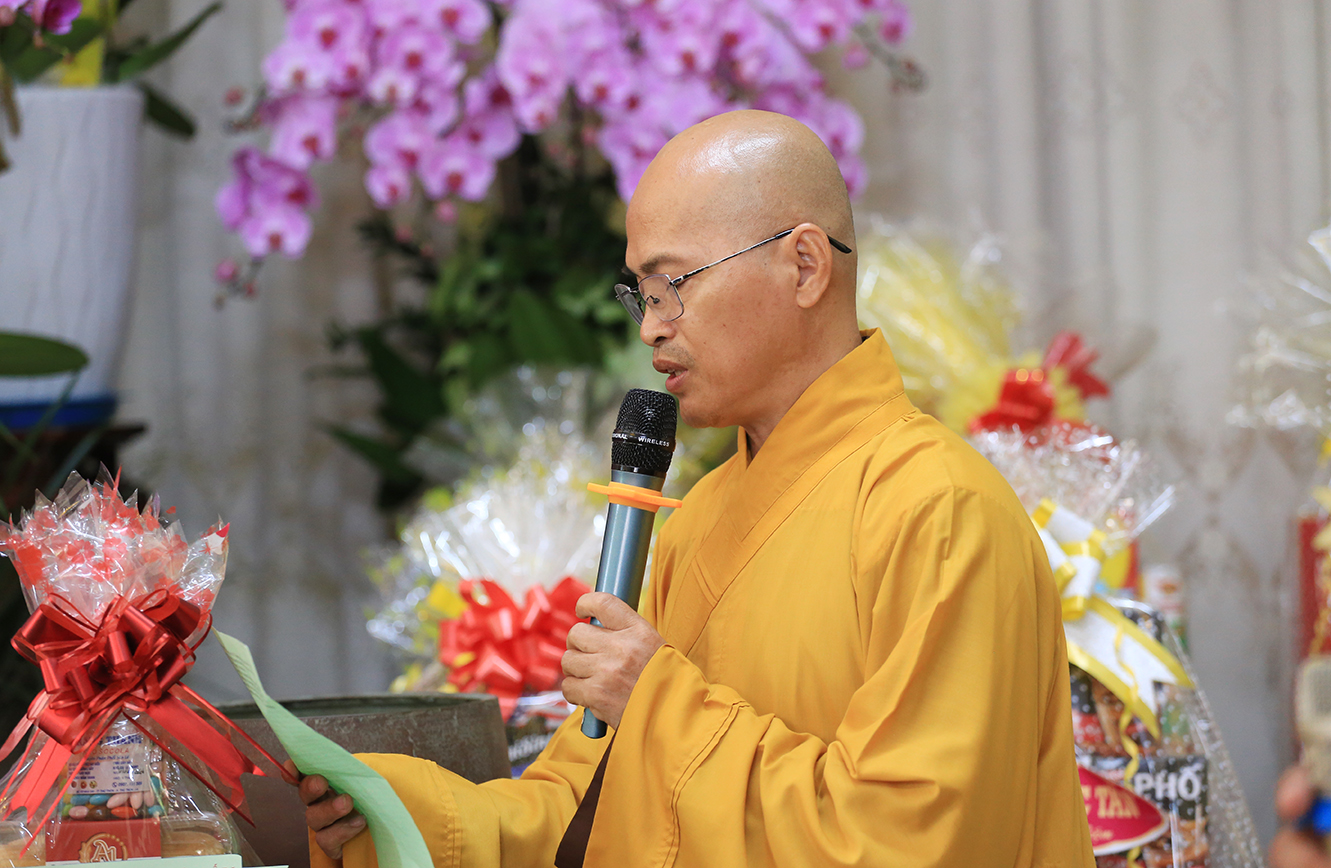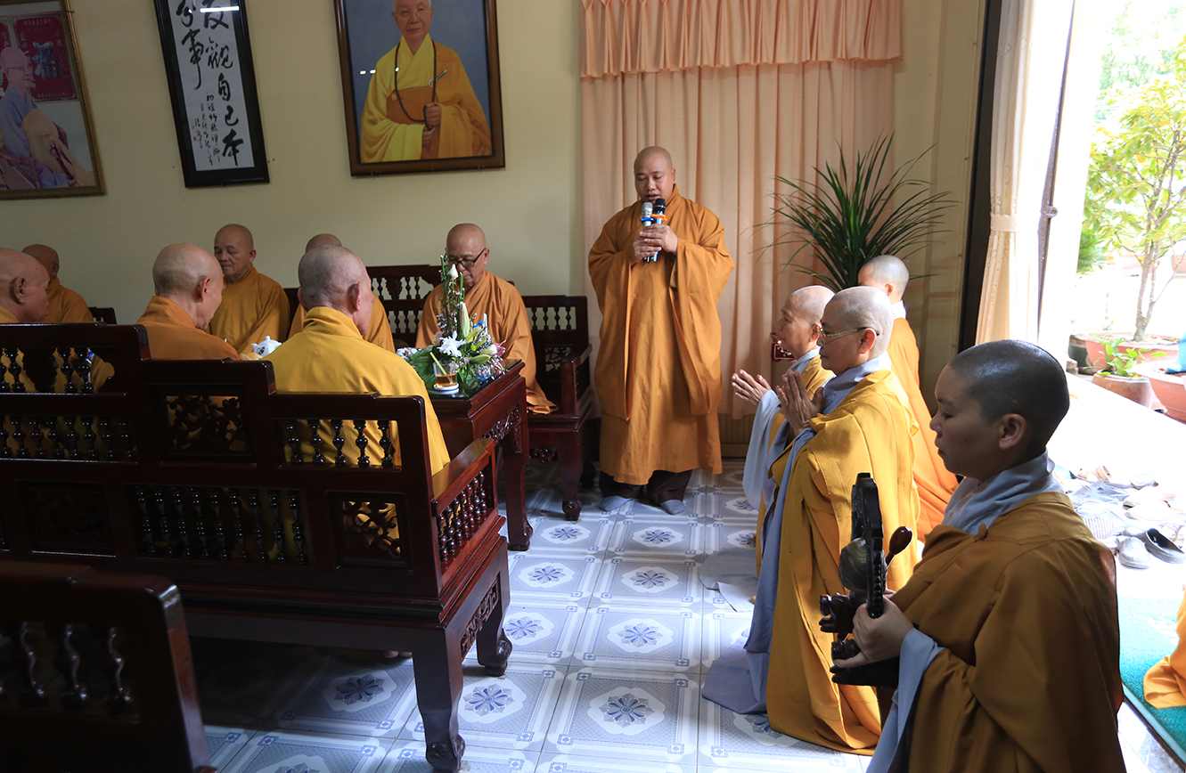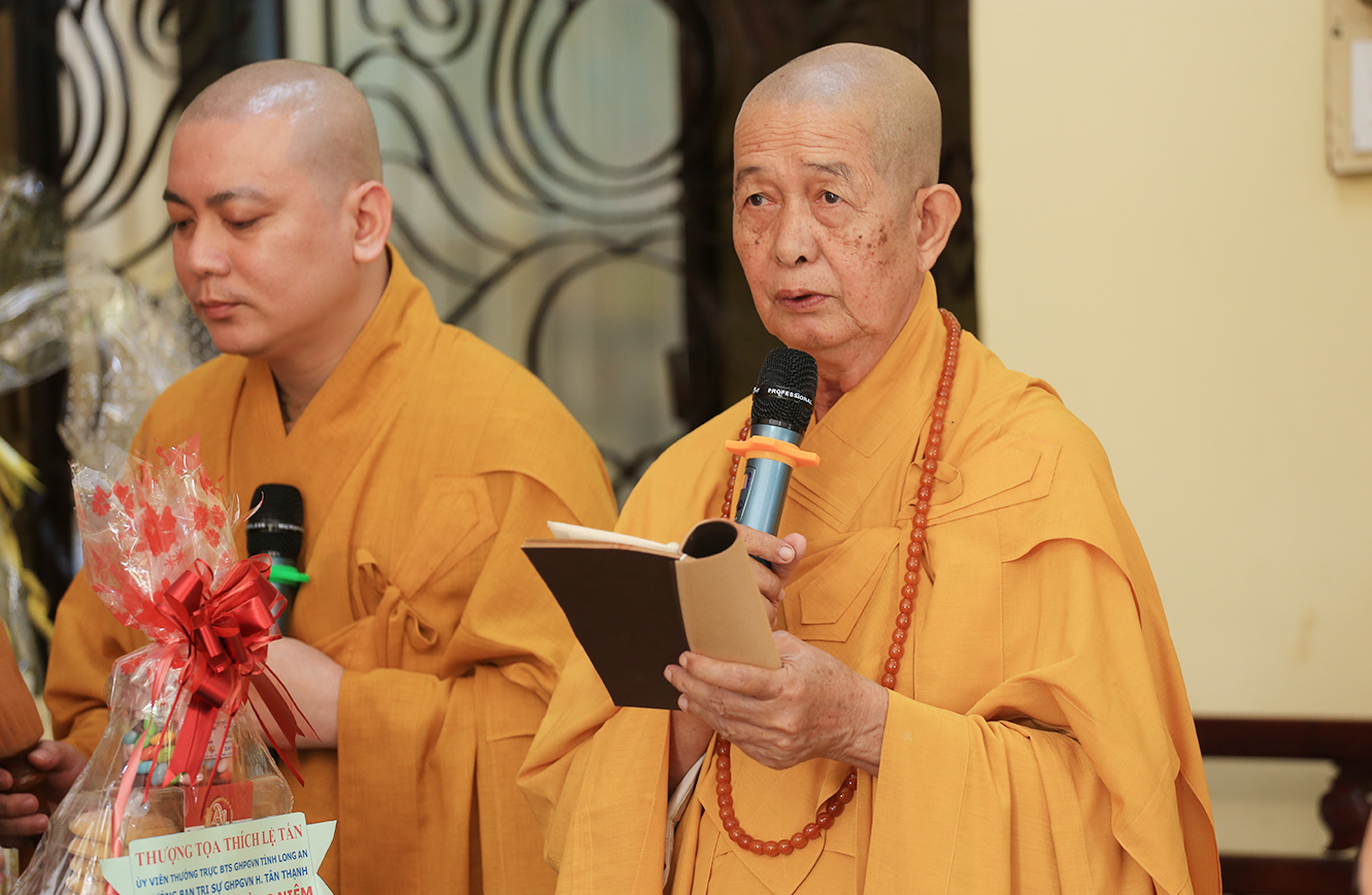 Đáp lại tấm lòng tri ân, hiếu kính của môn hạ tứ chúng đệ tử, trước tiên, HT. Thích Minh Thiện- Ủy viên HĐTSTƯ, Phó Ban Hoằng pháp trung ương, Trưởng Ban Trị sự GHPGVN tỉnh Long An chân tình tán thán hiếu tâm, hiếu đạo của tông môn pháp quyến đối với bậc Thầy cao cả. Hòa thượng nhắc lại công lao một đời không quản gian lao, không màng khó nhọc, Ni trưởng đã dấn thân phụng sự cho đạo pháp tại tỉnh Tiền Giang, Long An và các tỉnh thành trên mọi miền đất nước. Nhất là về phương diện giáo dục, Ni trưởng là một bậc trưởng lão Ni cả cuộc đời lấy Giới đức làm bậc thầy mô phạm, đào tạo thê hệ Ni tài kế thừa mạng mạch Phật pháp; Ni trưởng là bậc Ni lưu có nhiều đóng góp cho sự phát triển của Ni giới Miền nam; Cuộc đời và đạo hạnh của Ni trưởng là tấm gương cho đàn hậu thế nương theo tu học.