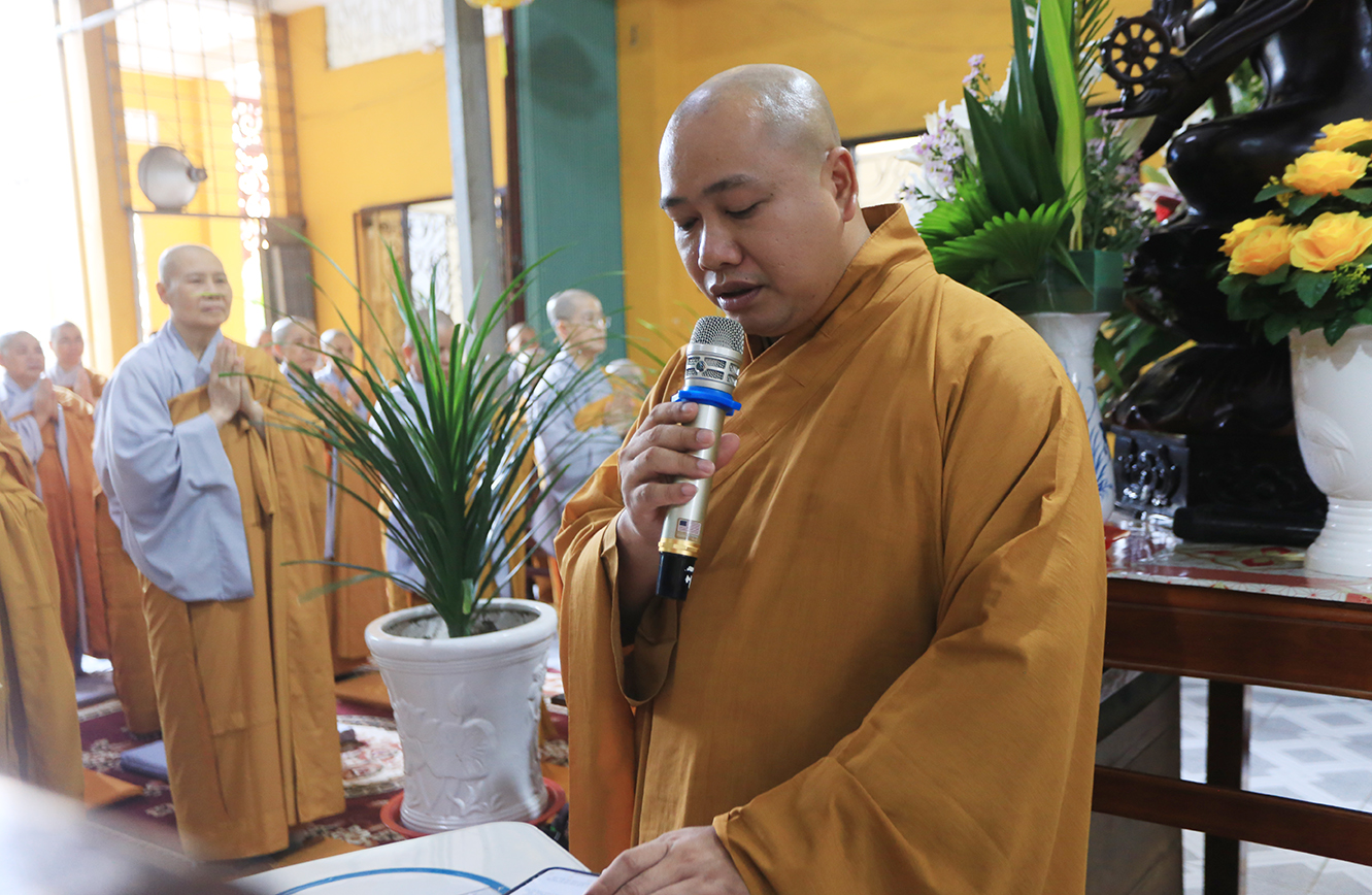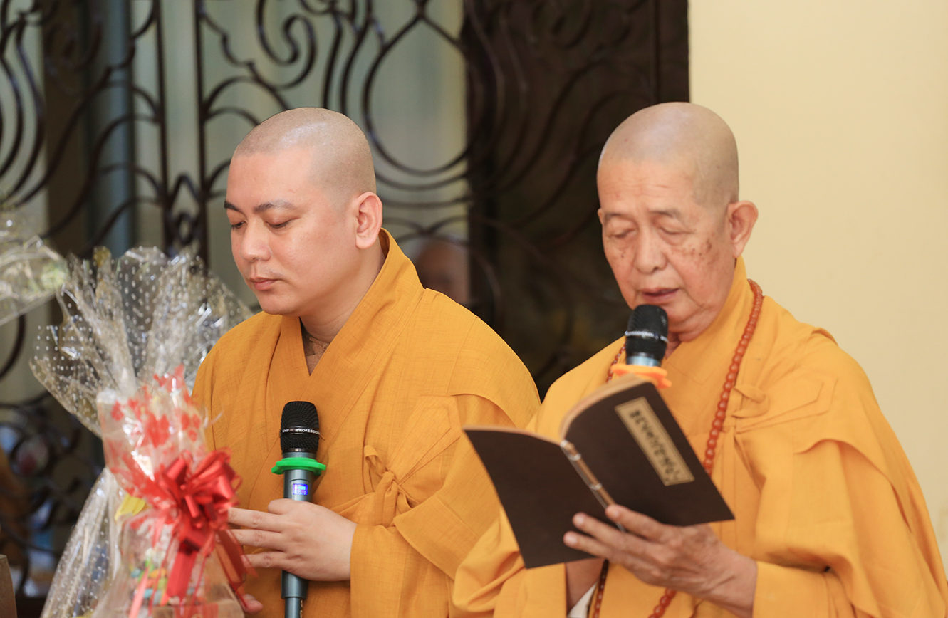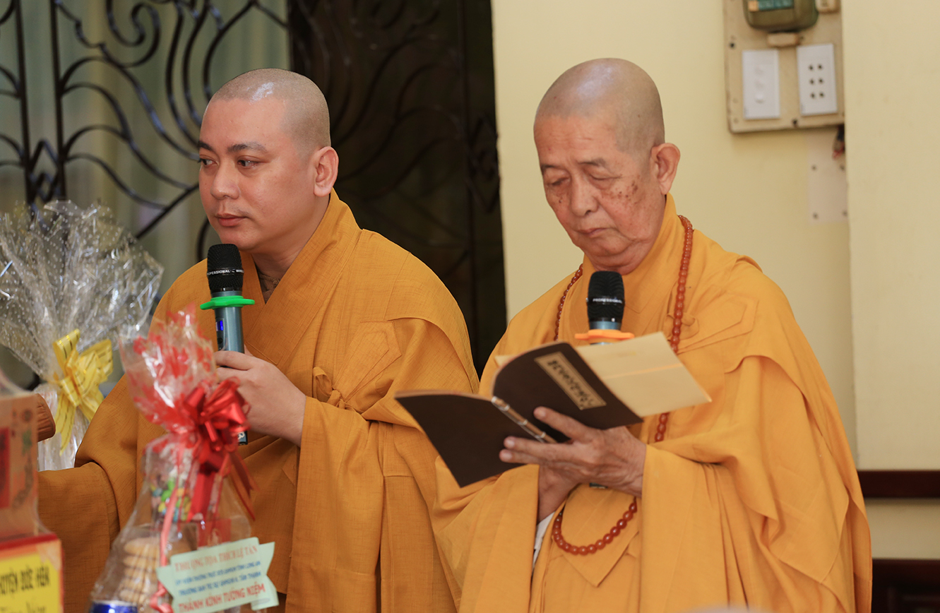 Đáp lại tấm lòng tri ân, hiếu kính của môn hạ tứ chúng đệ tử, trước tiên, HT. Thích Minh Thiện- Ủy viên HĐTSTƯ, Phó Ban Hoằng pháp trung ương, Trưởng Ban Trị sự GHPGVN tỉnh Long An chân tình tán thán hiếu tâm, hiếu đạo của tông môn pháp quyến đối với bậc Thầy cao cả. Hòa thượng nhắc lại công lao một đời không quản gian lao, không màng khó nhọc, Ni trưởng đã dấn thân phụng sự cho đạo pháp tại tỉnh Tiền Giang, Long An và các tỉnh thành trên mọi miền đất nước. Nhất là về phương diện giáo dục, Ni trưởng là một bậc trưởng lão Ni cả cuộc đời lấy Giới đức làm bậc thầy mô phạm, đào tạo thê hệ Ni tài kế thừa mạng mạch Phật pháp; Ni trưởng là bậc Ni lưu có nhiều đóng góp cho sự phát triển của Ni giới Miền nam; Cuộc đời và đạo hạnh của Ni trưởng là tấm gương cho đàn hậu thế nương theo tu học.