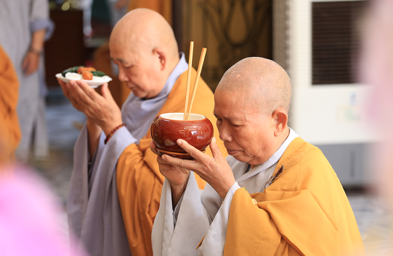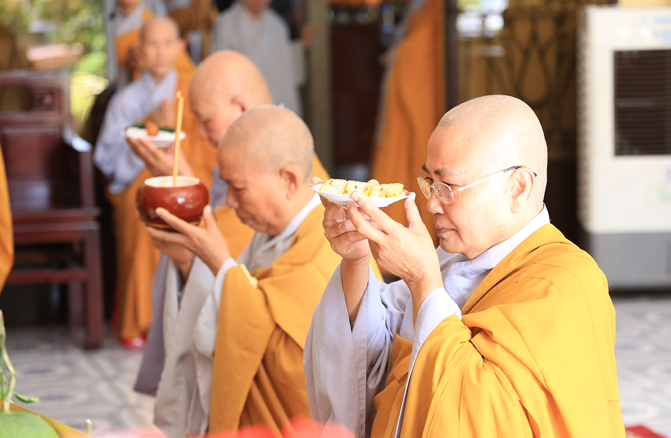 Ni trưởng Như Phương đãi lao cho toàn thể môn nhơn pháp quyến thành kính dâng lời tác bạch, ôn lại những ân tình, công đức cao cả của Thầy và lời phát nguyện vâng lời Ân sư chỉ dạy, tiếp nối hạnh nguyện một đời hi sinh vì đạo Pháp của Thầy.