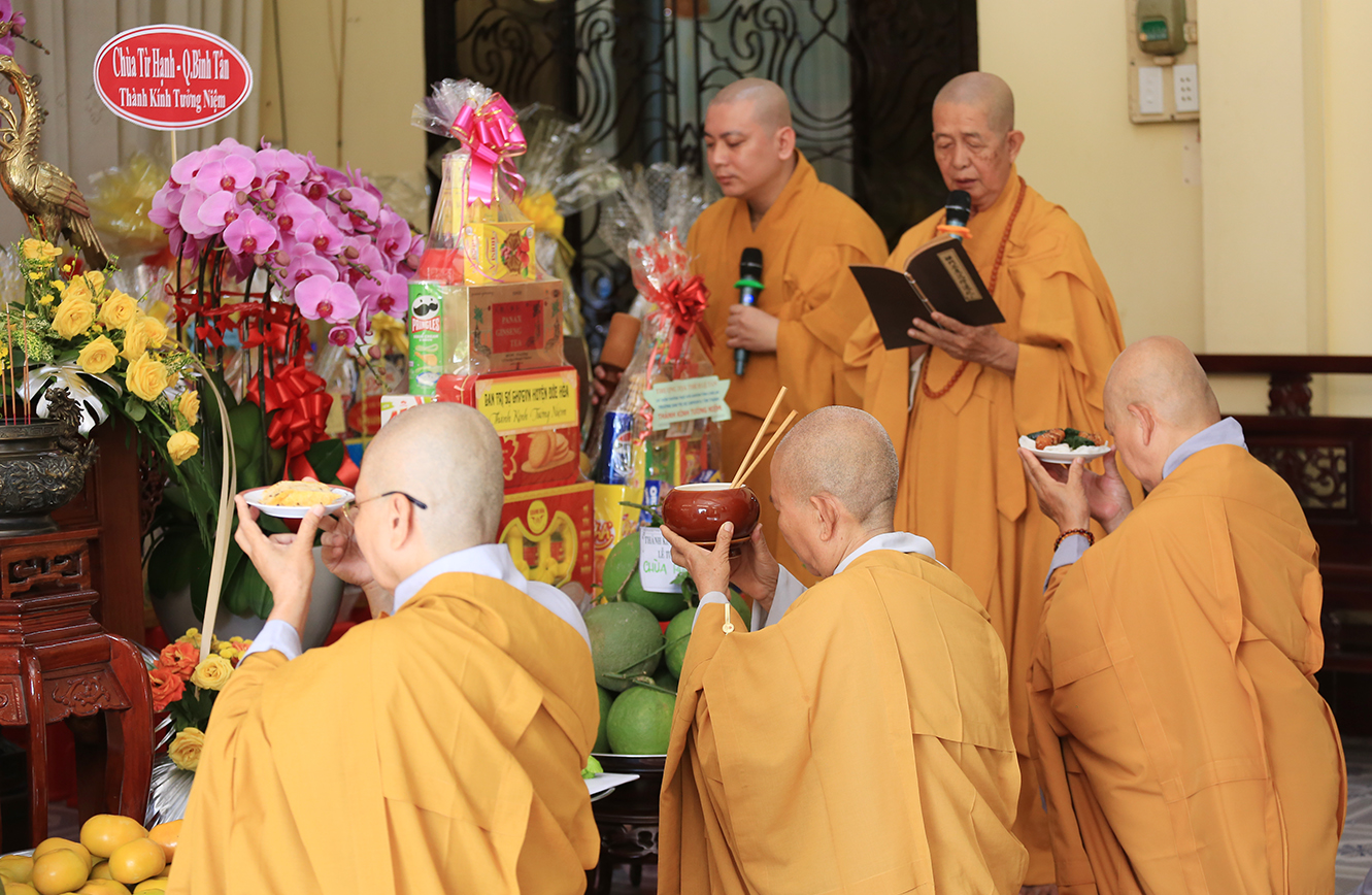 Ngày tưởng niệm diễn ra trong không khí trang nghiêm, 8h sáng, toàn thể môn nhơn pháp quyến vân tập Đại hùng Bảo điện thực hiện khóa lễ trì tụng kinh Phổ Hiền, cúng ngọ, dâng lên cúng dường tưởng niệm Ân sư, cầu nguyện quốc thới dân an, thế giới hòa bình, chúng sinh an lạc.