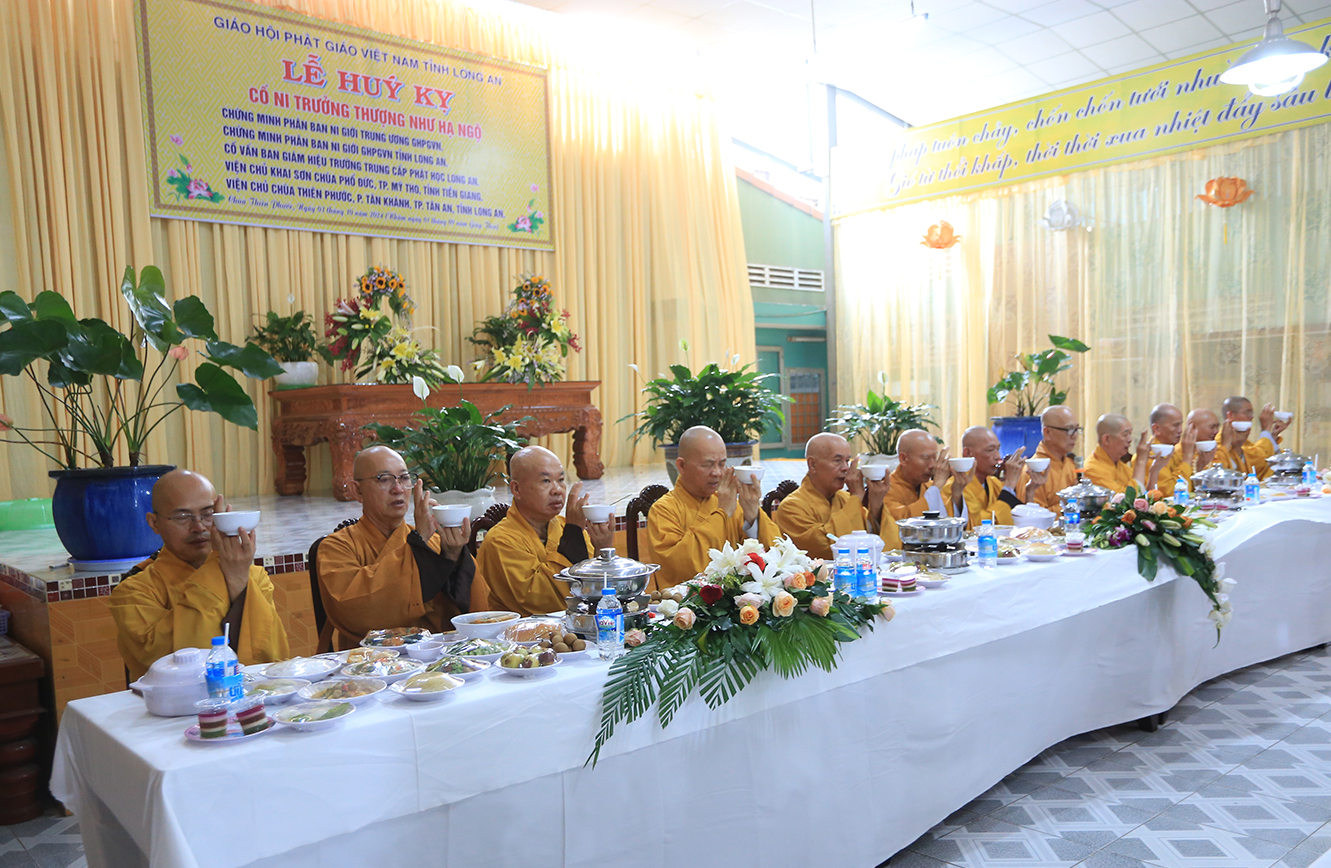 Toàn thể môn nhơn pháp quyến hân hoan cung đón chư tôn thiền đức giáo phẩm: HT. Thích Thiện Huệ- Thành viên HĐCM GHPGVN, Chứng minh Ban TSGHPGVN tỉnh Long An; HT. Thích Minh Thiện- UVHĐTS, Phó Trưởng ban Hoằng pháp TW, Trưởng ban Trị sự GHPGVN tỉnh Long An; HT. Thích Huệ Hồng, CMBTSGHPGVN tỉnh Long An; HT. Thích Thiện Tài- CMBTS GHPGVN tỉnh; HT. Thích Quảng Ý- CMBTS GHPGVN tỉnh; TT. Thích Quảng Tâm- UVHĐTS, Phó Trưởng Ban Thường trực GHPGVN tỉnh cùng chư Tôn đức Tăng Ni trong thường trực Ban Trị sự GHPGVN tỉnh Chư tôn đức Tăng Ni, thường trực Ban Trị sự các huyện thị xã, thành phố trong tỉnhLong An; chư Tôn đức Tăng Ni trụ trì các tự viện Tp HCM, tỉnh Long An, tỉnh Tiền Giang, tỉnh Bến Tre đồng quang lâm chứng minh, tưởng niệm lễ húy kị cố Ni trưởng.