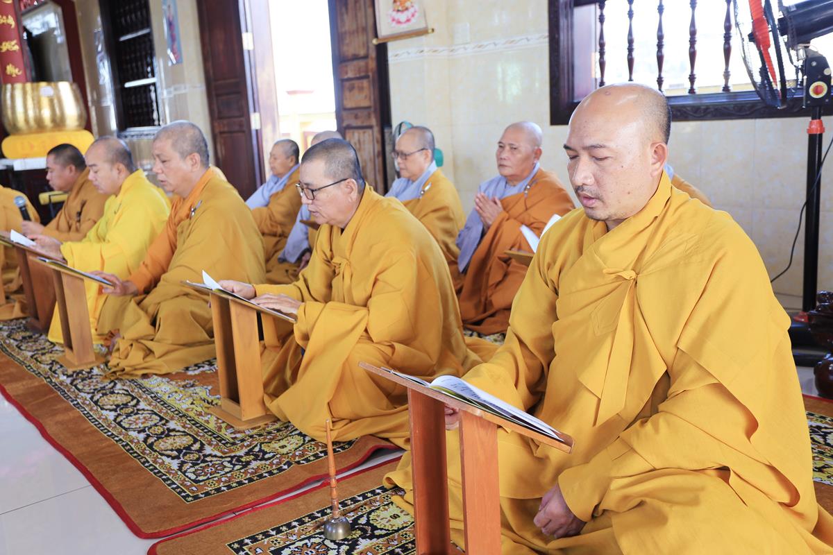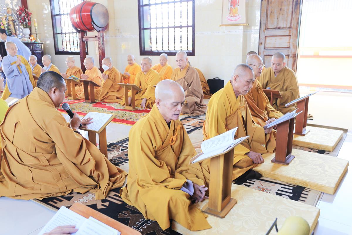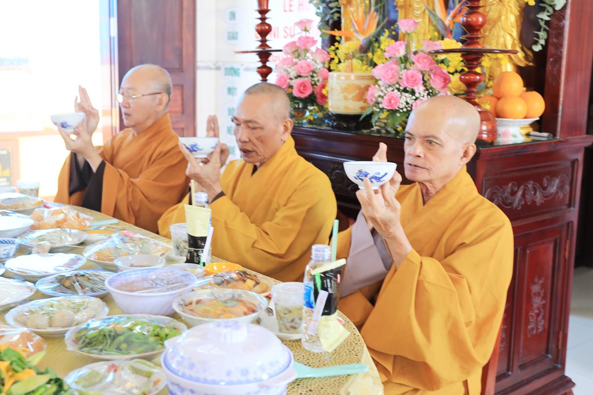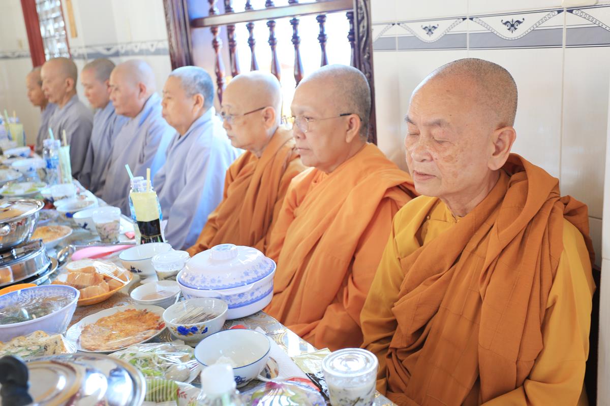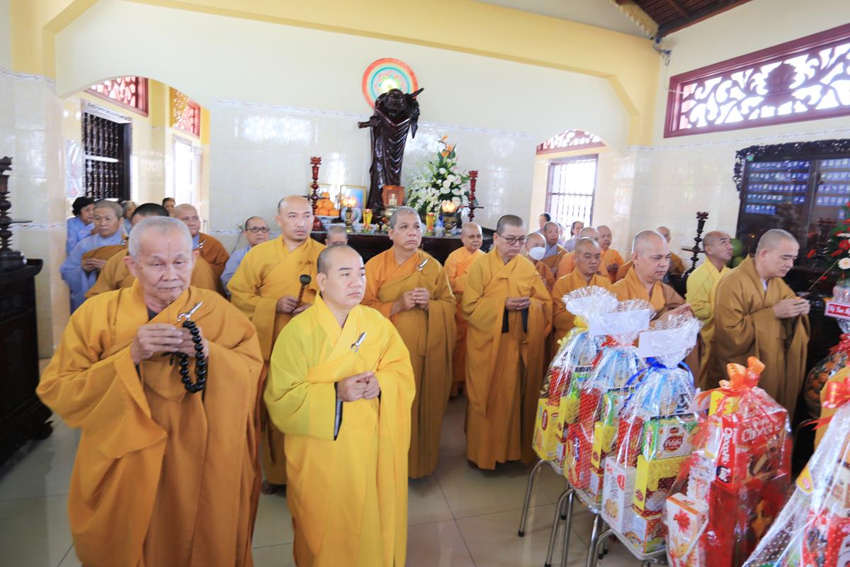 Đáp lời cung thỉnh của Môn đồ pháp quyến, chư tôn đức chứng minh quang lâm chánh điện thực hiện khóa lễ trì tụng kinh A Di Đà và cúng ngọ, kỳ nguyện Giác linh Ni trưởng cao đăng Phật quốc, sớm hội nhập ta bà để tiếp tục hạnh nguyện độ sanh. Sau đó chư tôn đức quang lâm Tổ đường thắp hương tưởng niệm công đức Cố Ni trưởng một đời phụng sự cho đạo pháp – dân tộc.
