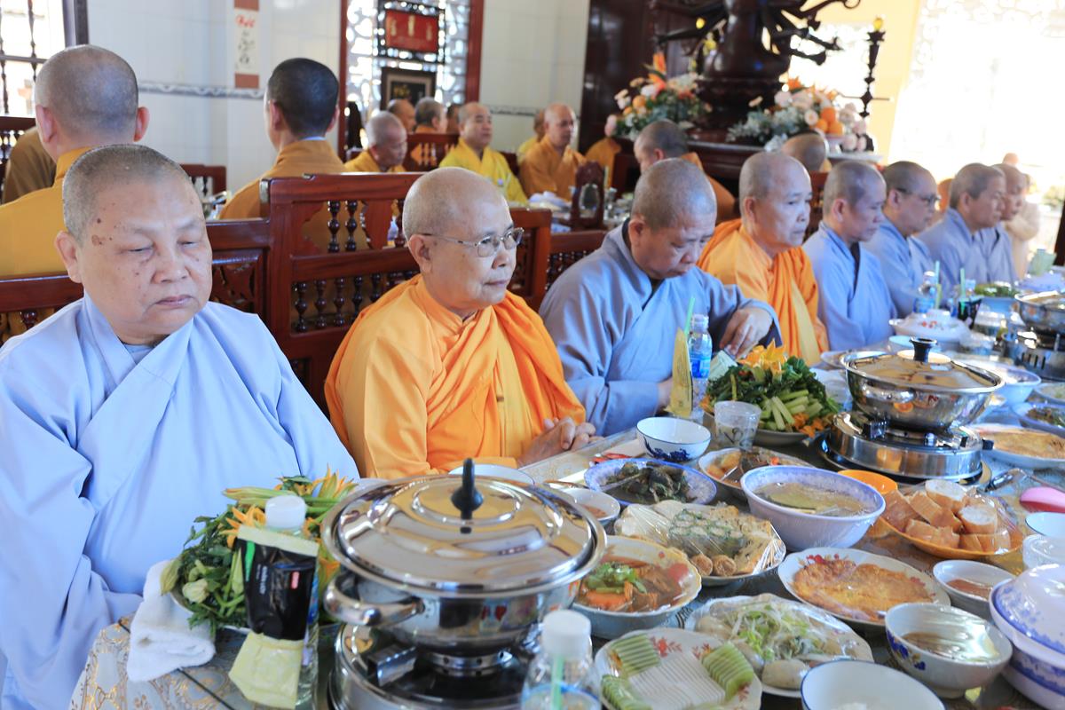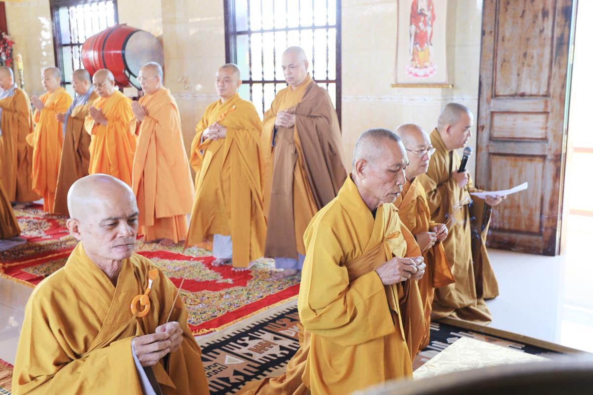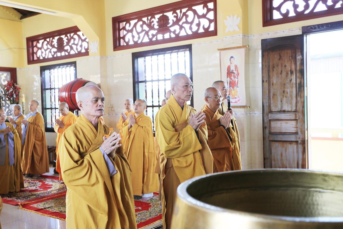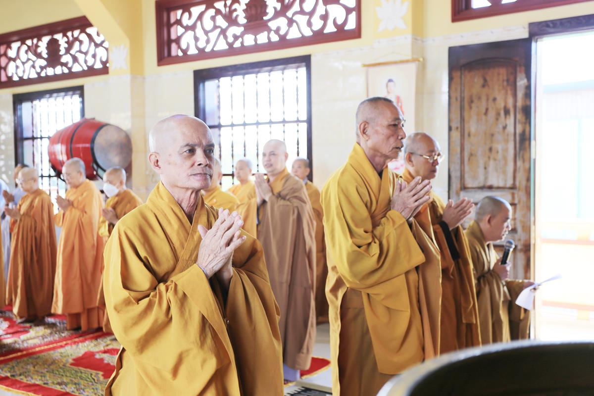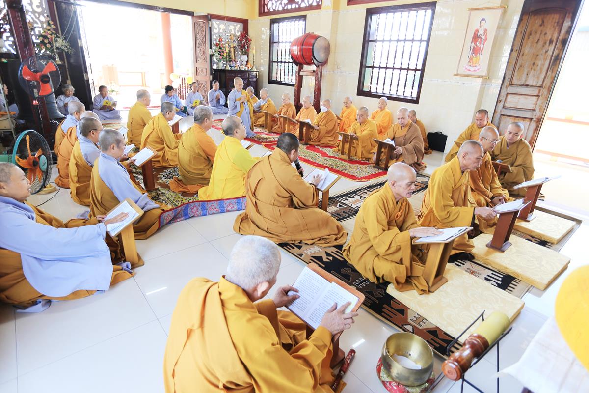 Đáp lời cung thỉnh của Môn đồ pháp quyến, chư tôn đức chứng minh quang lâm chánh điện thực hiện khóa lễ trì tụng kinh A Di Đà và cúng ngọ, kỳ nguyện Giác linh Ni trưởng cao đăng Phật quốc, sớm hội nhập ta bà để tiếp tục hạnh nguyện độ sanh. Sau đó chư tôn đức quang lâm Tổ đường thắp hương tưởng niệm công đức Cố Ni trưởng một đời phụng sự cho đạo pháp – dân tộc.