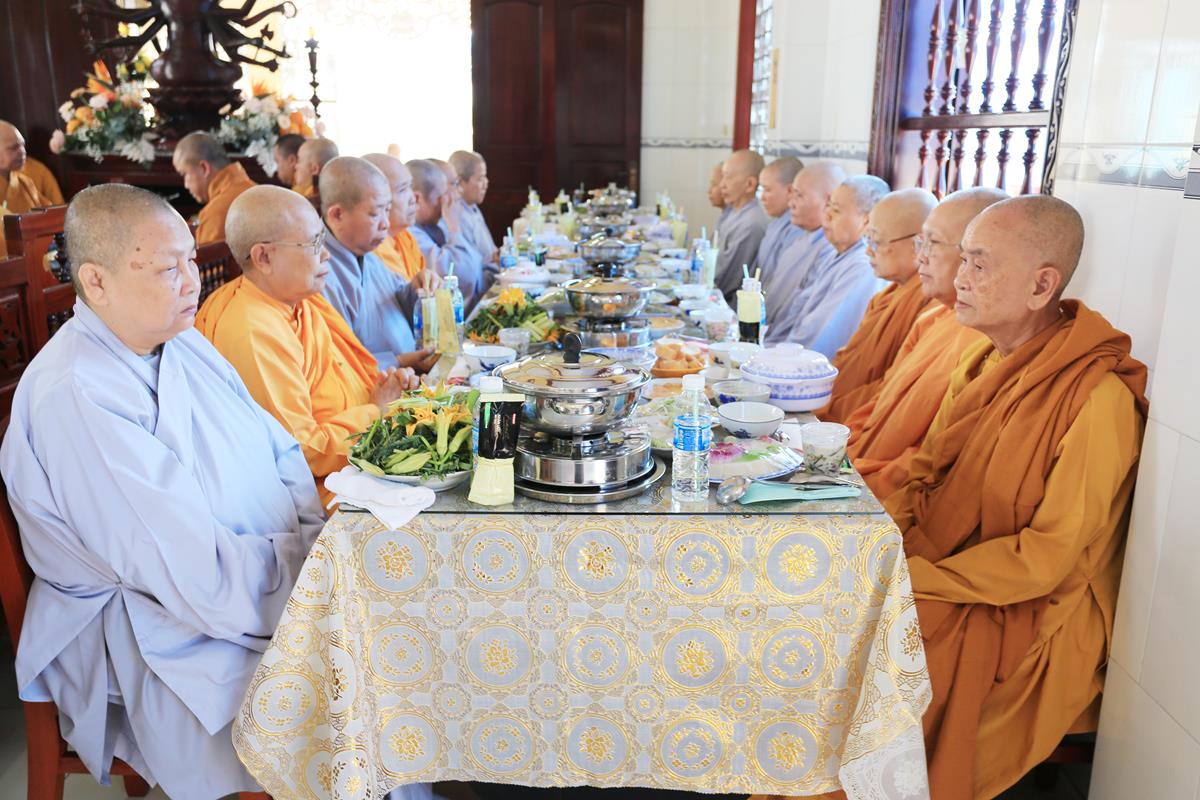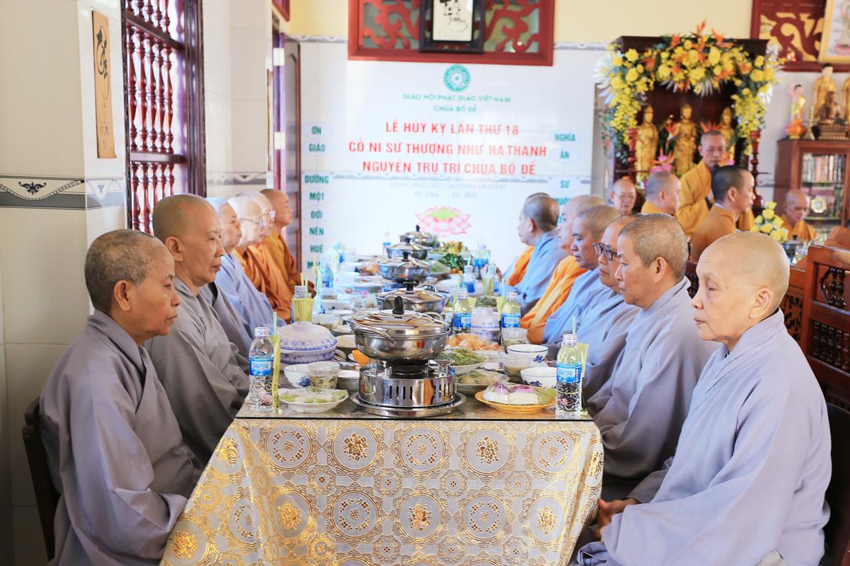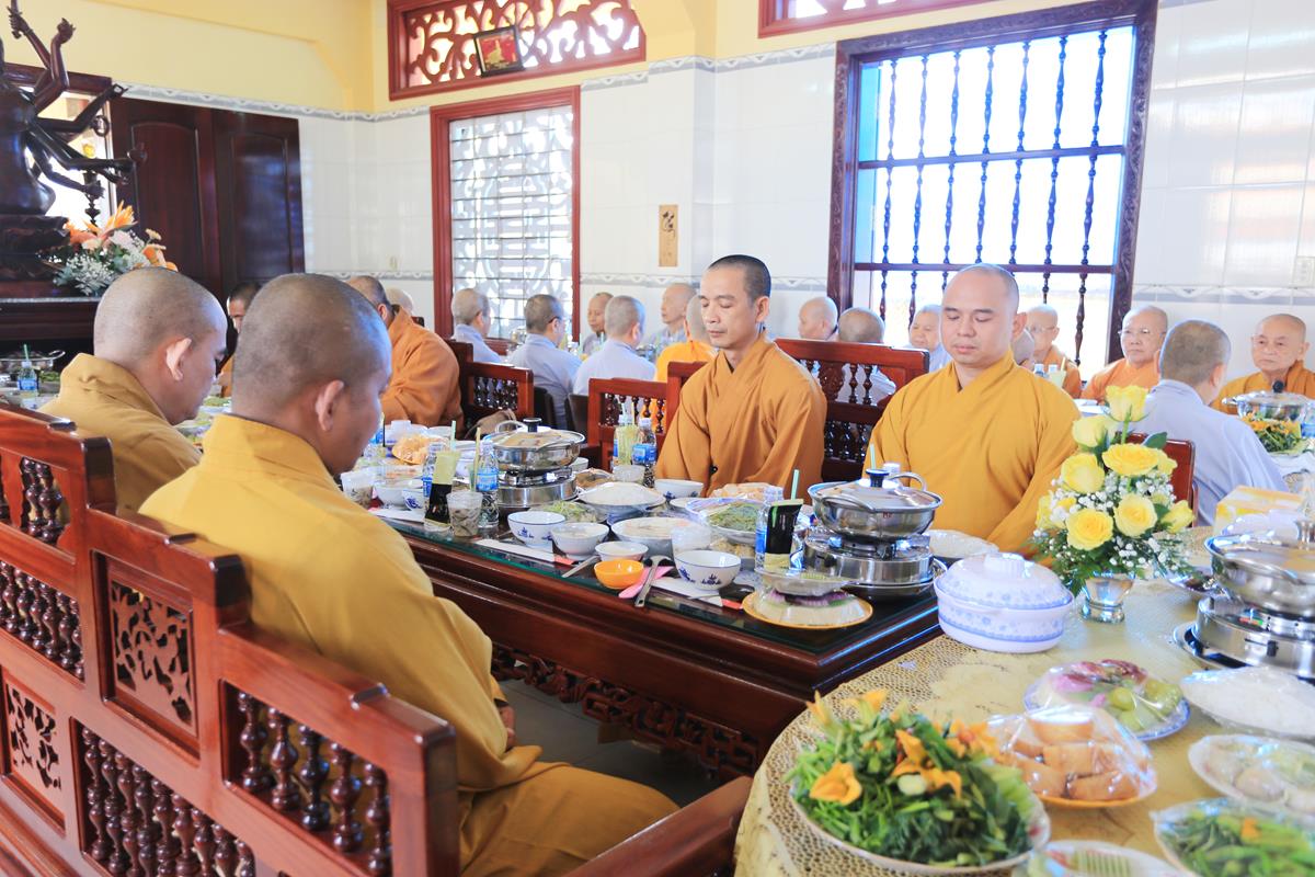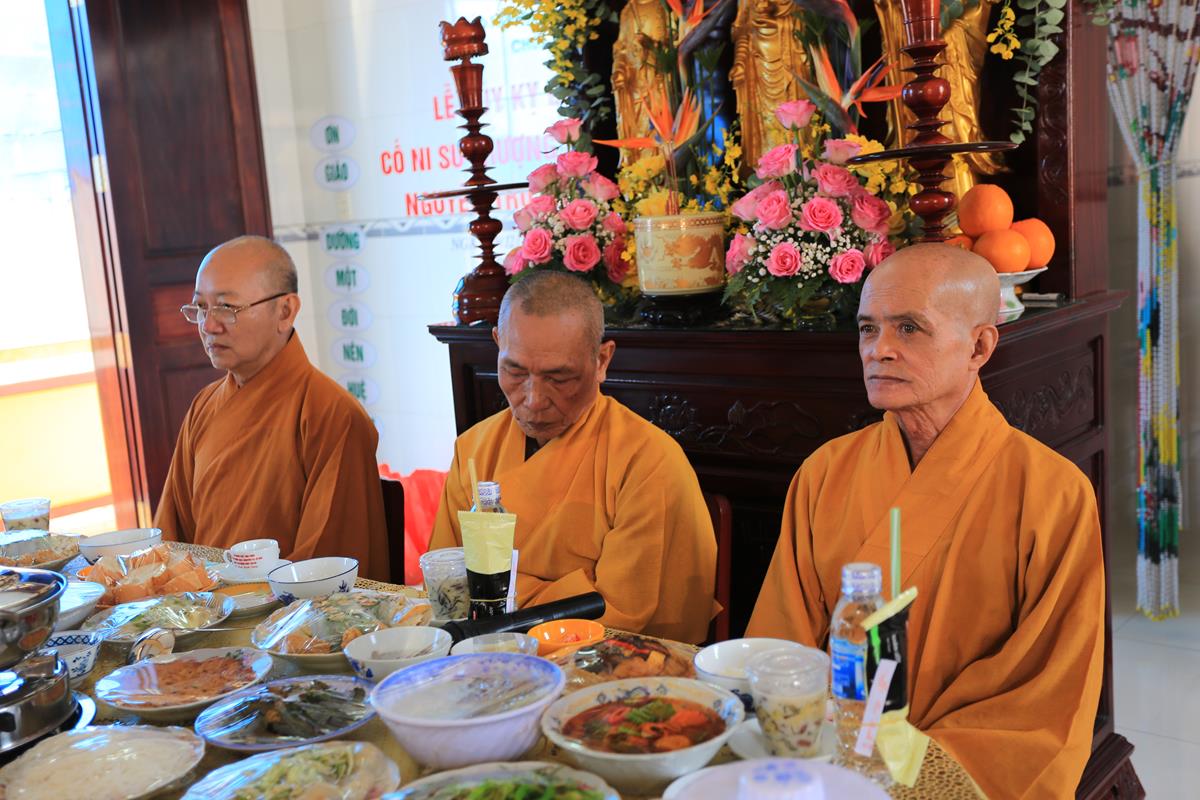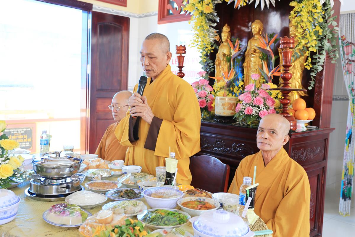 Đáp lời cung thỉnh của Môn đồ pháp quyến, chư tôn đức chứng minh quang lâm chánh điện thực hiện khóa lễ trì tụng kinh A Di Đà và cúng ngọ, kỳ nguyện Giác linh Ni trưởng cao đăng Phật quốc, sớm hội nhập ta bà để tiếp tục hạnh nguyện độ sanh. Sau đó chư tôn đức quang lâm Tổ đường thắp hương tưởng niệm công đức Cố Ni trưởng một đời phụng sự cho đạo pháp – dân tộc.