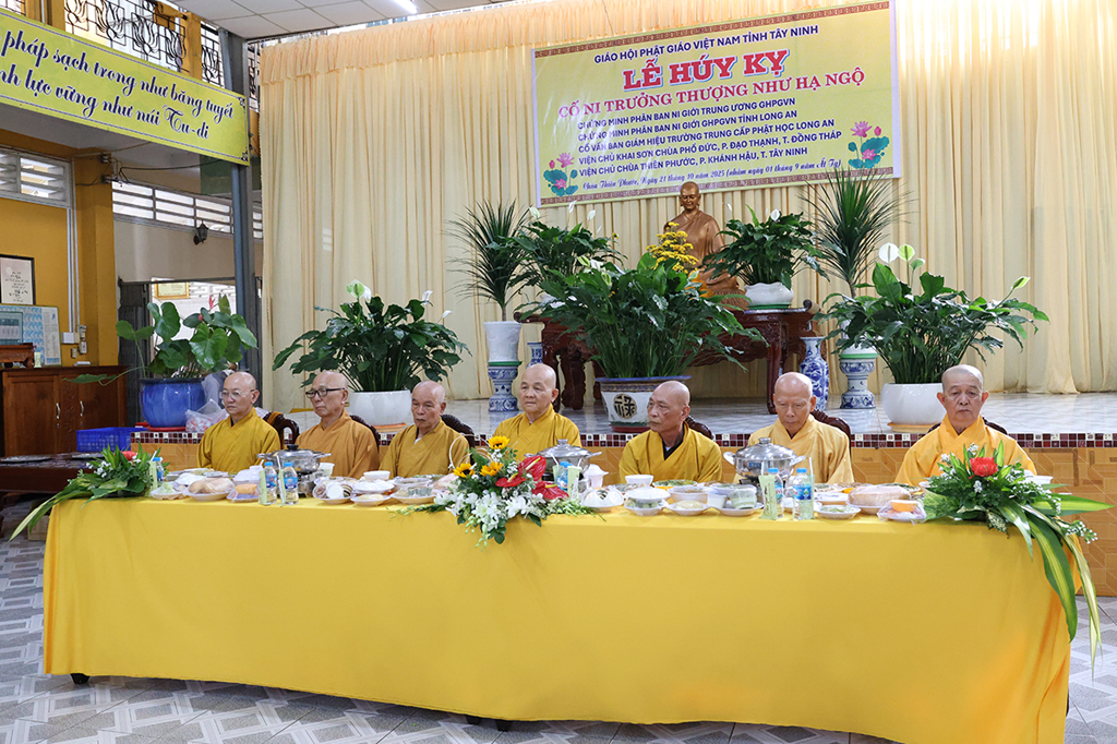 Sáng ngày 21/9/2025 (nhằm ngày 01/9/Ất Tỵ), môn nhân pháp quyến Ni viện Thiên Phước, phường Khánh Hậu, tỉnh Tây Ninh long trọng tổ chức Lễ Tưởng niệm Cố Ni trưởng Thích nữ Như Ngộ – Chứng minh Phân ban Ni giới Trung Ương GHPGVN, Chứng minh Phân ban Ni giới thuộc Ban Tăng sự GHPGVN tỉnh Long An, Cố vấn Ban Giám hiệu Trường Trung cấp Phật học Long An, Viện chủ chùa Thiên Phước.