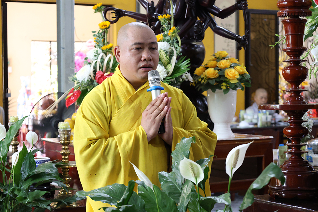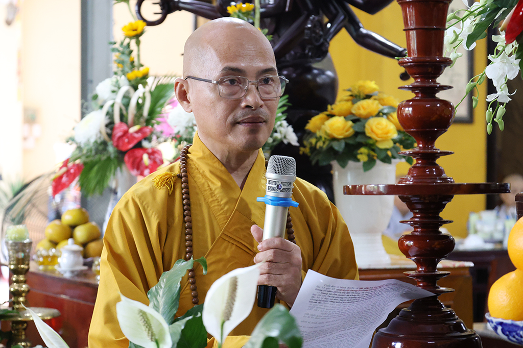 HT. Thích Minh Thiện – UV HĐTS, Phó ban Hoằng pháp TƯ, Chứng minh, Cố vấn BTS GHPGVN tỉnh Tây Ninh ban đạo từ. Hòa thượng đã tuyên dương công hạnh của Cố Ni trưởng, tri ân công đức đóng góp sinh thời của bậc Hiền ni trong công cuộc Giáo dục, đào tạo Tăng tài. Thời gian thắm thoát trôi qua, đạo tình pháp lữ, nghĩa Linh Sơn vẫn còn in đậm trong tâm khảm người hiện tại. Hòa thượng nhấn mạnh: Dù các pháp tùy duyên thay đổi, nhưng tất cả tâm nguyện, tâm hạnh của Ni trưởng mãi là tấm gương sáng ngời cho hàng hậu học ni giới hôm nay. Vì thế, Hòa thượng mong mỏi chư Ni pháp quyến tại Ni viện Thiên Phước hãy đoàn kết hòa hợp, tạo điều kiện tối ưu, duy trì phát triển cơ sở trên tinh thần Phật học, kết thừa tốt đẹp giềng mối đạo của Ân sư đã tâm huyết tạo thành.