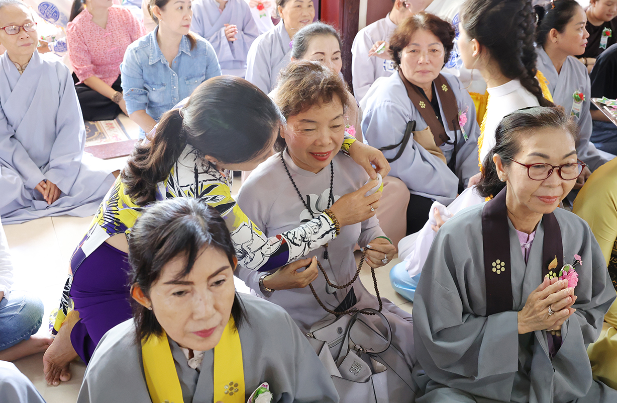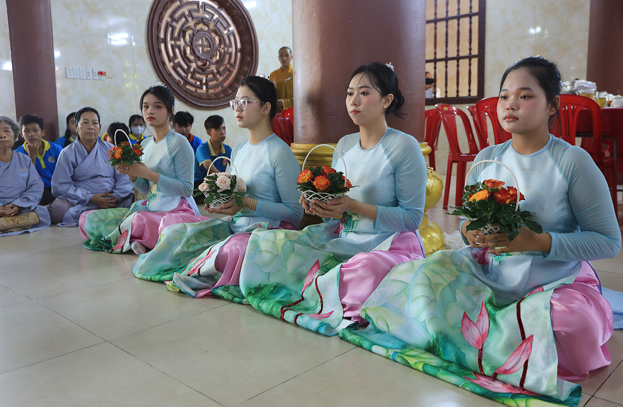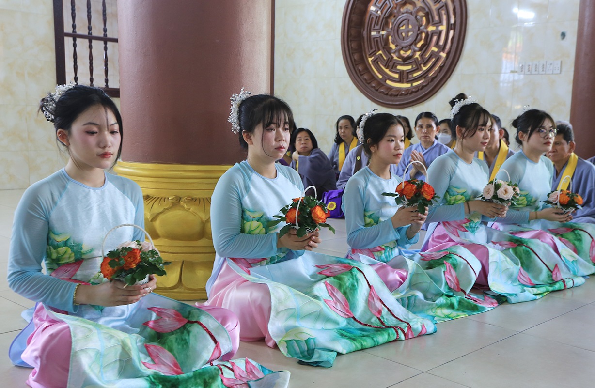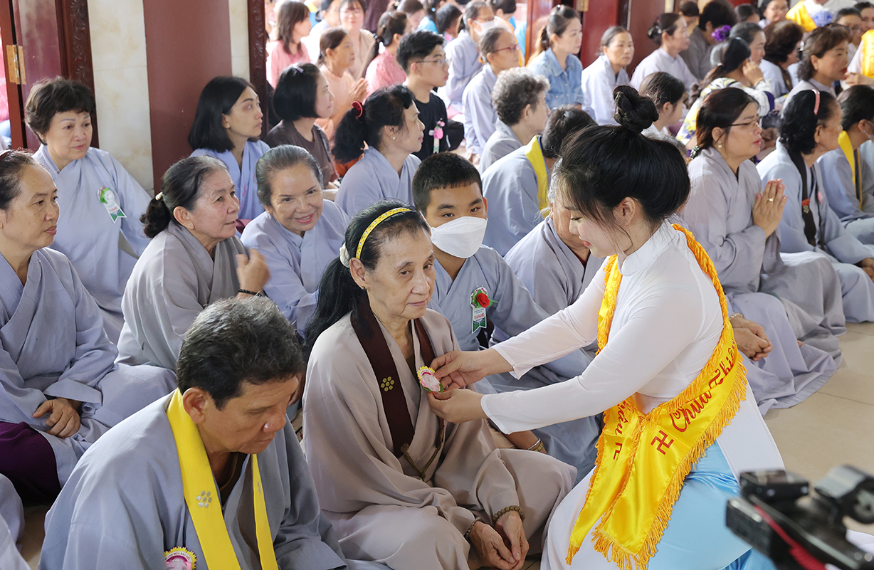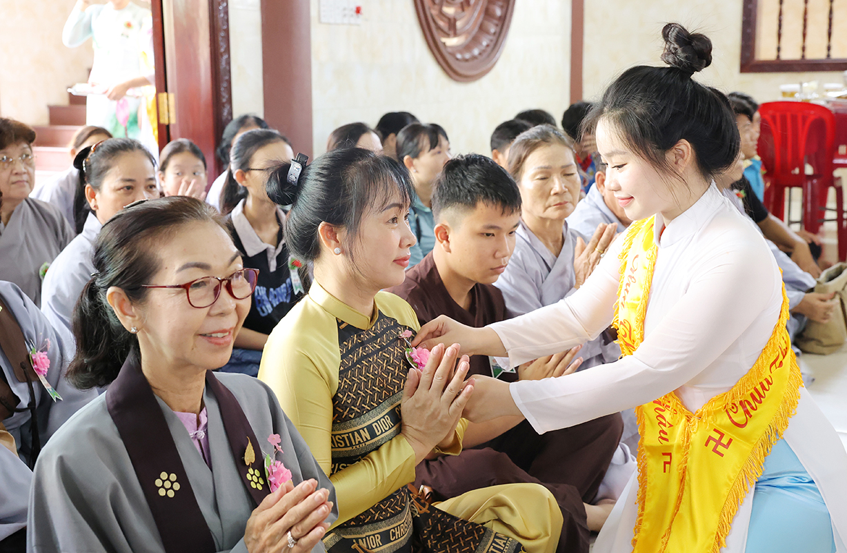 Sau Khoá lễ tụng kinh, Chư Tôn đức đã hướng dẫn đạo tràng thực hiện nghi thức cài hoa hồng tưởng nhớ Tứ trọng ân. Theo ý nghĩa: