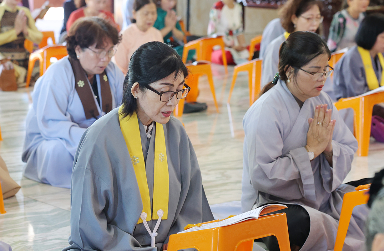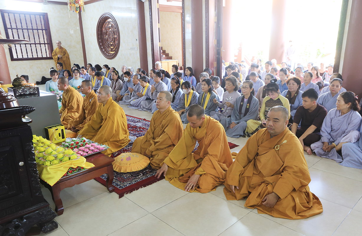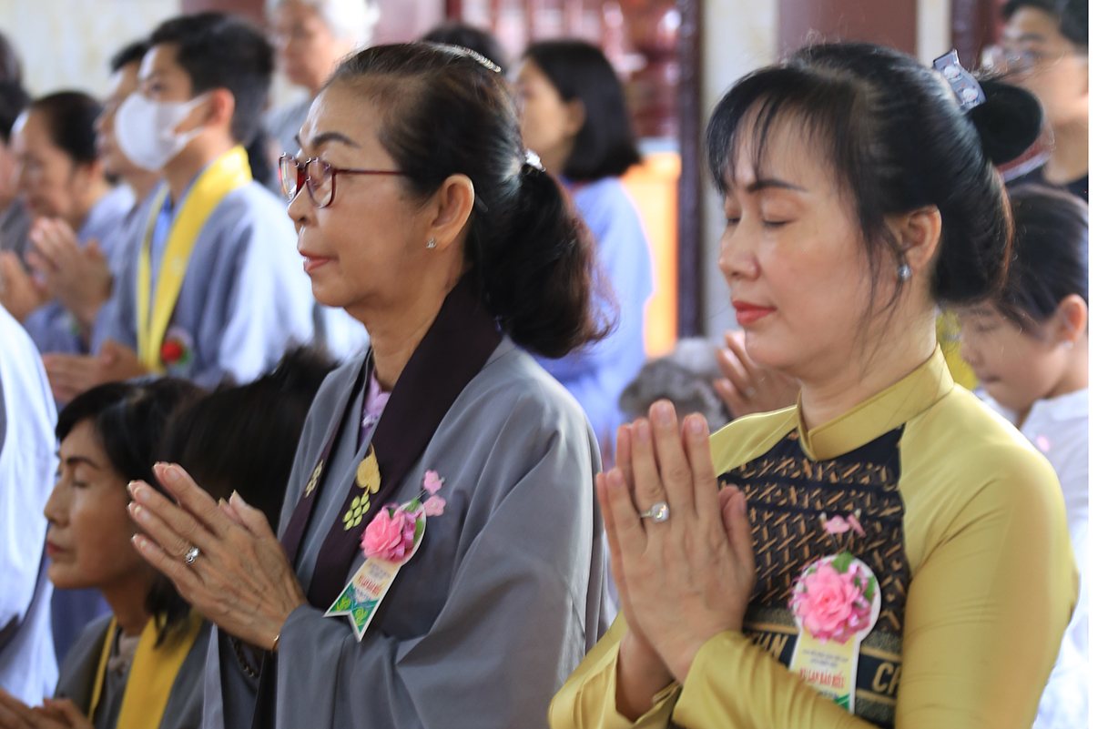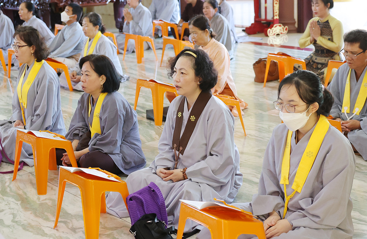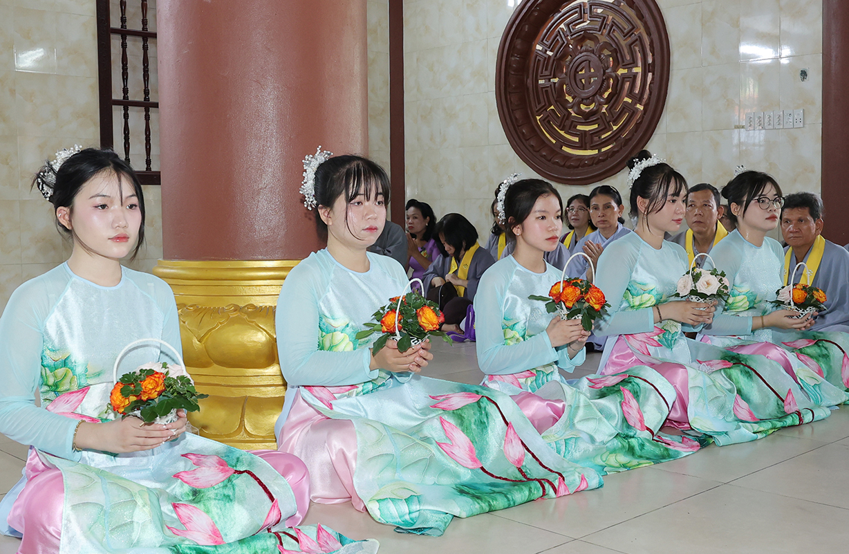 Sau Khoá lễ tụng kinh, Chư Tôn đức đã hướng dẫn đạo tràng thực hiện nghi thức cài hoa hồng tưởng nhớ Tứ trọng ân. Theo ý nghĩa: