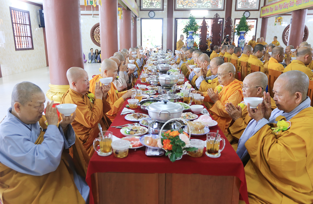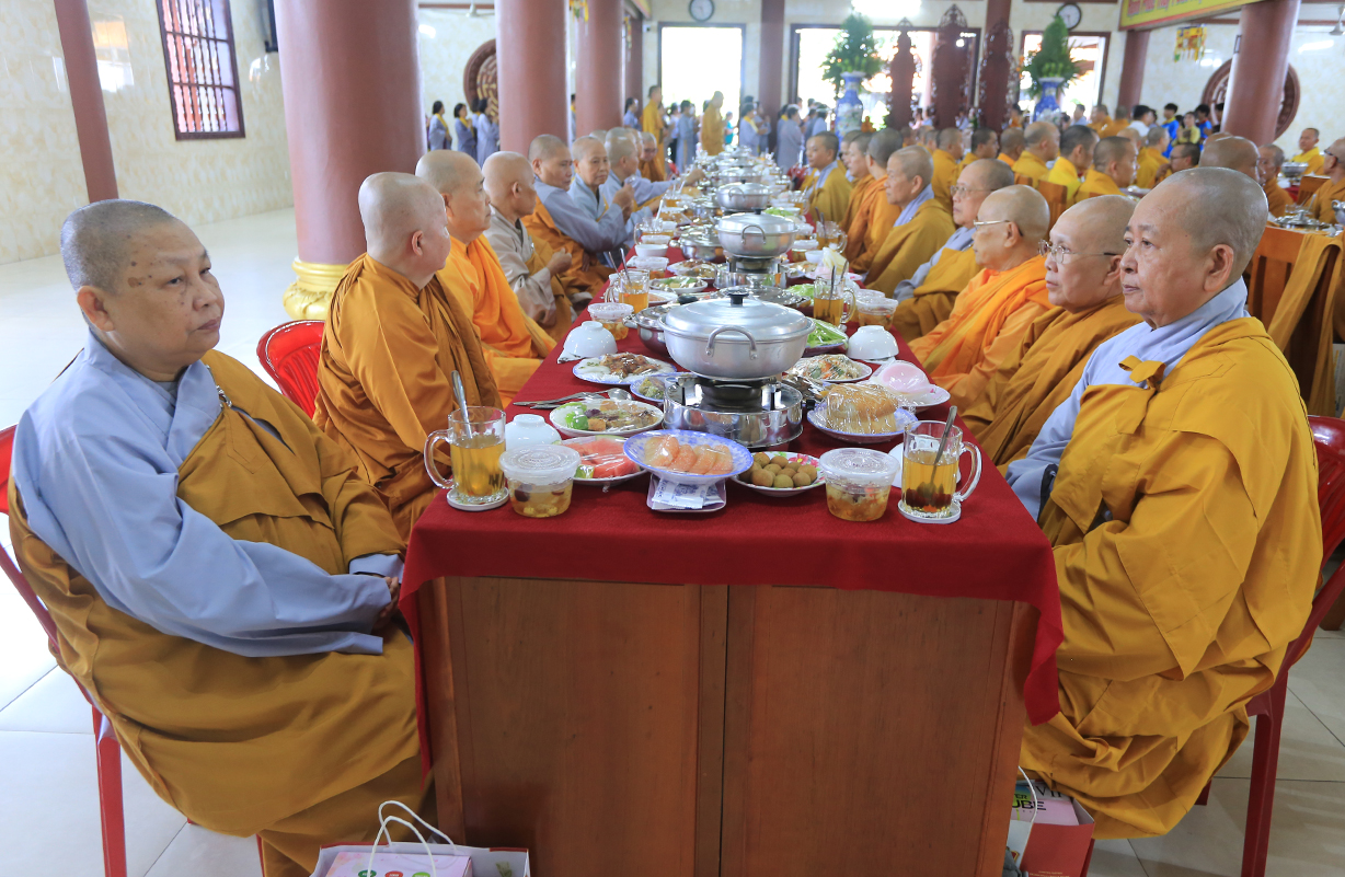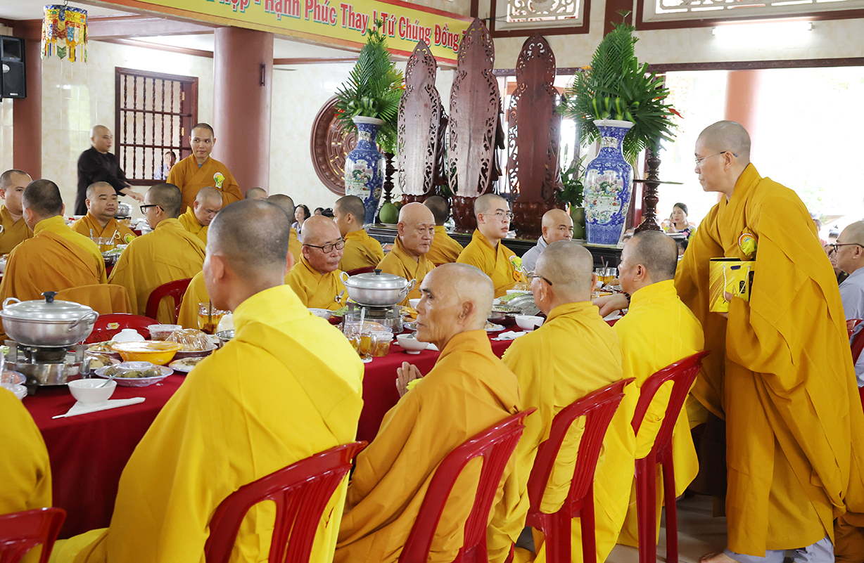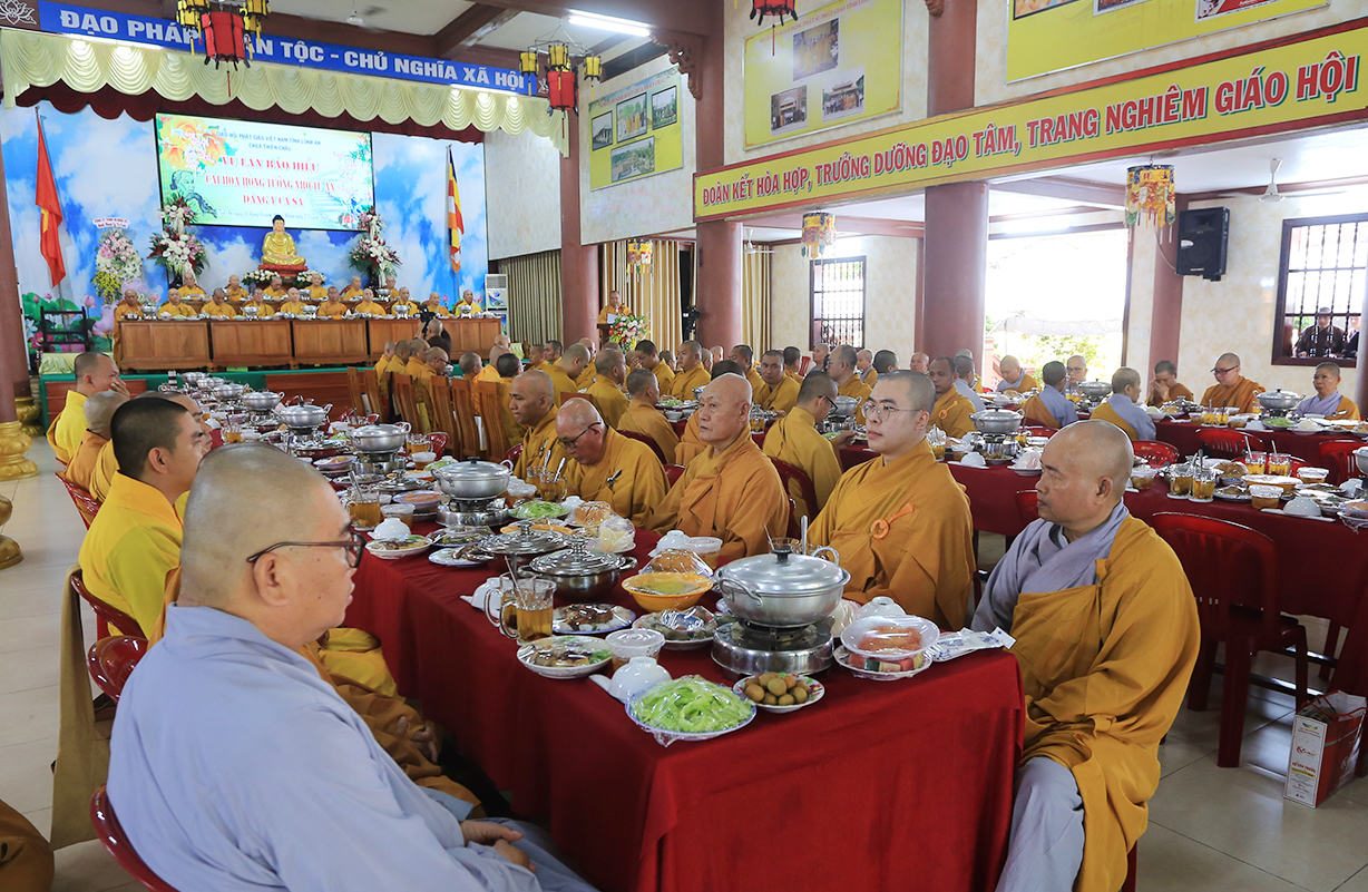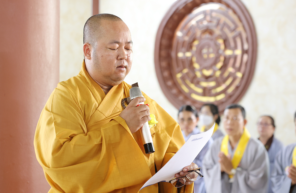 Đãi lao Chư tôn đức Chứng minh, Hòa thượng Thích Minh Thiện có lời đạo từ tại buổi lễ. Hòa thượng nhắc lại truyền thống tốt đẹp của người dân Việt Nam là hiếu thảo, cần cù sáng tạo, anh hùng bất khuất. Đại lễ Vu Lan Báo Hiếu là dịp vô cùng đặc biệt để những người con Phật bày tỏ lòng hiếu kính đến hai đấng sinh thành của mình, đồng thời cũng là dịp phát huy đức tính hiếu hạnh truyền thống của con người Việt Nam. Hoà thượng nhắc về ý nghĩa của 3 tháng an cư của Chư Hành giả an cư. Ngày Vu Lan cũng là ngày Chư Tăng Ni hoàn tất 3 tháng an cư kiết hạ, thúc liễm thân tâm, trau dồi giới định tuệ nhằm tăng trưởng đạo tâm, là nơi nương tựa của hàng Phật tử. Hoà thượng nói về ý nghĩa của Tứ trọng ân, qua đó chỉ dạy Quý Phật tử cần phải chuyên làm việc thiện, tránh xa những việc ác để hướng công đức đến thâm ân của mình. Cuối lời, Hoà thượng có lời tán thán đến lòng hiếu tâm của Quý Phật tử và gửi lời chúc tốt đẹp nhất trong mùa Vu Lan đến toàn thể đạo tràng.