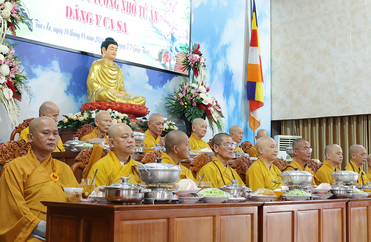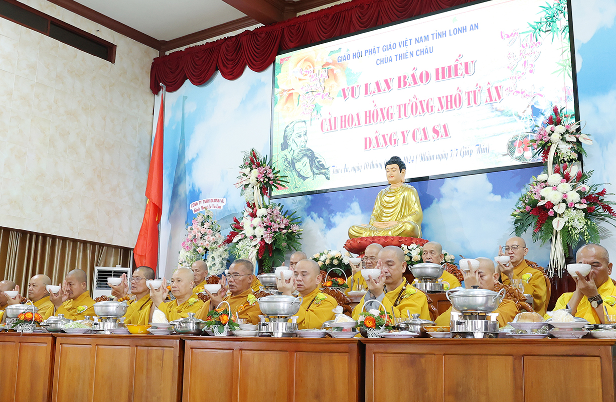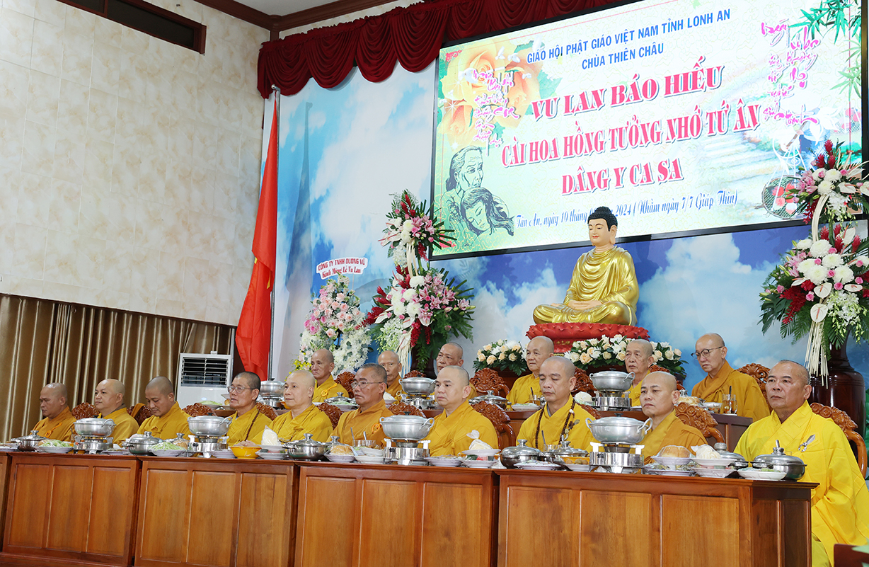 Trong không khí hân hoan của người con Phật trong mùa hiếu hạnh, sáng ngày 10/8/2024 (nhằm ngày 07/7/Giáp Thìn) tại Văn phòng BTS GHPGVN tỉnh Long An –  Trường hạ Chùa Thiên Châu, số 101 Huỳnh Văn Nhứt, P3, TP. Tân An, tỉnh Long An đã trọng thể diễn ra Đại lễ Vu Lan Báo Hiếu PL.2568 – DL.2024.