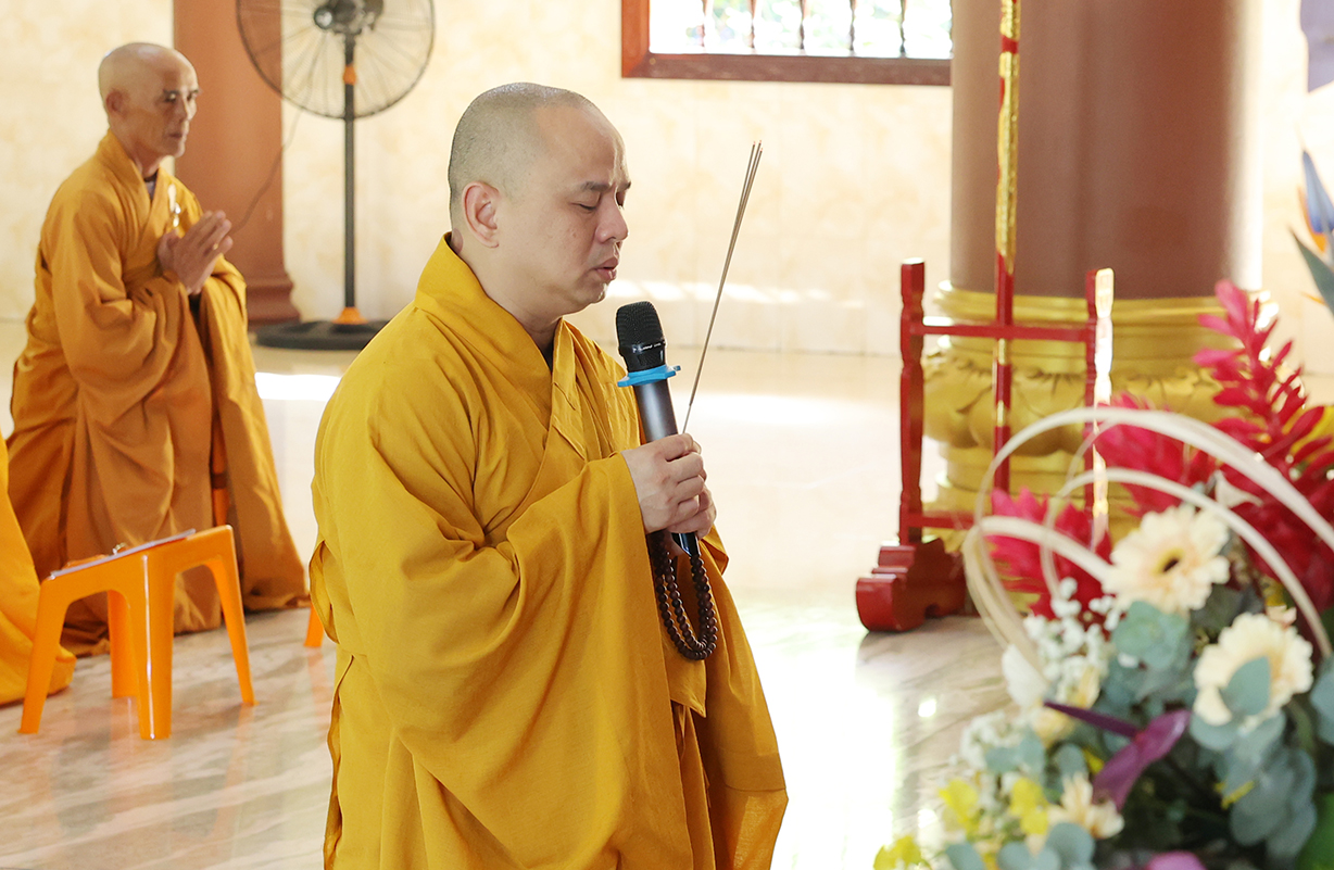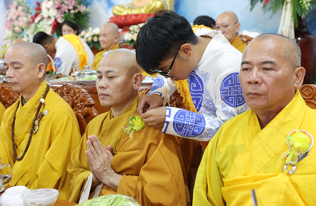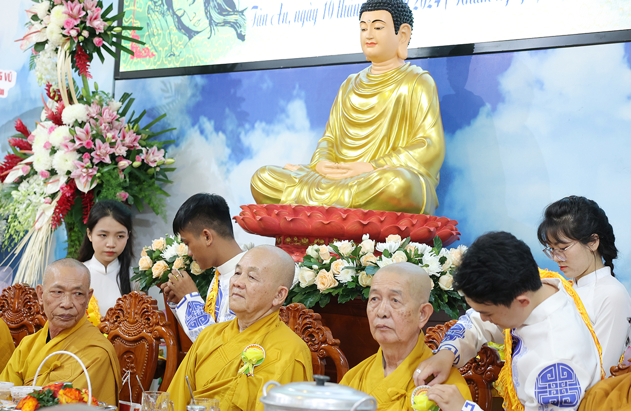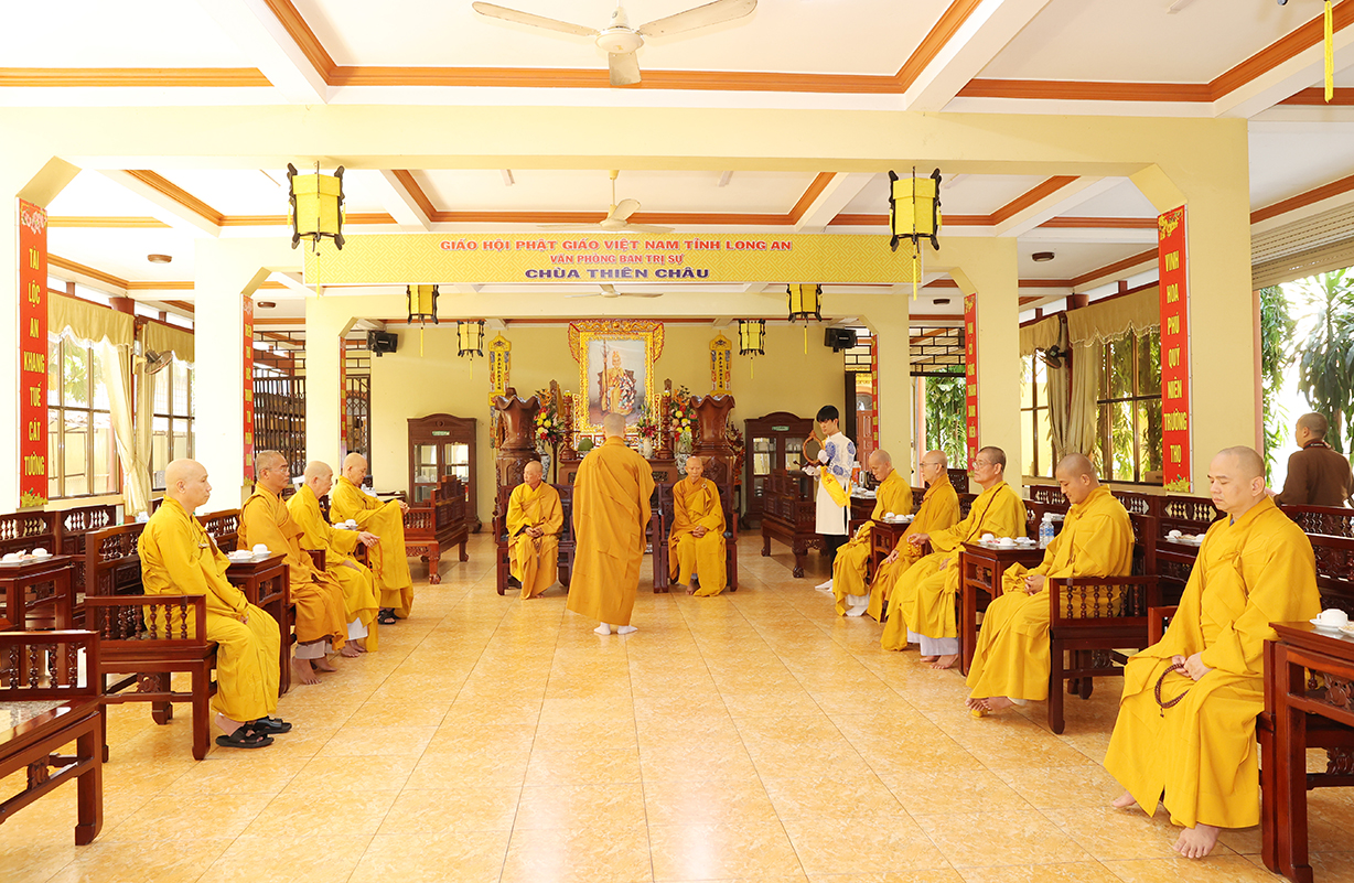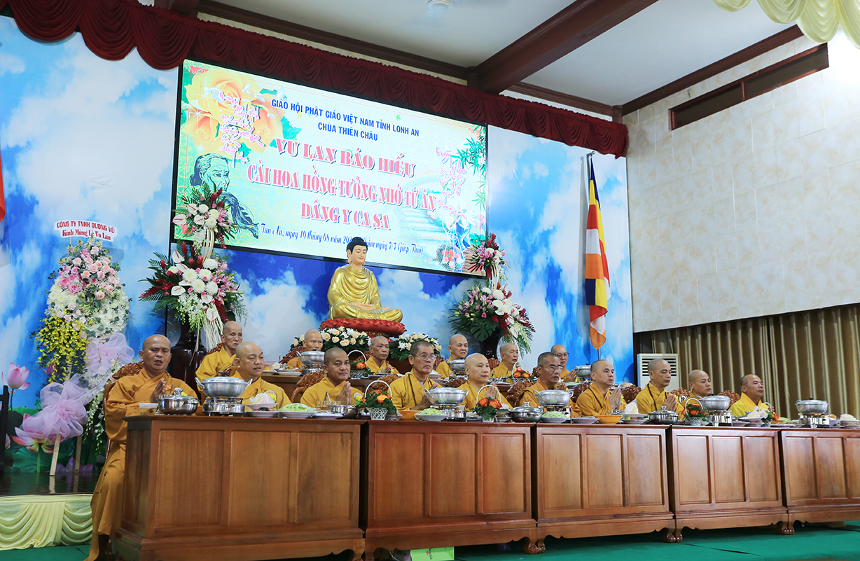 Buổi lễ có sự quang lâm và chứng minh của: Trưởng lão Hòa thượng Thích Thiện Huệ – TV HĐCM TƯ, Chứng minh BTS GHPGVN tỉnh Long An; HT. Thích Huệ Hồng, HT. Thích Quảng Ý, HT. Thích Thiện Tài – Đồng Chứng minh BTS GHPGVN tỉnh Long An; HT. Thích Minh Thiện – UV HĐTS, Phó Trưởng ban Hoằng pháp TƯ, Trưởng BTS GHPGVN tỉnh Long An, Trụ trì Chùa Thiên Châu; cùng Chư Tôn đức Tăng Ni thường trực BTS Phật giáo tỉnh, các huyện thị thành trở về tham dự.