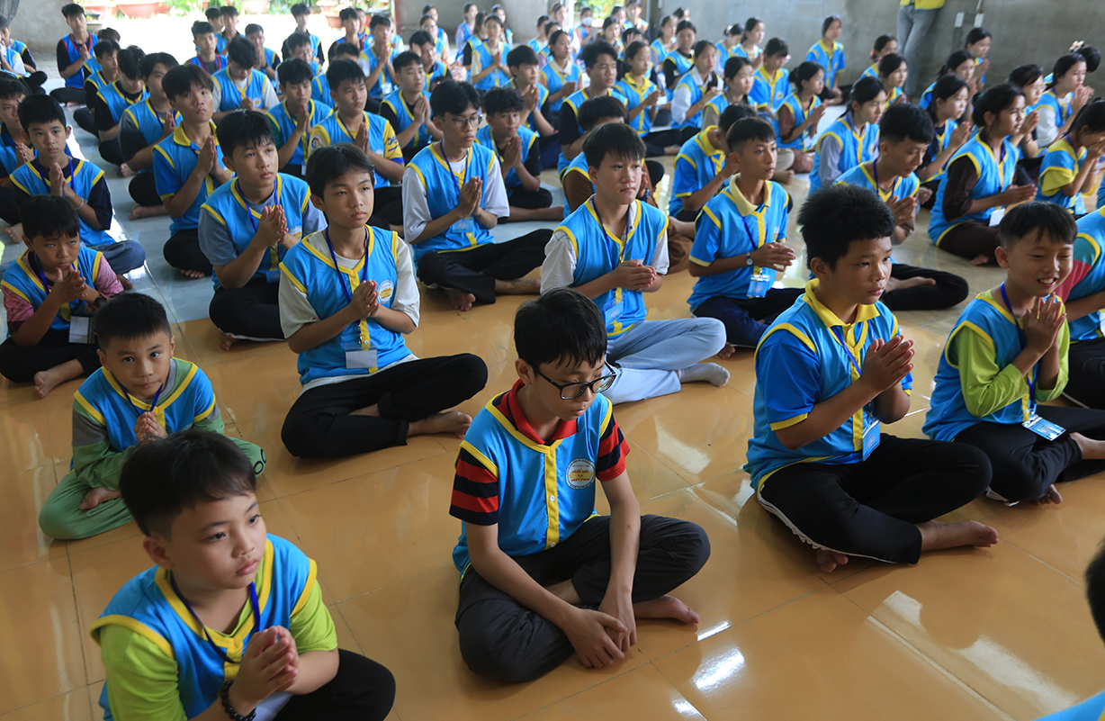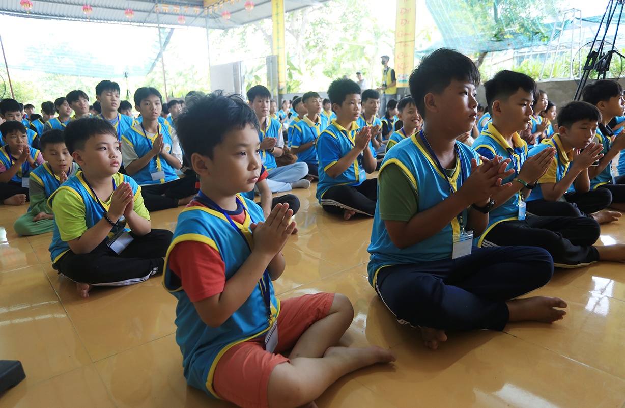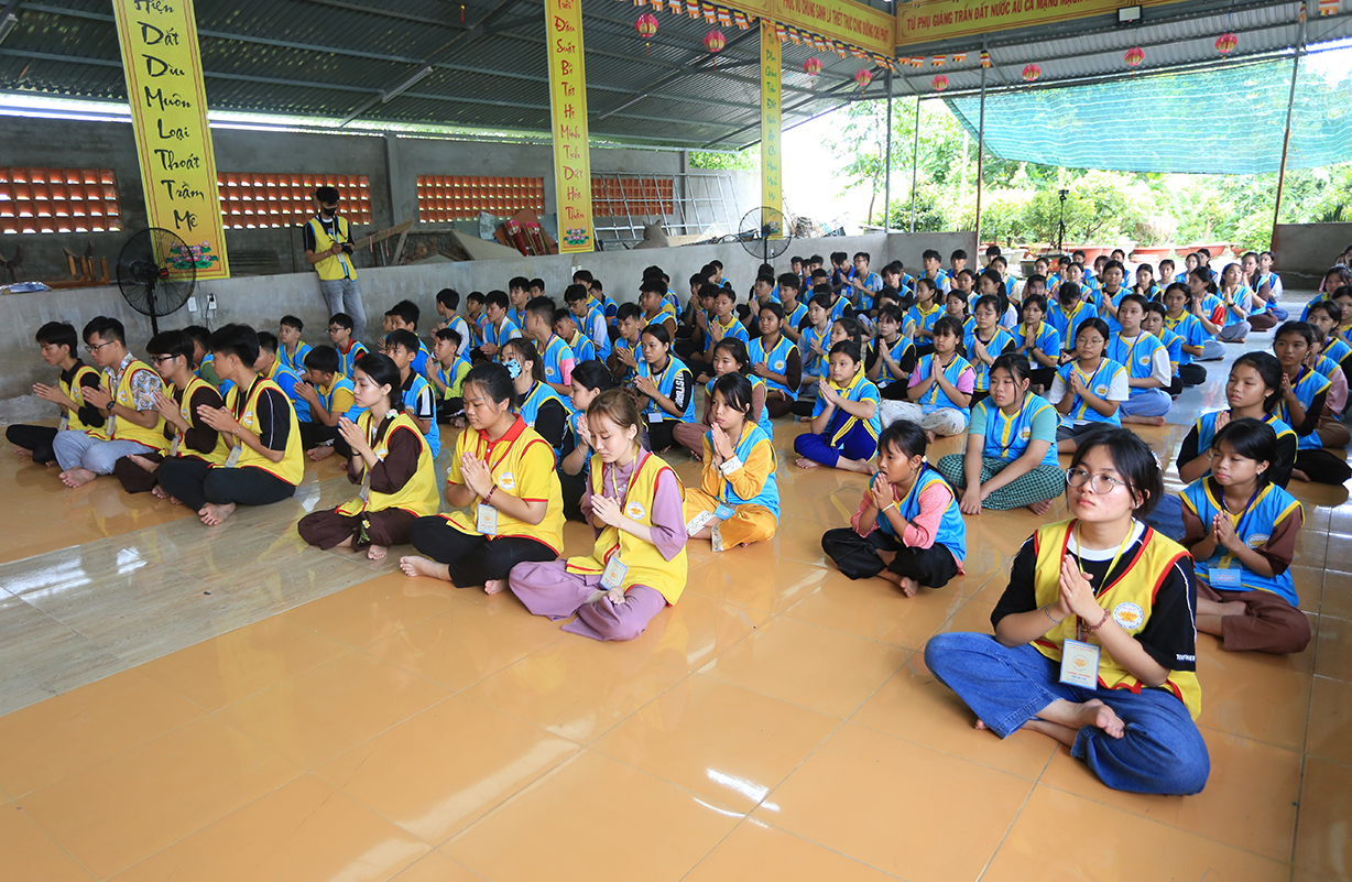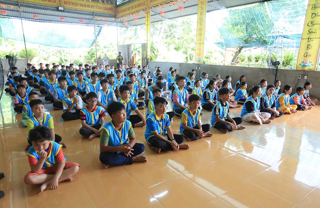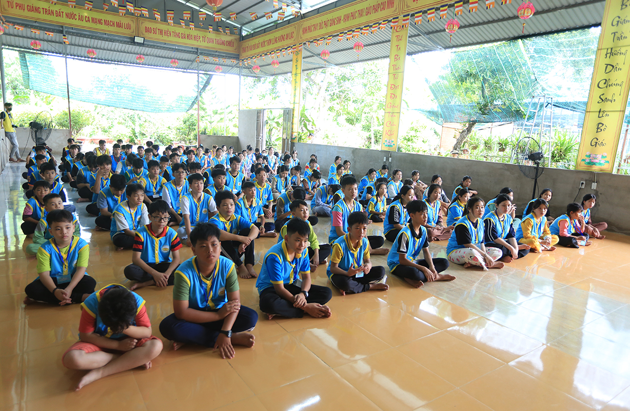 Phát biểu Khai mạc buổi lễ, Thượng tọa Thích Lệ Tấn – Trưởng BTS GHPGVN huyện, Trưởng Ban Tổ chức Khóa tu đã nêu lên ý nghĩa của việc tổ chức khóa tu mùa hè, nhằm hướng thanh thiếu niên hướng tới lối sống tích cực trong cộng đồng, trước làn sóng phát triển công nghệ hiện đại, sự suy hóa về đạo đức và ảnh hưởng của công nghệ thông tin mạng, cần có định hướng nhân cách đạo đức, Phật hóa đời sống của con người để xây dựng tương lai tốt đẹp cho mọi người và hướng con người hướng đến nhận thức mới, lối sống mới trong thời đạo mới.
