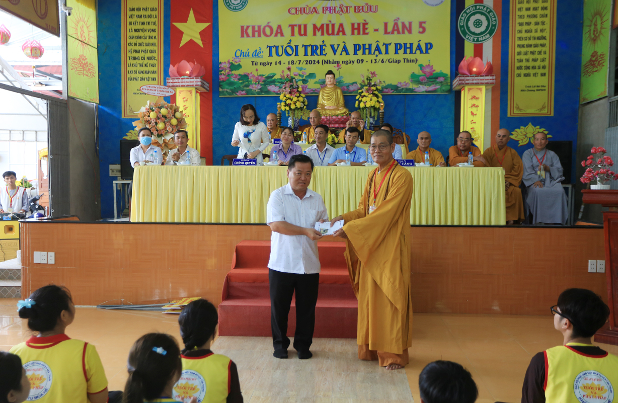 Đại diện chính quyền tham dự, ông Võ Thanh Hải – Phó Chủ tịch MTTQVN huyện đã có lời phát biểu, ông hoan hỷ với việc Phật giáo huyện nhà tổ chức khóa tu mùa hè nhằm hướng giới trẻ đến với lối sống lành mạnh tốt đẹp, hạn chế việc sử dụng lạm dụng mạng xã hội, nâng cao đời sống tinh thần đạo đức, nổ lực cố gắng học tập tốt để tương lai trở thành nhân tố lành mạnh xây dựng xã hội phát triển.