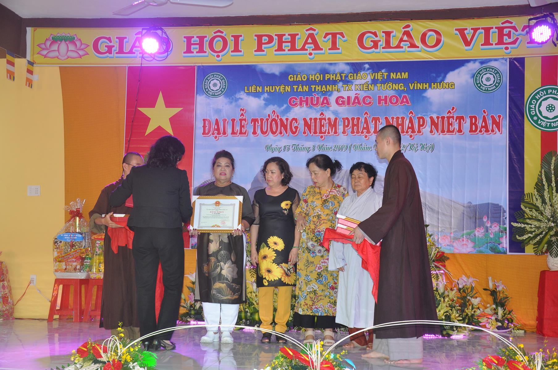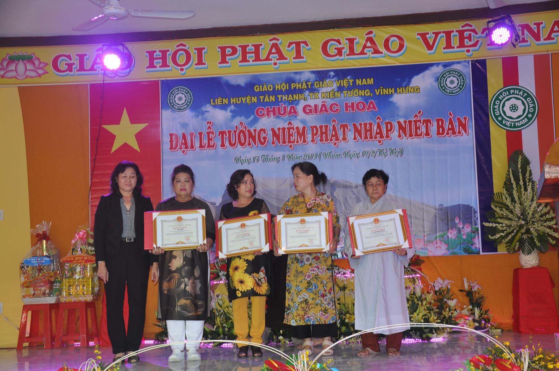 Trong buổi lễ đầy ý nghĩa này Ủy Ban Nhân Dân tỉnh Long An đã trao tặng nhiều Bằng khen nhằm khen tặng khích lệ động viên tinh thần đến quý Phật tử đã đóng góp cho việc xây dựng các cây cầu- Lộ nông thôn trong năm qua.