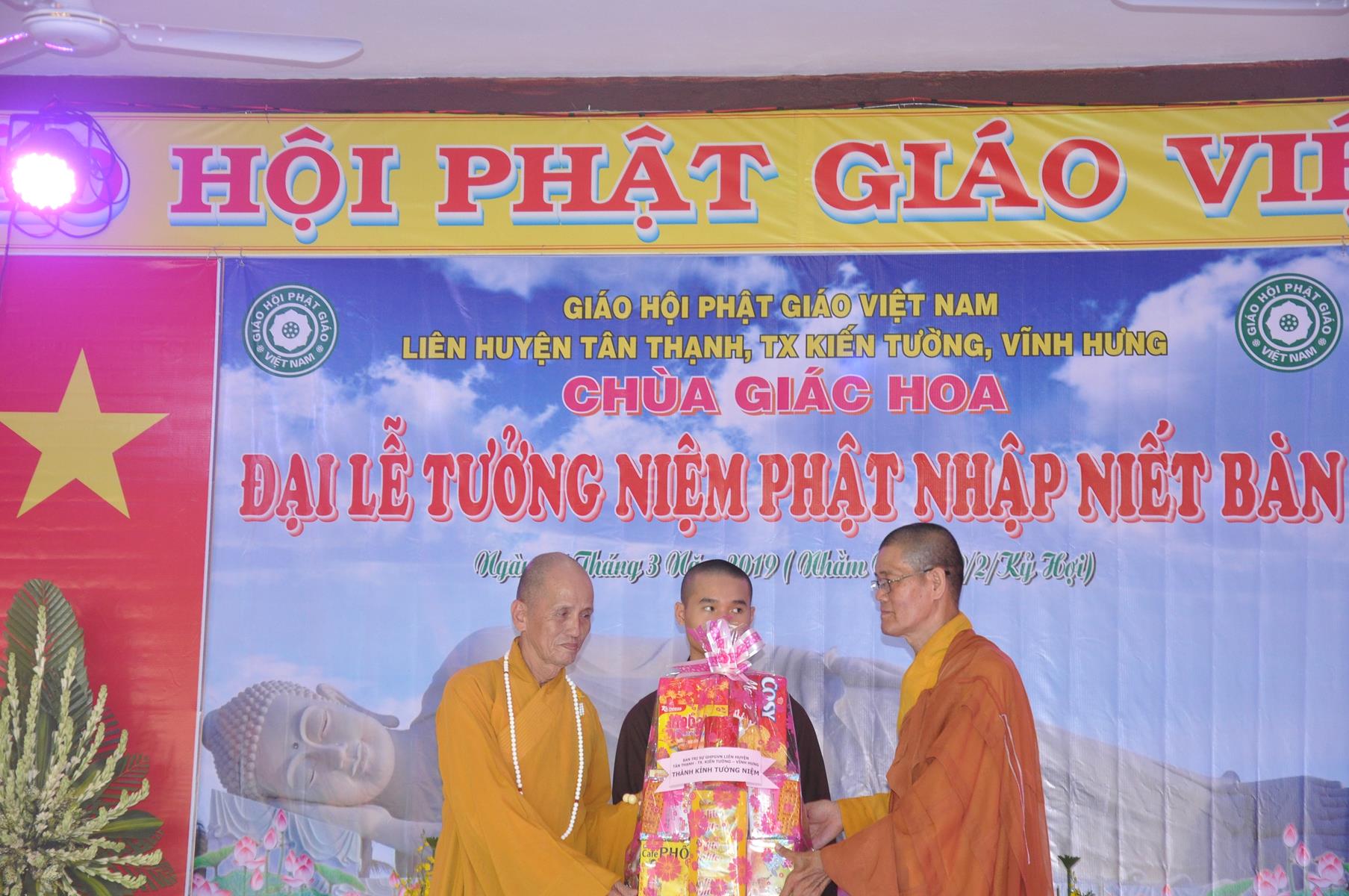 Kết thúc buổi lễ Thượng Tọa Trưởng ban tổ chức thay mặt chư Tôn đức gởi lời tri ân sâu sắc đến Hòa thượng Thích Minh Thiện Ủy Viên HĐTS, Phó trưởng ban hoằng pháp Trung ương GHPGVN, Trưởng ban trị sự GHPGVN tỉnh Long An (đã thăm viếng, gởi quà chúc mừng Đại lễ ngày hôm trước) cùng chư tôn đức Ban Trị sự GHPGVN tỉnh Long An, Chư tôn đức Ban trị sự GHPGVN liên huyện Tân Thạnh, TX.Kiến Tường, Vĩnh Hưng, chư tôn đức Tăng Ni cùng các cấp lãnh đạo chính quyền và đồng bào Phật tử đã về tham dự buổi lễ trọng đại này.