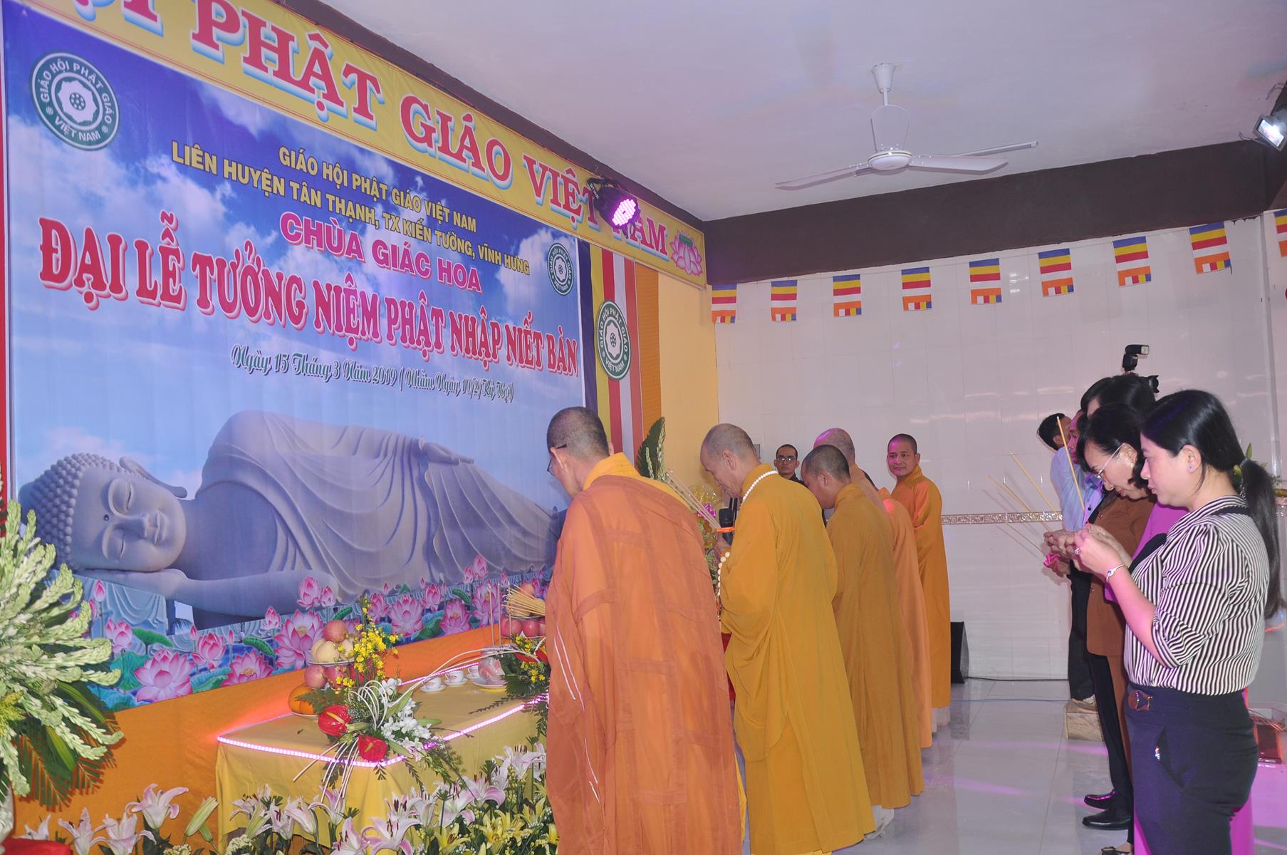 Chứng minh và tham dự đại lễ, gồm có: HT Thích Quảng Tường: Chứng minh Ban Trị sự GHPGVN tỉnh Tiền Giang; HT Thích Quảng Ý: Trưởng ban Trị sự GHPGVN liên huyện Tân Thạnh, Tx Kiến Tường, Vĩnh Hưng; TT Thích Lệ Tấn: Phó Trưởng ban Thường trực BTS GHPGVN liên huyện Tân Thạnh, Tx Kiến Tường, Vĩnh Hưng, Trụ trì Chùa Giác Hoa, Trưởng ban Tổ chức; ĐĐ Thích Lệ Duyên: Chánh Thư ký kiêm Trưởng ban Phật giáo Quốc tế GHPGVN tỉnh Long An; ĐĐ Thích Lệ Thông: Chánh Thư ký BTS GHPGVN liên huyện TT, KT, VH; NT TN Như Hương: Trưởng ban Trị sự GHPGVN huyện Thạnh Hóa; NS TN Nguyên Trí: Phó Trưởng ban Trị sự GHPGVN liên huyện TT, KT, VH; cùng Chư Tôn đức Tăng Ni trong và ngoài huyện Tân Thạnh tham dự.
