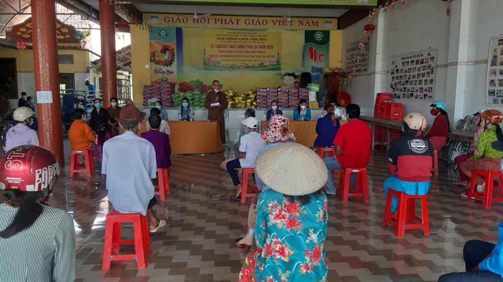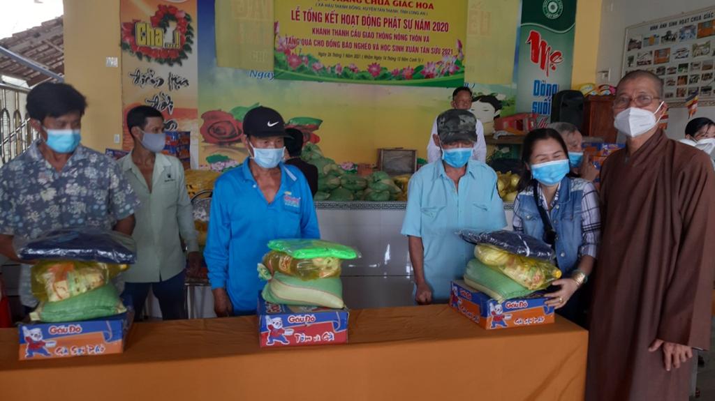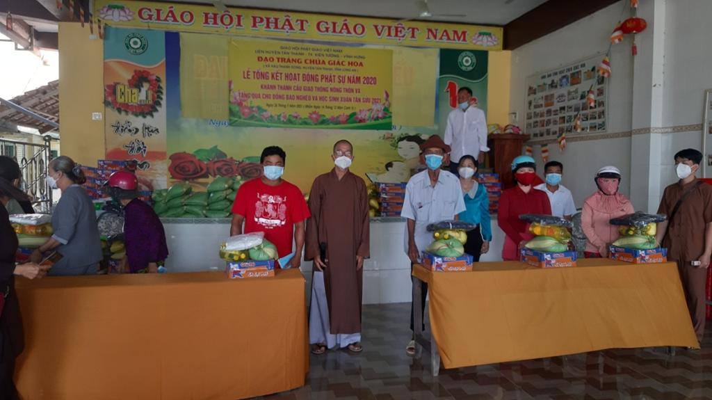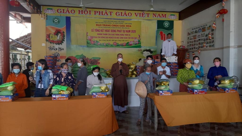 Sáng ngày 13 tháng 10 năm 2021 (nhằm ngày 08/9/Tân Sửu), Thượng tọa Thích Lệ Tấn, Phó Trưởng ban Từ thiện Xã hội GHPGVN tỉnh Long An, Trưởng ban Trị sự GHPGVN huyện Tân Thạnh, Trụ trì chùa Giác Hoa trao đã trao tặng 50 phần quà cho học sinh nghèo hiếu học tại Trường Trung học cơ sở Hậu Thạnh Đông và 50 phần quà cho đồng bào gặp hoàn cảnh khó khăn vì ảnh hưởng của đại dịch Covid-19.