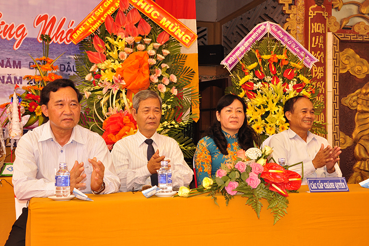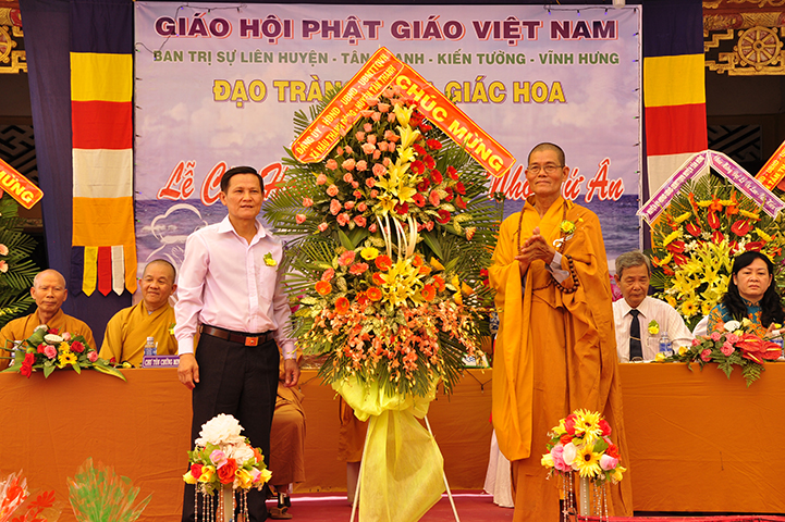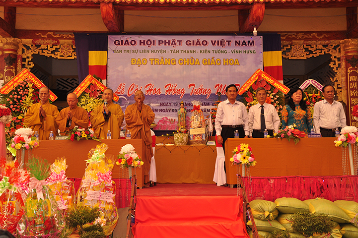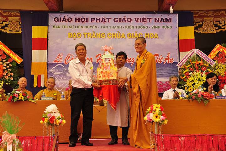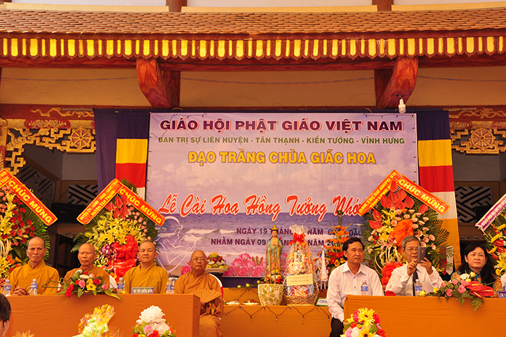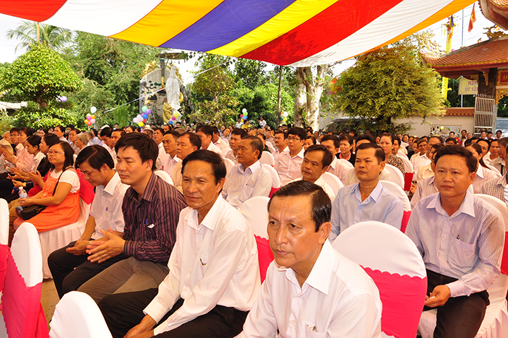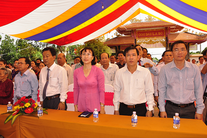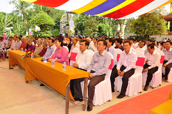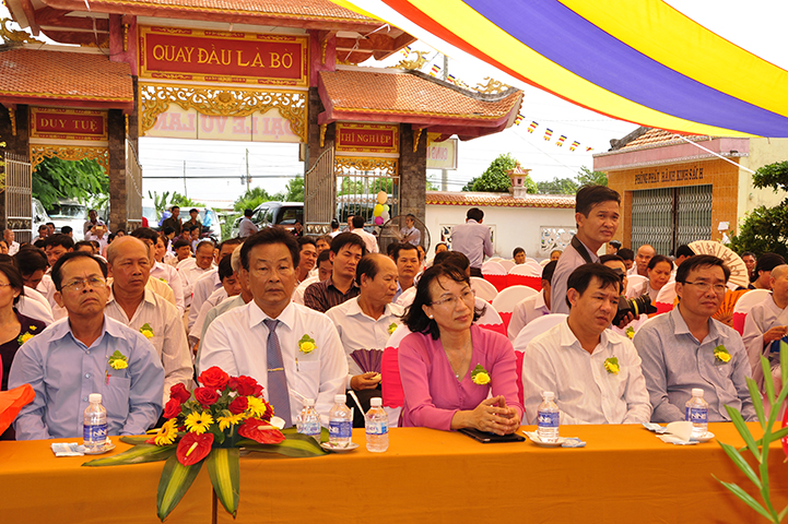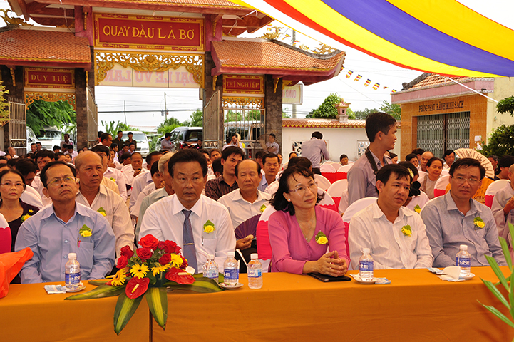 Về phía đại diện lãnh đạo chánh quyền có sự hiện diện của: Bà mẹ Việt Nam Anh hùng: Võ Thị Út và Đặng Thị Đào; Ông Phạm Thanh Phong: Nguyên Bí thư tỉnh ủy tỉnh Long An, Phó Chủ tịch Hội Khuyến học Việt Nam, Chủ tịch Hội khuyến học tỉnh; Bà Phạm Ngọc Tiệp: Phó Chủ tịch UBMTTQVN tỉnh; ông Huỳnh Văn Thừng: Trưởng ban Tôn giáo tỉnh; ông Nguyễn Xuân Thắm: Phó Bí thư Thường trực huyện ủy huyện Tân Thạnh; bà Trần Thị Huê: Phó Chủ tịch UBND huyện Tân Thạnh; ông Nguyễn Văn Chung: Chủ tịch UBMTTQVN huyện Tân Thạnh; ông Huỳnh Thanh Hiền: Phó Chủ tịch UBND huyện Tân Hưng; ông Phùng Văn Chiều: Chủ tịch UBMTQVN huyện Thạnh Hóa; cùng quý đại diện lãnh đạo chánh quyền 20 xã trong và ngoài huyện Tân Thạnh, đông đảo đồng bào Phật tử đồng tham dự.