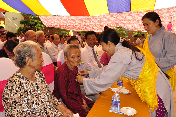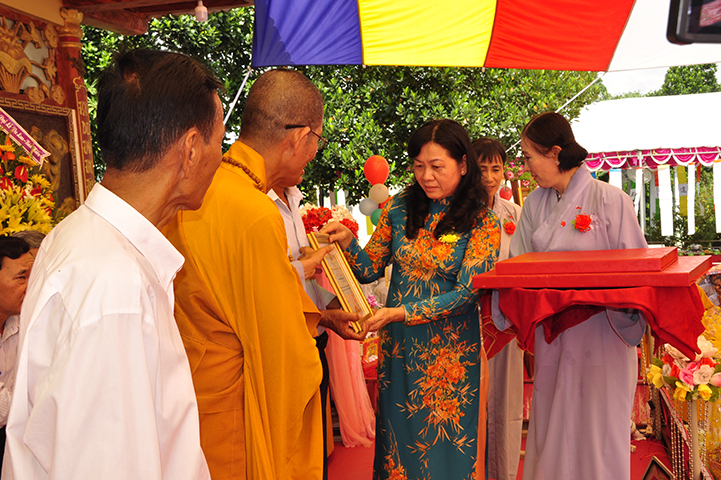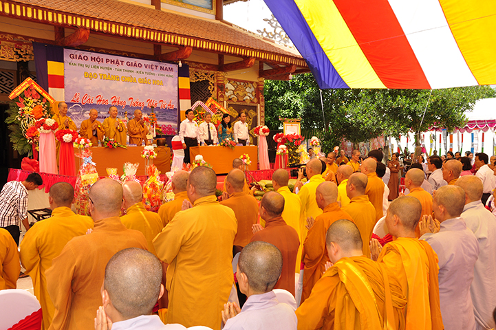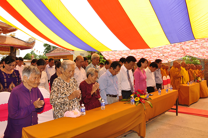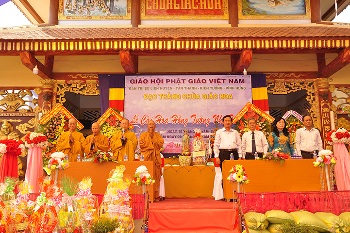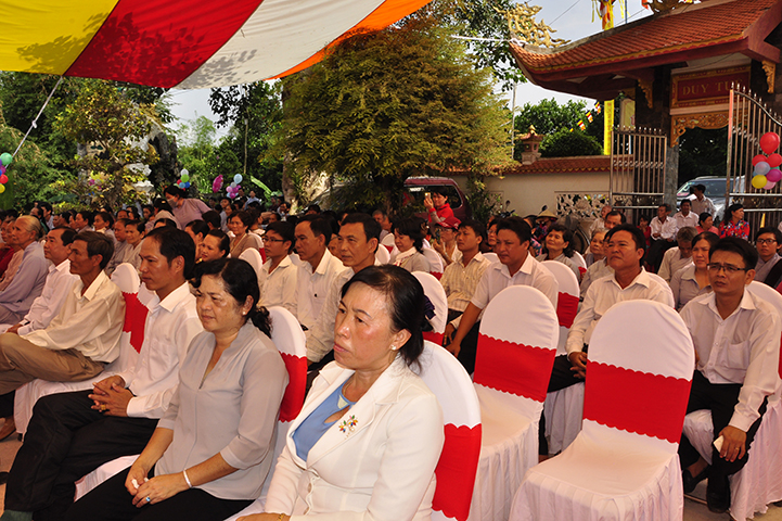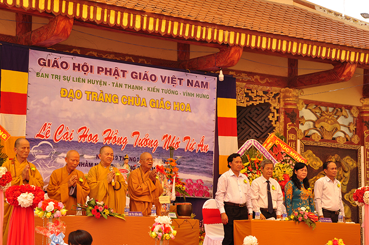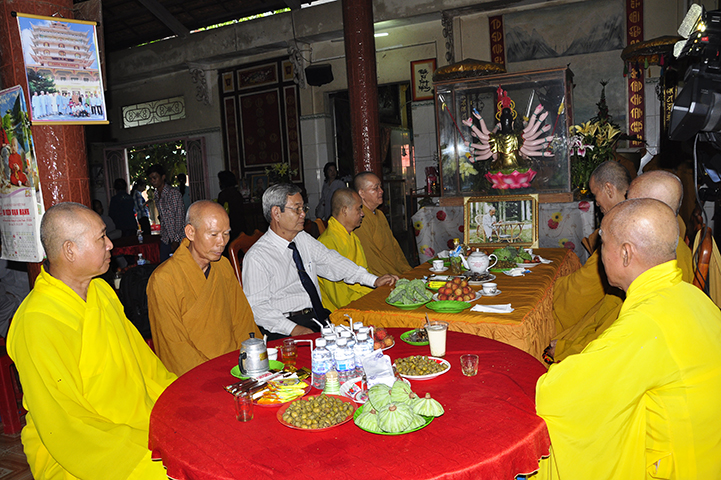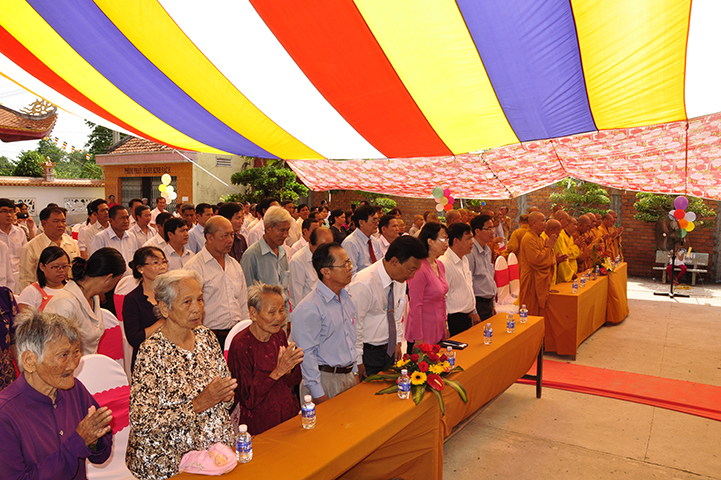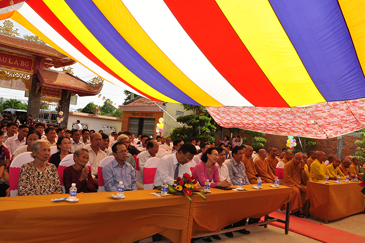Về phía đại diện lãnh đạo chánh quyền có sự hiện diện của: Bà mẹ Việt Nam Anh hùng: Võ Thị Út và Đặng Thị Đào; Ông Phạm Thanh Phong: Nguyên Bí thư tỉnh ủy tỉnh Long An, Phó Chủ tịch Hội Khuyến học Việt Nam, Chủ tịch Hội khuyến học tỉnh; Bà Phạm Ngọc Tiệp: Phó Chủ tịch UBMTTQVN tỉnh; ông Huỳnh Văn Thừng: Trưởng ban Tôn giáo tỉnh; ông Nguyễn Xuân Thắm: Phó Bí thư Thường trực huyện ủy huyện Tân Thạnh; bà Trần Thị Huê: Phó Chủ tịch UBND huyện Tân Thạnh; ông Nguyễn Văn Chung: Chủ tịch UBMTTQVN huyện Tân Thạnh; ông Huỳnh Thanh Hiền: Phó Chủ tịch UBND huyện Tân Hưng; ông Phùng Văn Chiều: Chủ tịch UBMTQVN huyện Thạnh Hóa; cùng quý đại diện lãnh đạo chánh quyền 20 xã trong và ngoài huyện Tân Thạnh, đông đảo đồng bào Phật tử đồng tham dự.