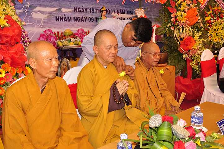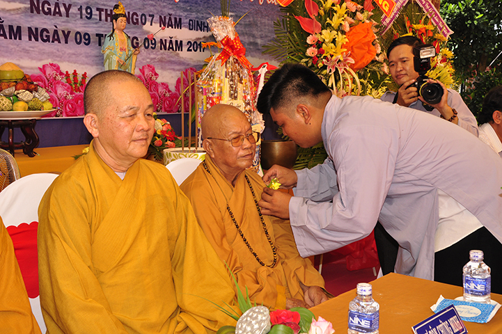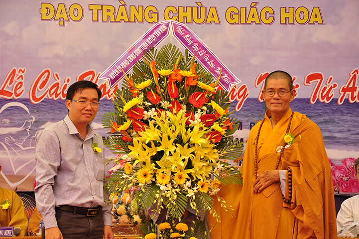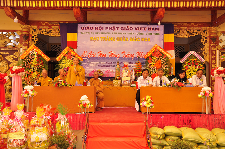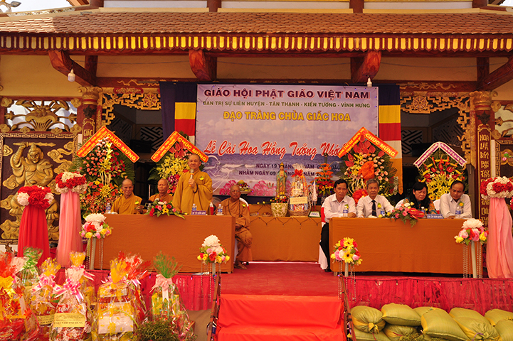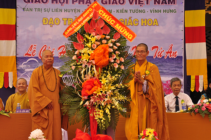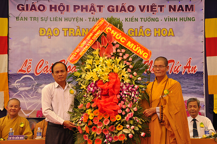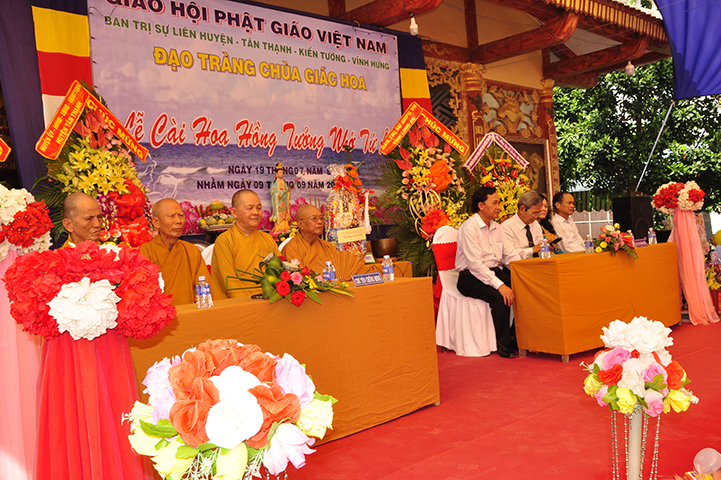 Chứng minh và tham dự buổi lễ, gồm có: HT Thích Minh Thiện: Ủy viên HĐTS, Phó Trưởng ban Hoằng pháp TƯ, Trưởng ban Trị sự GHPGVN tỉnh Long An; HT Thích Thiện Tâm: Phó Trưởng ban kiêm Trưởng ban Kiểm soát GHPGVN tỉnh; HT Thích Huệ Hồng: Phó Trưởng ban Trị sự GHPGVN tỉnh; HT Thích Quảng Ý: Trưởng ban Trị sự GHPGVN liên huyện Tân Thạnh, Thị xã Kiến Tường, Vĩnh Hưng; TT Thích Thiện Xuân: Trưởng ban Hoằng pháp GHPGVN tỉnh Long An; TT Thích Lệ Tấn: Phó Trưởng ban Thường trực Ban Trị sự GHPGVN liên huyện Tân Thạnh, Tx Kiến Tường, Vĩnh Hưng, trụ trì chùa Giác Hoa; ĐĐ Thích Đức Hoàng: Ủy viên TT Ban Trị sự GHPGVN tỉnh Long An, cùng Chư Tôn đức Tăng Ni.