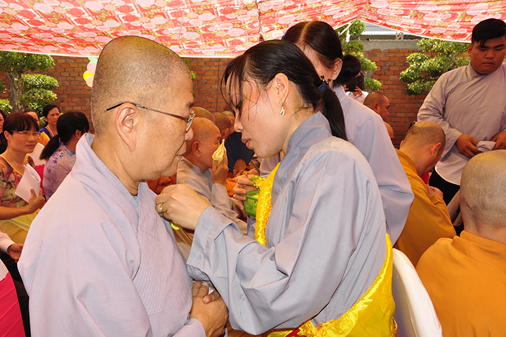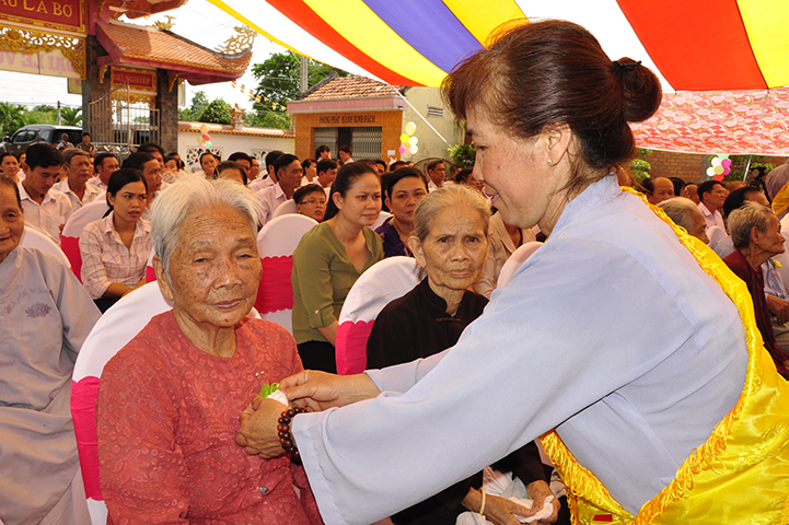 Nhân dịp này, hòa thượng ghi nhận công đức của quý bà mẹ Việt Nam anh hùng bởi quý bà mẹ có những người chồng, những người con đã hy sinh xương máu để bảo vệ độc lập cho dân tộc. Hôm nay tại buổi lễ này Thượng tọa Thích Lệ Tấn đã thay mặt đồng bào Phật tử và tất cả mọi người dâng lên những phần quà cho các bà mẹ Việt nam anh hùng cũng để thể hiện tinh thần tri ân và báo ân.
