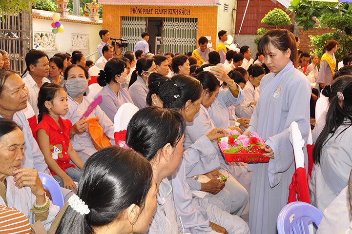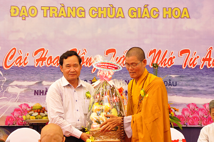 Ban tổ chức cũng nhận được nhiều lẵng hoa, phần quà của Chư Tôn đức Tăng Ni, quý Đại biểu chánh quyền và quý doanh nghiệp, Phật tử chúc mừng.