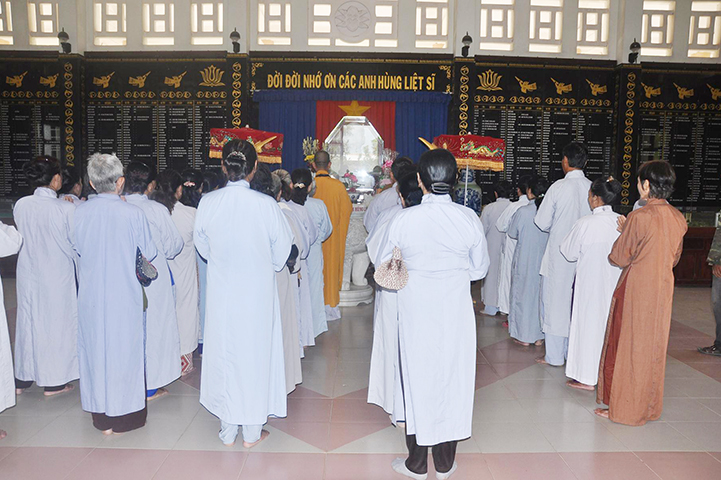 Được biết, vào ngày 18 tháng 7 năm Đinh Dậu, Thượng tọa Trụ trì cùng Chư tôn đức đến dâng hương tưởng niệm tại nghĩa trang liệt sĩ liên huyện Tân Thạnh, Thạnh Hóa, bia tưởng niệm tại các xã, đồng thời thỉnh anh linh anh hùng chiến sĩ về chùa Giác Hoa để Ban Kinh sư chẩn tế cầu siêu; và tổ chức văn nghệ cúng dường Đại lễ Vu lan-báo hiếu.
