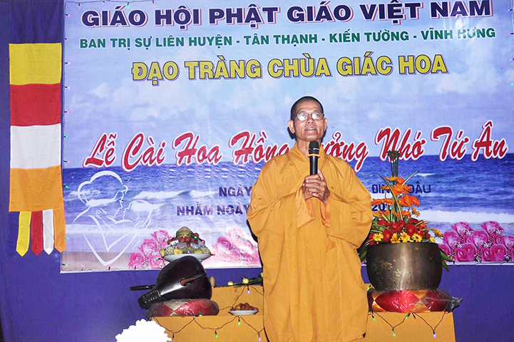 Đạo tràng vinh dự được lắng nghe lời đạo từ của HT Thích Minh Thiện: Ủy viên HĐTS, Phó Trưởng ban Hoằng pháp TƯ, Trưởng ban Trị sự GHPGVN tỉnh Long An. Hòa thượng khẳng định Vu Lan-Báo hiếu ngày nay không còn là lễ hội riêng của Phật giáo mà đã trở thành lễ truyền thống văn hoá tốt đẹp của dân tộc Việt Nam, là mùa của sự tri ân và báo ân; mùa của sự kết nối tình người. Mùa vu lan báo hiếu cũng là dịp người con Phật đáp đền tứ trọng ân: ân Tam bảo sư trưởng, ân cha mẹ, ân tổ quốc và ân vạn loại chúng sanh.