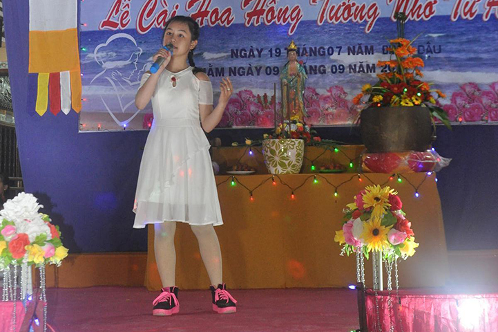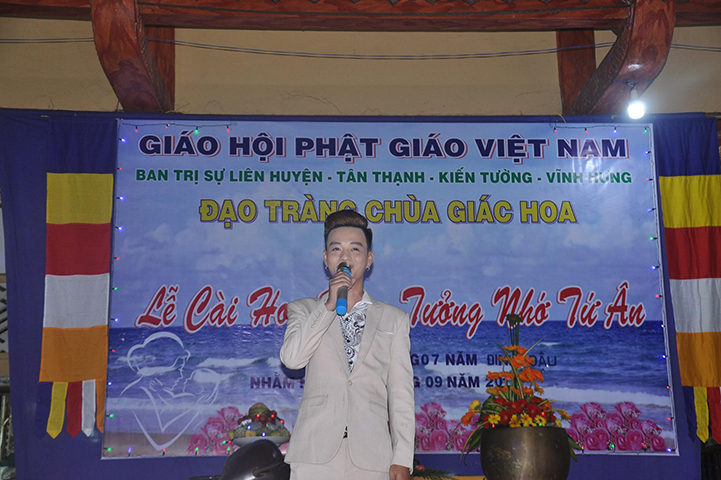 Sau nghi thức niệm Phật cầu gia bị, phút tưởng niệm, tuyên bố lý do và giới thiệu thành phần tham dự, nghệ sĩ Tuấn Anh cúng dường lên Tam bảo nhạc phẩm tựa đề “Vu lan nhớ mẹ”.