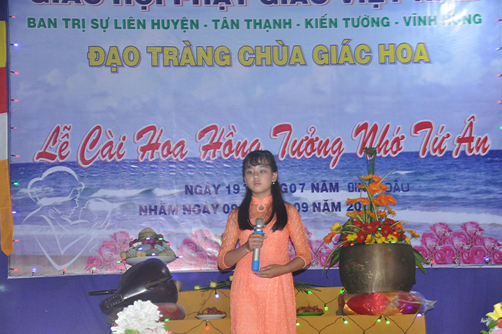 Sáng nay, vào lúc 8 giờ 30, ngày 09 tháng 9 năm 2017 (nhằm 19/7/Đinh Dậu), chùa Giác Hoa xã Hậu Thạnh Đông, huyện Tân Thạnh, tỉnh Long An tổ chức Đại lễ Vu lan-Báo hiếu, cài hoa hồng tưởng nhớ tứ ân.