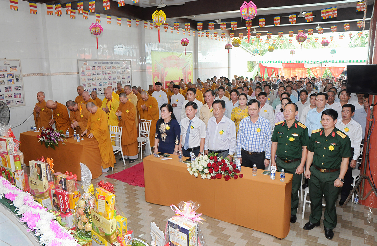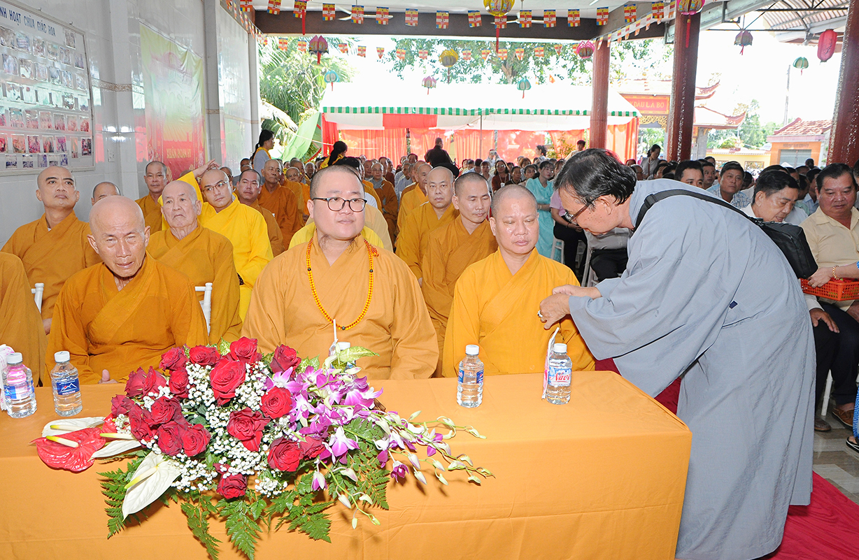 Quang lâm chứng dự buổi lễ có sự hiện diện của: HT. Thích Huệ Hồng, HT. Thích Quảng Ý – đồng Chứng minh BTS GHPGVN tỉnh Long An; HT. Thích Minh Thiện – UV HĐTS, Phó Trưởng Ban Hoằng pháp TƯ, Trưởng BTS GHPGVN tỉnh Long An; TT. Thích Minh Thọ – UV HĐTS, Phó Trưởng BTS GHPGVN tỉnh Long An; TT. Thích Đức Hoàng – Phó Trưởng BTS GHPGVN tỉnh Long An; TT. Thích Lệ Tấn – UVTT BTS GHPGVN tỉnh, Trưởng BTS GHPGVN huyện Tân Thạnh, Trưởng BTC Đại lễ; ĐĐ. Thích Lệ Duyên – Phó Trưởng Ban kiêm Chánh Thư ký BTS GHPGVN tỉnh Long An, Trưởng BTS GHPGVN huyện Đức Hoà; Ni sư TN. Như Hương – Chứng minh Phân ban Ni giới GHPGVN huyện Tân Thạnh; cùng Chư Tôn đức thường BTS GHPGVN tỉnh, các huyện thị thành đồng về tham dự.