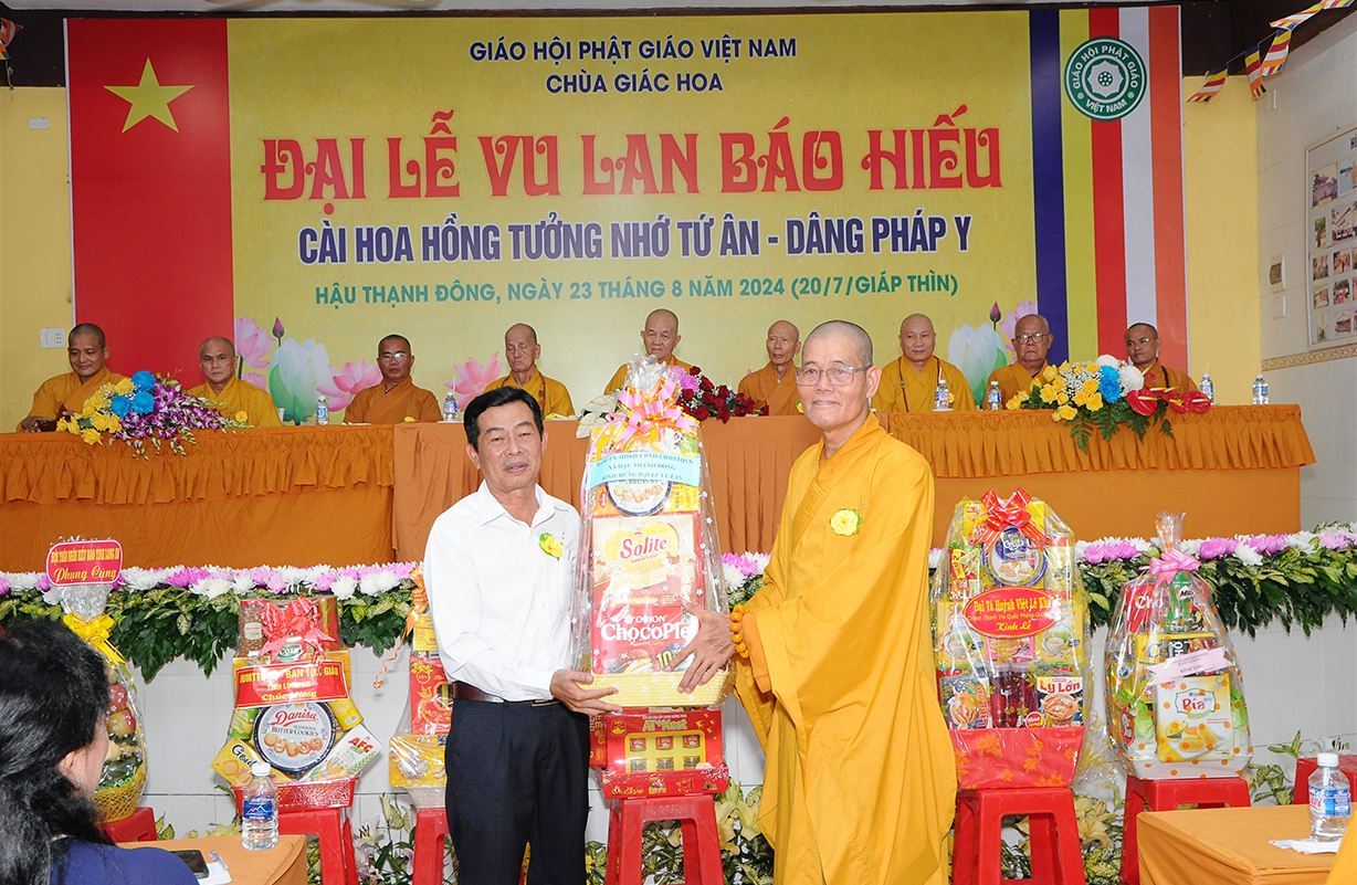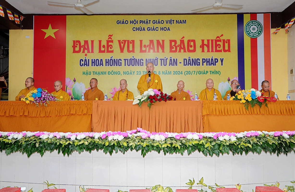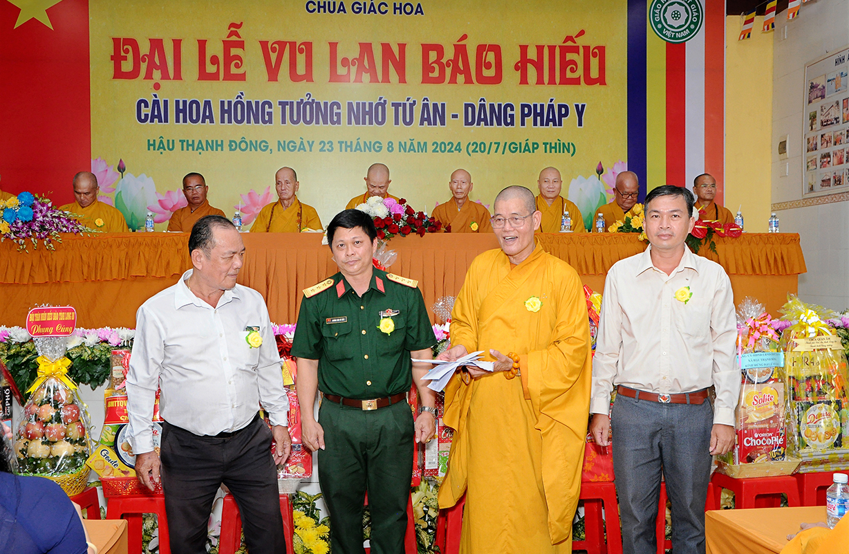 Sáng ngày 23/8/2024 (nhằm ngày 20/7/Giáp Thìn), tại chùa Giác Hoa, xã Hậu Thạnh Đông, huyện Tân Thạnh, tỉnh Long An đã long trọng diễn ra Đại lễ Vu Lan Báo Hiếu, PL.2568, DL.2024.
