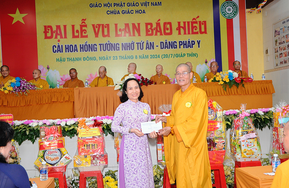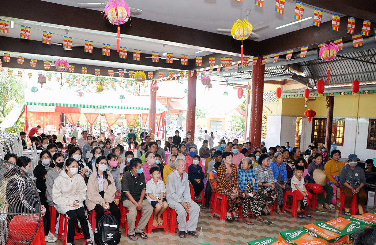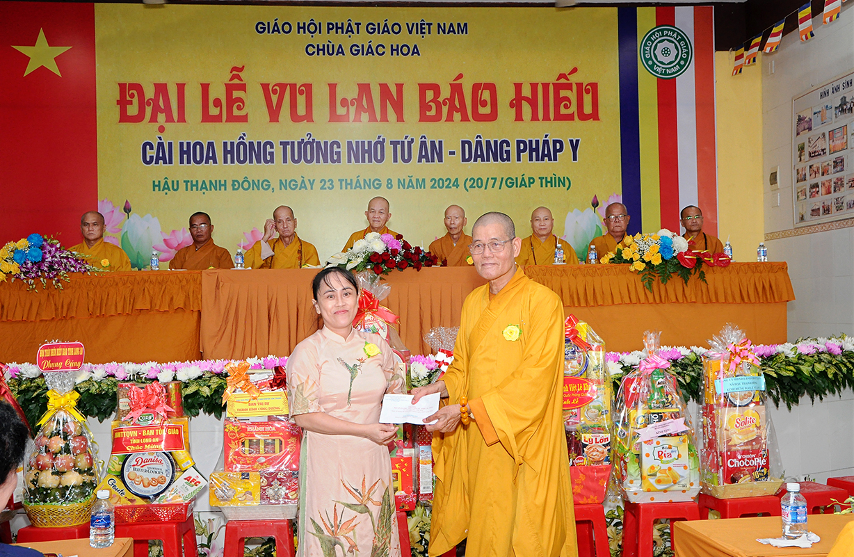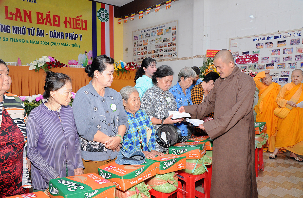 Sau Đại lễ, chùa Giác Hoa trao tặng 100 phần quà cho học sinh và đồng bào gặp hoàn cảnh khó khăn. Mỗi phần quà trị giá 350.000 đồng.