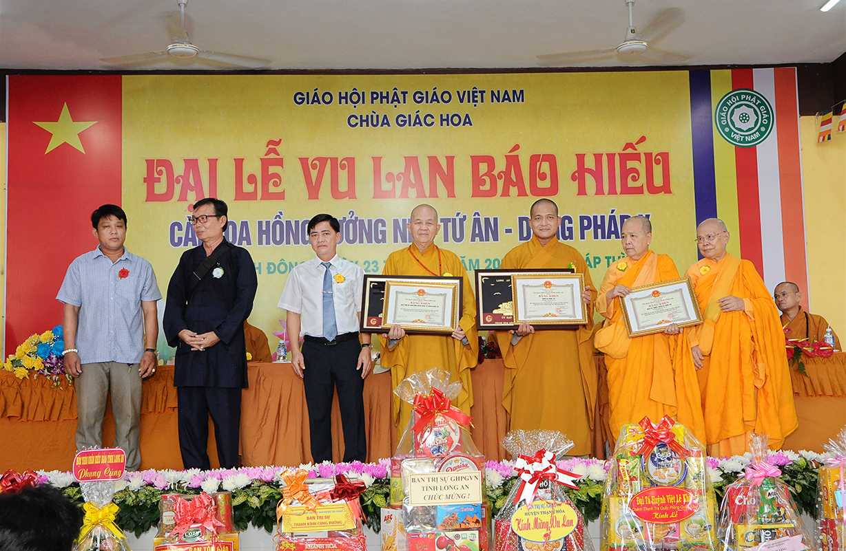 Tại buổi lễ, UBND tỉnh Long An đã trao tặng Bằng khen đến BTS GHPGVN tỉnh Long An, Tịnh xá Ngọc An, ĐĐ. Thích Lệ Duyên vì có thành tích vận động kinh phí xây dựng giao thông nông thôn và thực hiện công tác xã hội tại huyện Tân Thạnh.