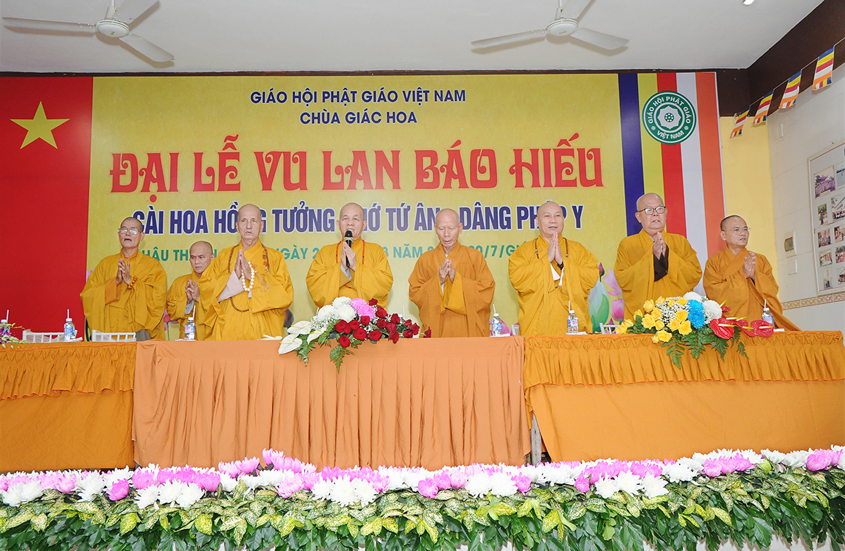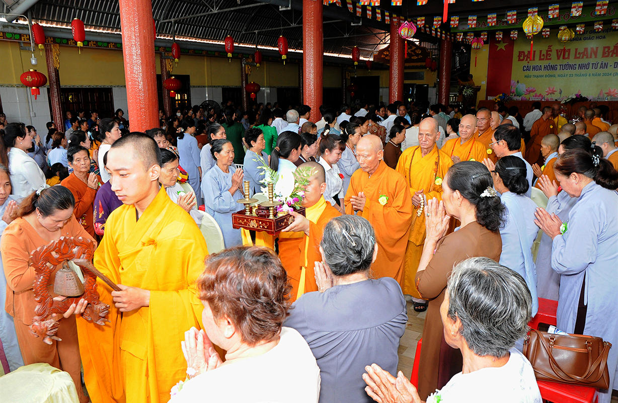 Mờ đầu buổi lễ, Chư Tôn đức đã hướng dẫn các em đội cài hoa hồng dâng những bông hoa tươi thắm, đậm tình ý nghĩa mùa hiếu hạnh lê Chư Tôn đức chứng minh, quý lãnh đạo chính quyền và Phật tử đạo tràng chùa Giác Hoa. Theo ý nghĩa, ai còn cha mẹ sẽ được cài lên ngực áo một đóa hoa hồng đỏ, những người con mất cha hoặc mất mẹ sẽ cài lên ngực áo một bông hồng màu hồng nhạt, ai mất cả cha và mẹ thì sẽ cài lên bông hồng trắng. Hoa hồng trắng mang màu tinh khiết ý nghĩa buồn thương, đồng thời nhắc nhở con người hãy sống thật tốt, thật ý nghĩa để những người ra đi cảm thấy tâm hồn được an nhiên, thanh thản.