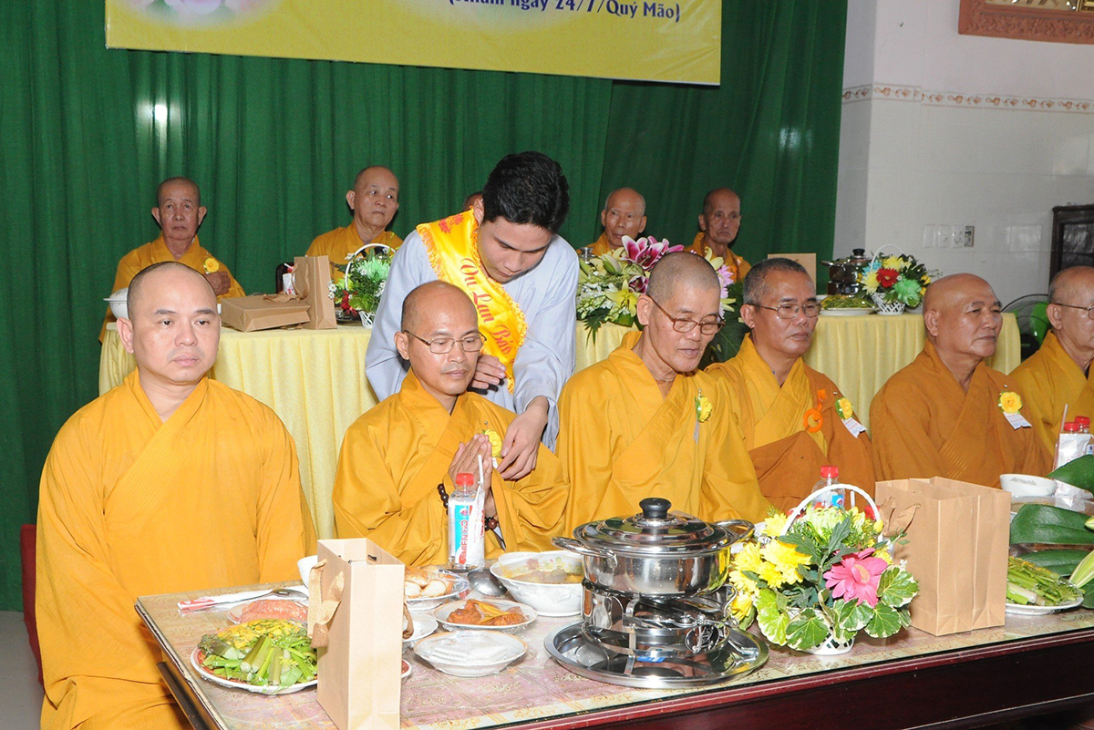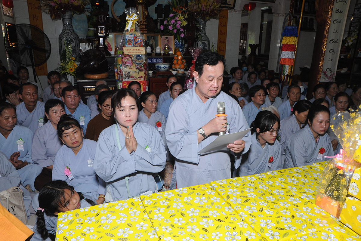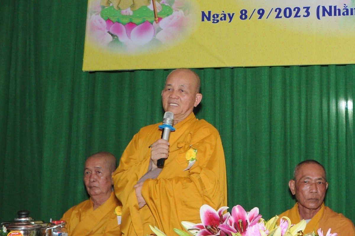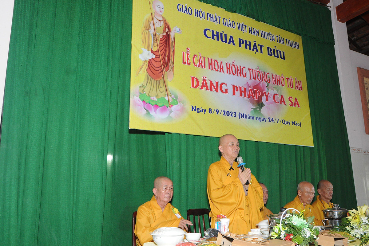 Ban đạo từ tại buổi lễ, Hoà thượng Thích Minh Thiện – Ủy Viên HĐTS, Phó trưởng Ban Hoằng pháp TƯ, Trưởng BTS GHPGVN tỉnh Long An, trụ trì chùa Phật Bửu, trưởng Ban tổ chức đại lễ đã tán thán đạo tâm đạo hạnh, hiếu tâm hiếu hạnh của chư Phật tử đạo tràng, là những người Phật tử tiêu biểu học, hiểu tinh thần Phật pháp, giàu lòng yêu nước, biết giữ gìn truyền thống văn hoá, đạo đức làm người, đạo đức Phật giáo, đó là truyền thống hiếu đạo, truyền thống tri ân và báo ân. Vu lan thắng hội đã trở thành lễ hội văn hoá tình người, nhằm khuyến khích mọi người hướng thiện và hành thiện trên tinh thần tri ân và báo ân. Hòa thượng cũng chia sẻ về ý nghĩa tứ trọng ân, khuyến tấn Phật tử thực tập hạnh hiếu, sống và làm việc có ý nghĩa để xứng đáng là một người con Phật.