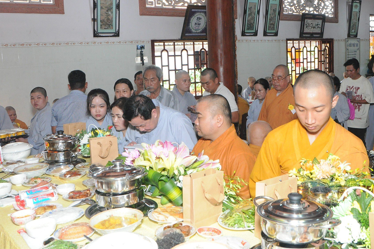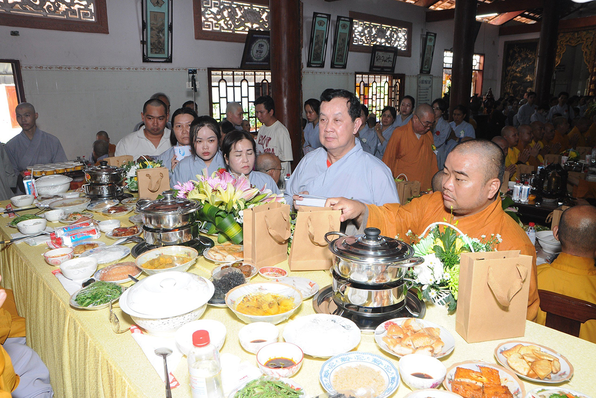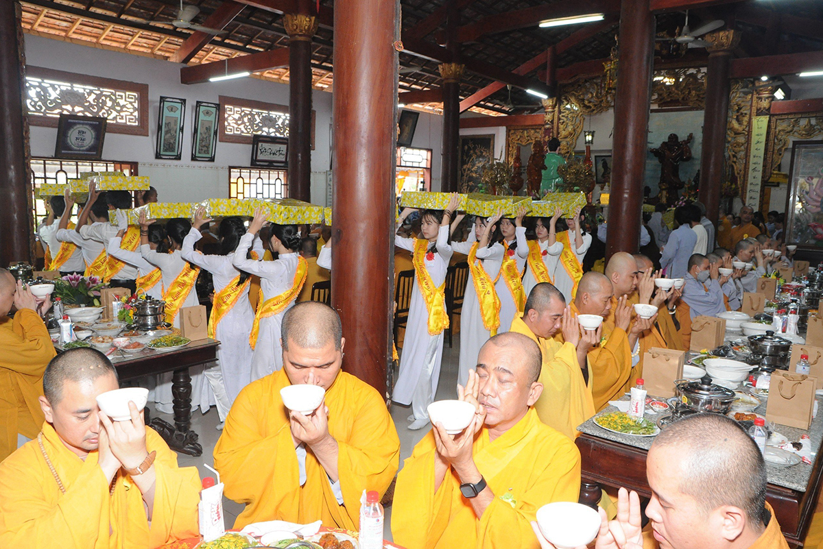 Trong không khí trang nghiêm lắng đọng tại buổi lễ Phật tử đại diện đạo tràng dâng lời tác bạch cúng dường pháp y thành kính dâng lên những chiếc y vàng giải thoát cúng dường chư Tăng để được thấm nhuần công đức và đồng cầu nguyện cho cha mẹ hiện tiền được tăng phước tăng thọ, cầu siêu cho cửu huyền thất tổ được vãng sanh về miền cảnh giới an lạc.