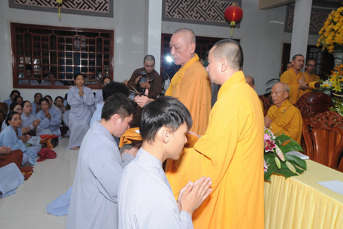 Dịp này, chư Tôn đức giáo phẩm cũng đã chứng minh lễ thế phát cho 3 thiện nam đã hội đủ duyên lành, vượt qua thời gian thử thách được đầu Phật xuất gia chính thức trở thành một Tu sĩ Phật giáo, tiếp nối mạng mạch Phật pháp và sự nghiệp hoằng hóa độ sanh.